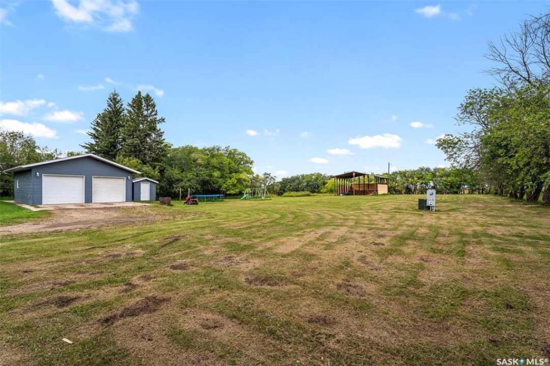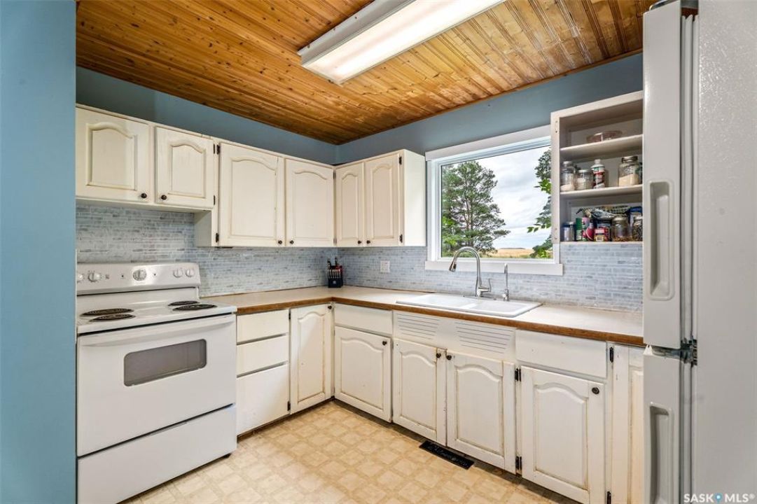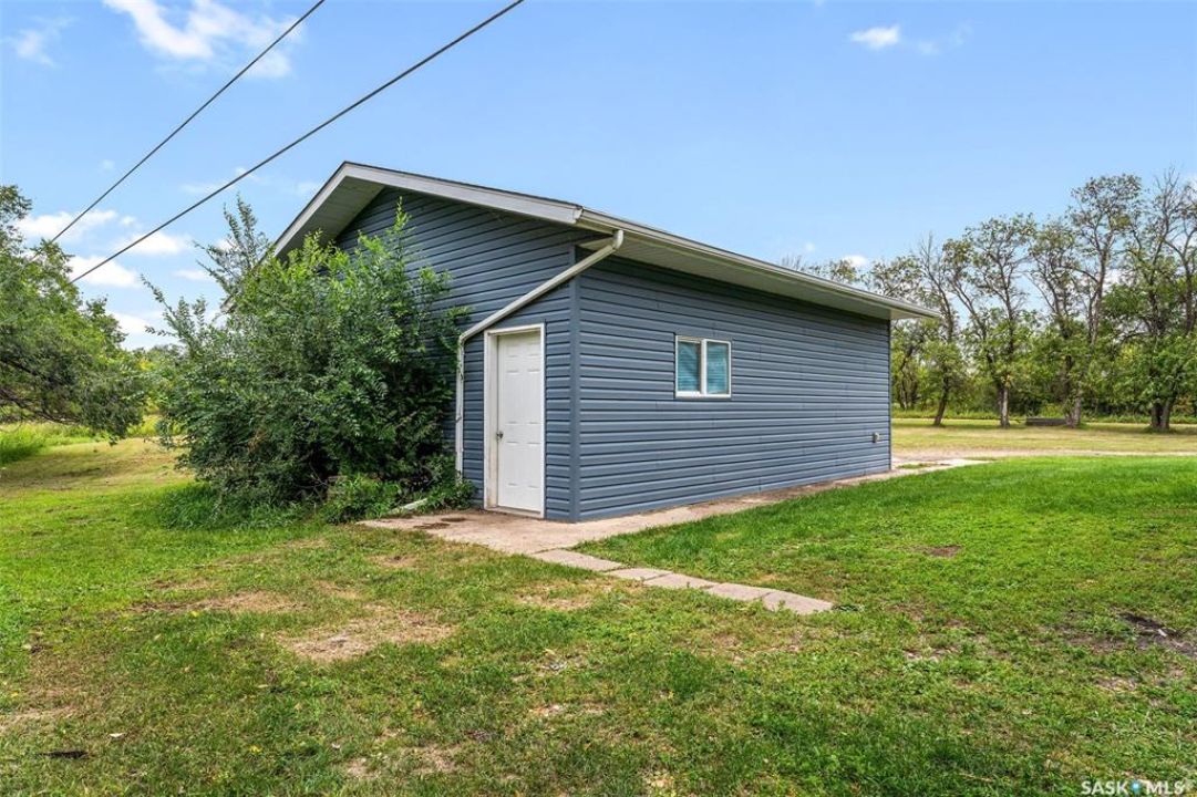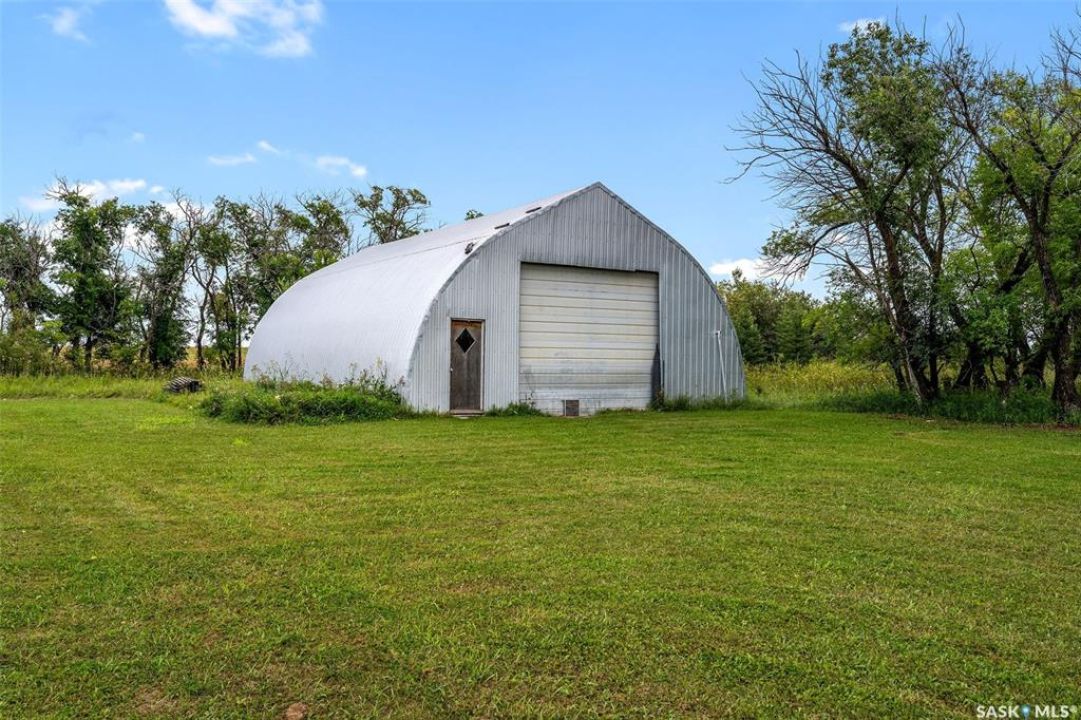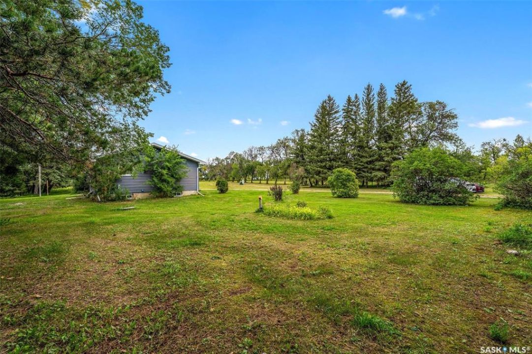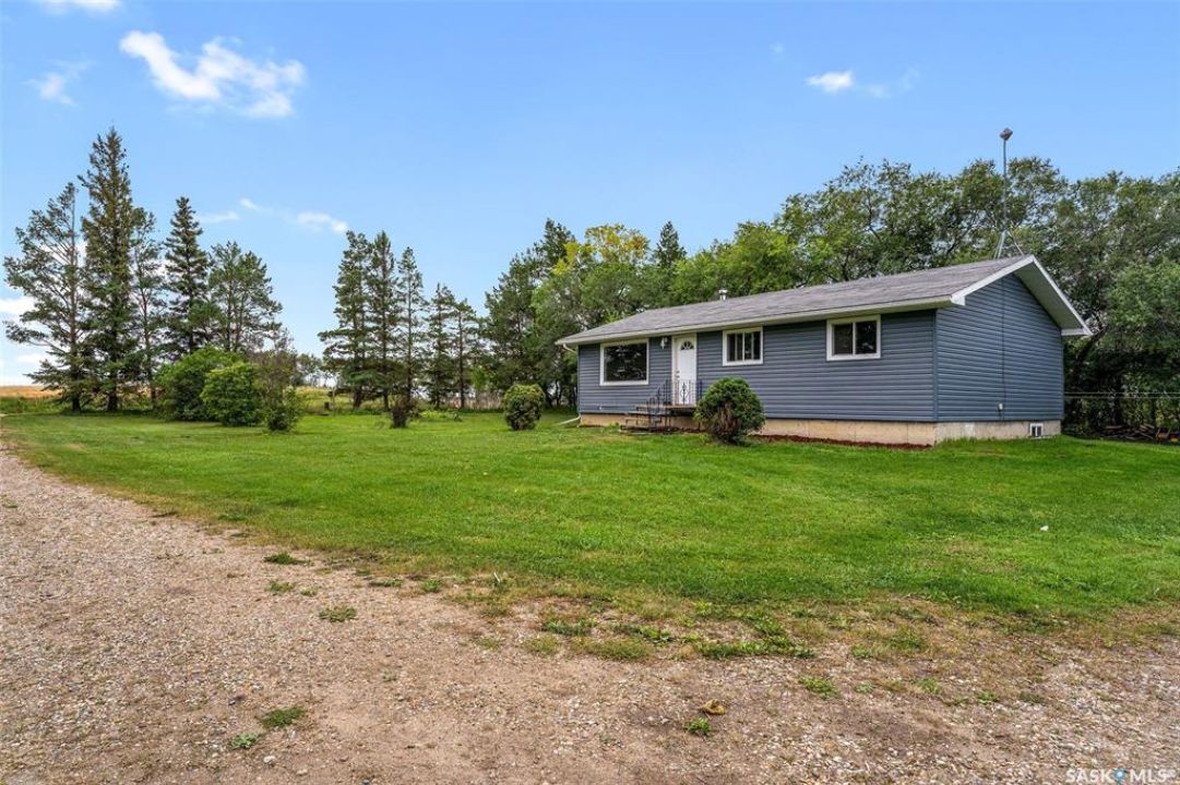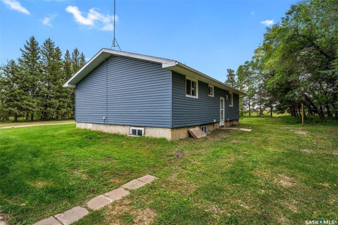 Acreage with 4.59 acres of treed property in the RM of Kinistino No. 459 is ready to welcome its next family. Located just 26 km northwest of Melfort, this acreage offers the perfect mix of privacy, functionality, and practical upgrades! Step inside the 4-bedroom bungalow, featuring three bedrooms on the main floor and a spacious fourth downstairs, plus plenty of room for guests and a large rec space in the basement for cozy movie nights. The main bathroom was fully gutted and renovated in 2023, and the downstairs bathroom has been refreshed in 2025 with a new shower, toilet, and sink. You'll also find all-new baseboards and casings upstairs (2024-2025) for a polished finish. This home has seen impressive updates in recent years, including a new wood furnace with forced air (2024), a water heater (2024), washer and dryer (2023), and fridge and stove (2022). Your family will love the warmth and efficiency of the wood furnace, and with eight full cords of wood included, you'll be ready for many cozy winters ahead. The property also boasts a 24x28 double garage, a massive 32x50 Quonset with 100-amp service, perfect storage for all your acreage needs, and water is supplied through connection to the Melfort Rural Pipeline. A ride-on lawn mower is included with the property, and there is also the convenience of a school bus route to Kinistino K-12. With so many upgrades, storage options privacy of a heavily treed yard, this acreage is a rare find. Call today to book your showing today!