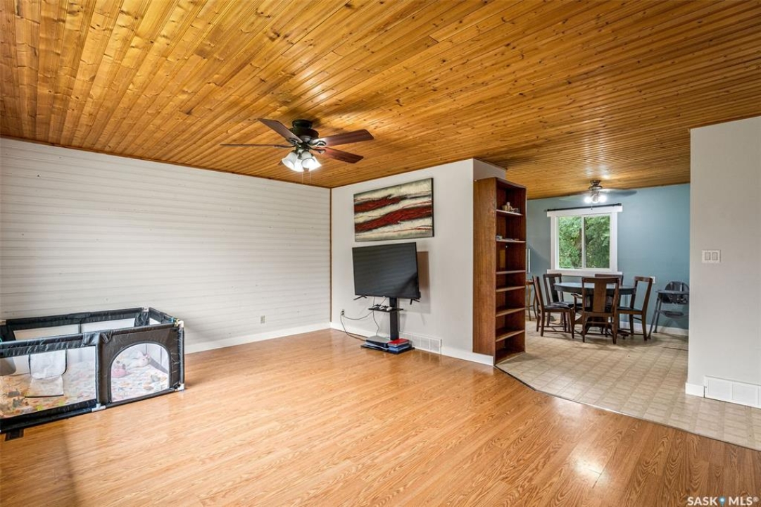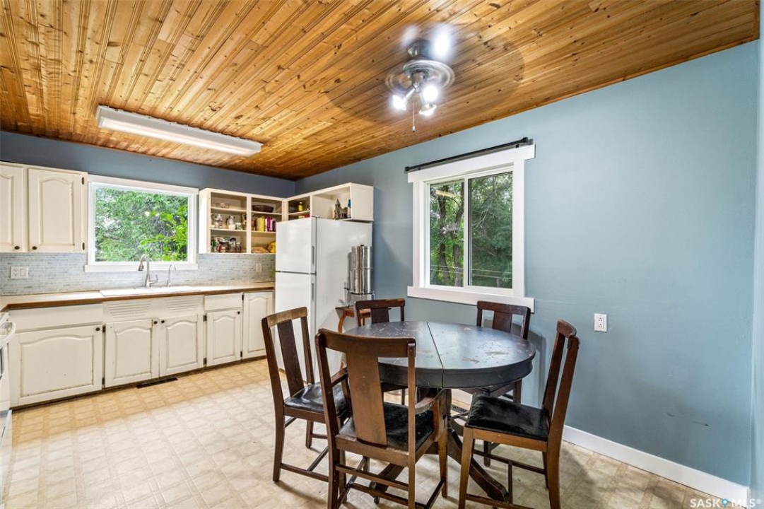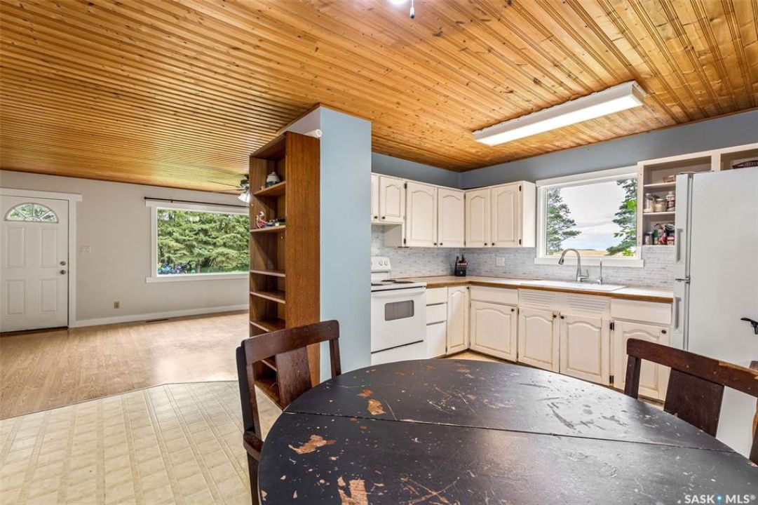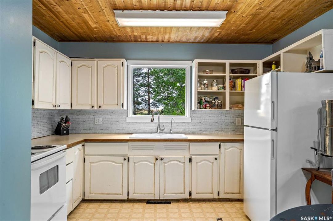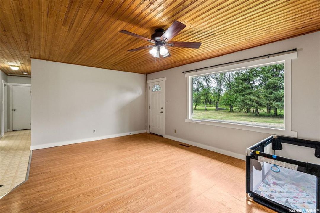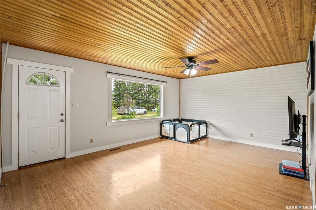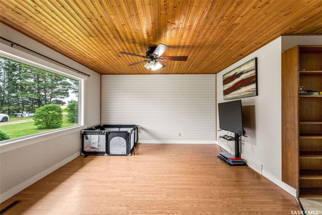 Acreage with 4.59 acres of treed property in the RM of Kinistino No. 459 is ready to welcome its next family. Located just 26 km northwest of Melfort, this acreage offers the perfect mix of privacy, functionality, and practical upgrades! Step inside the 4-bedroom bungalow, featuring three bedrooms on the main floor and a spacious fourth downstairs, plus plenty of room for guests and a large rec space in the basement for cozy movie nights. The main bathroom was fully gutted and renovated in 2023, and the downstairs bathroom has been refreshed in 2025 with a new shower, toilet, and sink. You'll also find all-new baseboards and casings upstairs (2024-2025) for a polished finish. This home has seen impressive updates in recent years, including a new wood furnace with forced air (2024), a water heater (2024), washer and dryer (2023), and fridge and stove (2022). Your family will love the warmth and efficiency of the wood furnace, and with eight full cords of wood included, you'll be ready for many cozy winters ahead. The property also boasts a 24x28 double garage, a massive 32x50 Quonset with 100-amp service, perfect storage for all your acreage needs, and water is supplied through connection to the Melfort Rural Pipeline. A ride-on lawn mower is included with the property, and there is also the convenience of a school bus route to Kinistino K-12. With so many upgrades, storage options privacy of a heavily treed yard, this acreage is a rare find. Call today to book your showing today!