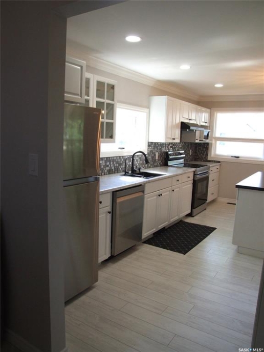 211 2nd St. W. Leader, Sk. comes complete with a huge yard. This property has had a complete overhaul on the main floor in the recent past. Located just a block from the main business section of Leader you will find that all amenities are just a short walk away. The new kitchen comes complete with a new applicance package, laundry is located on the main floor and the large primary bedroom has a walk in closet and its own access to the main bathroom. The bathroom is large and has all new fixtures. The front porch is the perfect place to relax and have your morning coffee. The living room is open to the kitchen and has plenty of room for all your furniture. The second floor houes 2 bedrooms and a landing area with storage. The basement is unfinished and can be finished to suit your needs. Both the front and side decks are new. There is a single car garage at the end of a long driveway. All measurements are approximate and can be verified by interested parties. All information is supplied by SAMA and the Owner and can be verified by prospective Buyer's.