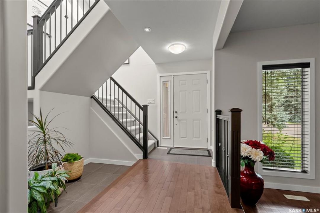 Welcome to 619 Frobisher Terrace! Step into this beautifully renovated 2,128 sq ft two-story home, where you're immediately greeted by a spacious foyer and an airy open staircase leading to the second floor. The main level features a formal living room that flows into a large dining area, a stunning kitchen, and a cozy family room with natural gas fireplace and direct access to the meticulously landscaped backyard. Additionally, you'll find a well-appointed office, a convenient two-piece bath, and direct access to the attached double garage via the back entrance. Upstairs, the expansive primary bedroom is a true retreat, complete with a walk-in closet and a three-piece bath with a large walk in shower. Garden doors open to your private deck, offering the perfect spot to unwind. Two generous secondary bedrooms, a four-piece bath, and a laundry area complete the second floor. This home showcases exceptional craftsmanship, with modern renovations completed in 2016, making it feel like new. The basement is ready for your personal touch and offers endless possibilities for customization. Located in the highly sought-after Lawson Heights, this property is rare to find—completely updated, including new windows and mechanical and all the items you would expect in a first class home. Situated on a quiet terrace with beautiful street appeal, you're just a short walk from elementary and high schools, as well as the scenic Meewasin River Trail, and all the amenities you need.