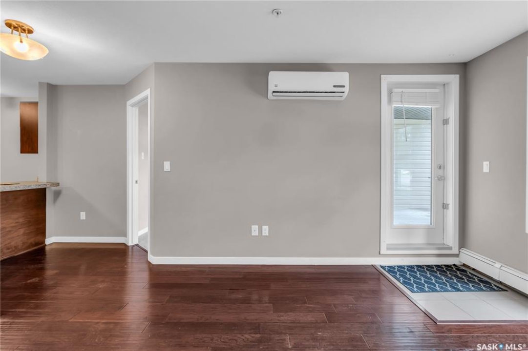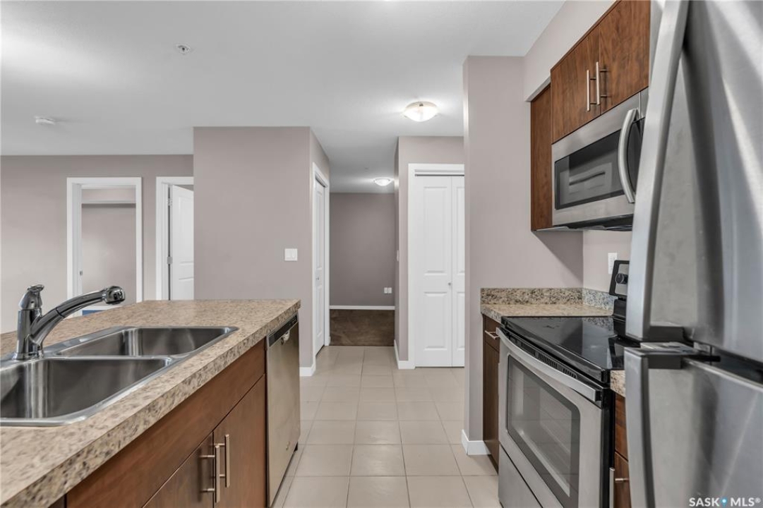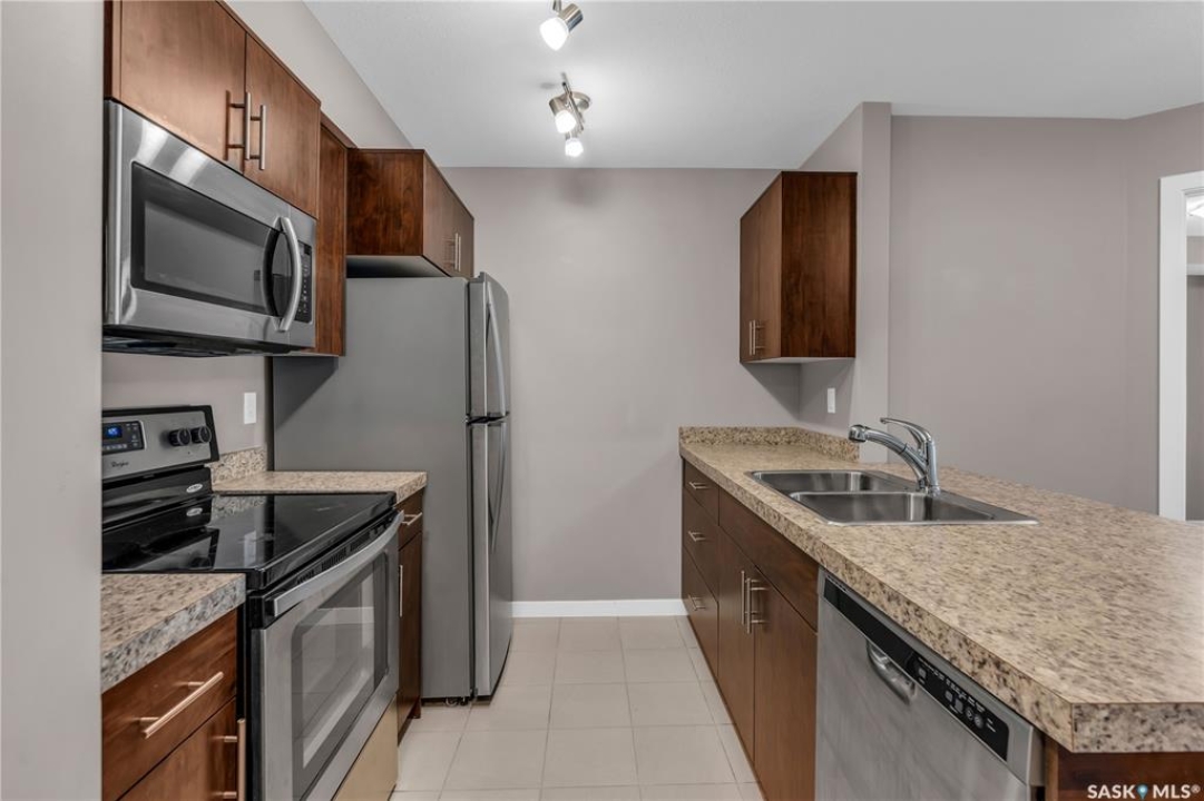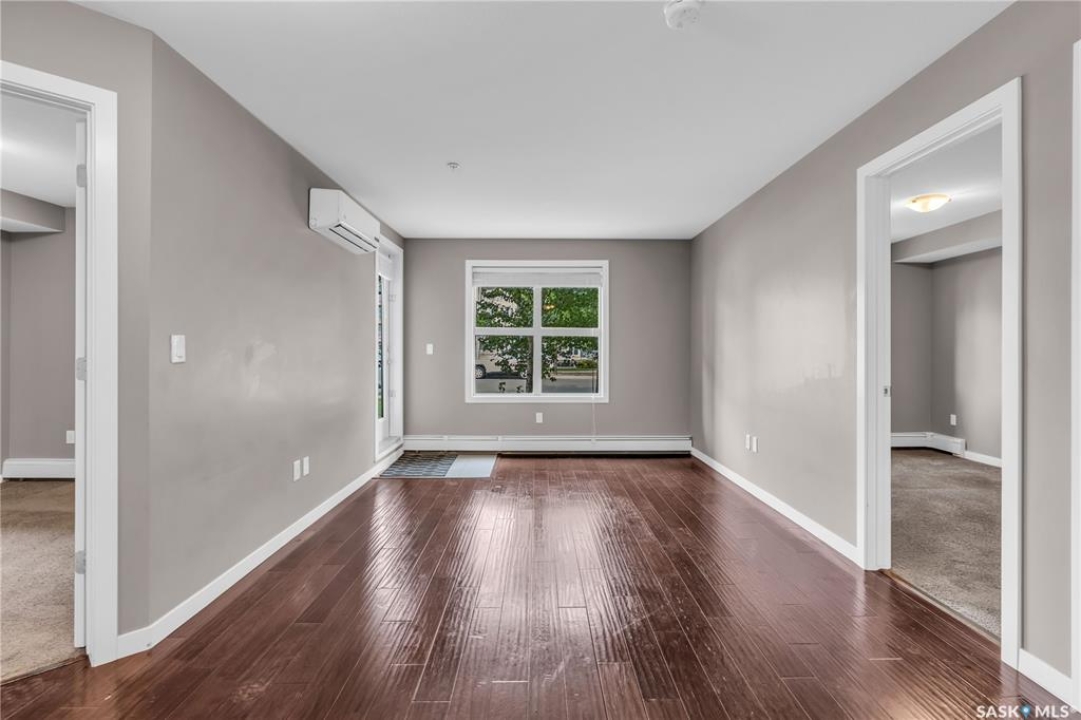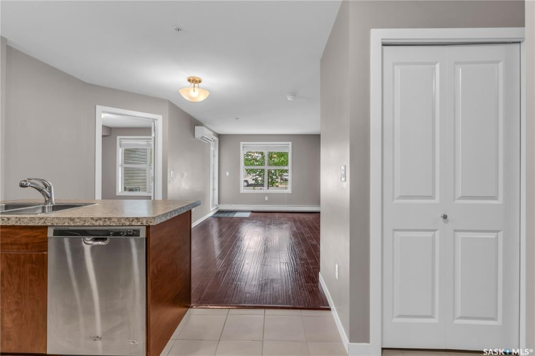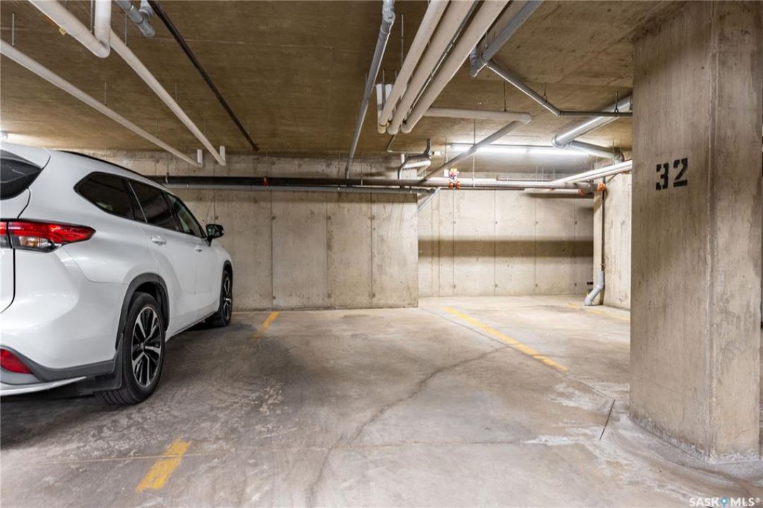 TWO conveniently located parking spots-one underground(32) and one surface stall(22) with immediate possession available on this move-in ready, mint condition 2 bedroom, den and 2 full bath home; TWO conveniently located parking spots-one underground(32) and surface stall(22); upgrades include hardwood in living area, ceramic tile in kitchen and back entry, stainless steel appliances and c/air; Levolor blinds; 2 carbon/smoke detectors replaced; recently cleaned carpets; fridge, stove, washer, dryer, dishwasher, c/air, microwave/range hood included. Water, sewer and heat included in condo fees. Extra hardwood and ceramic tile will be left with unit.