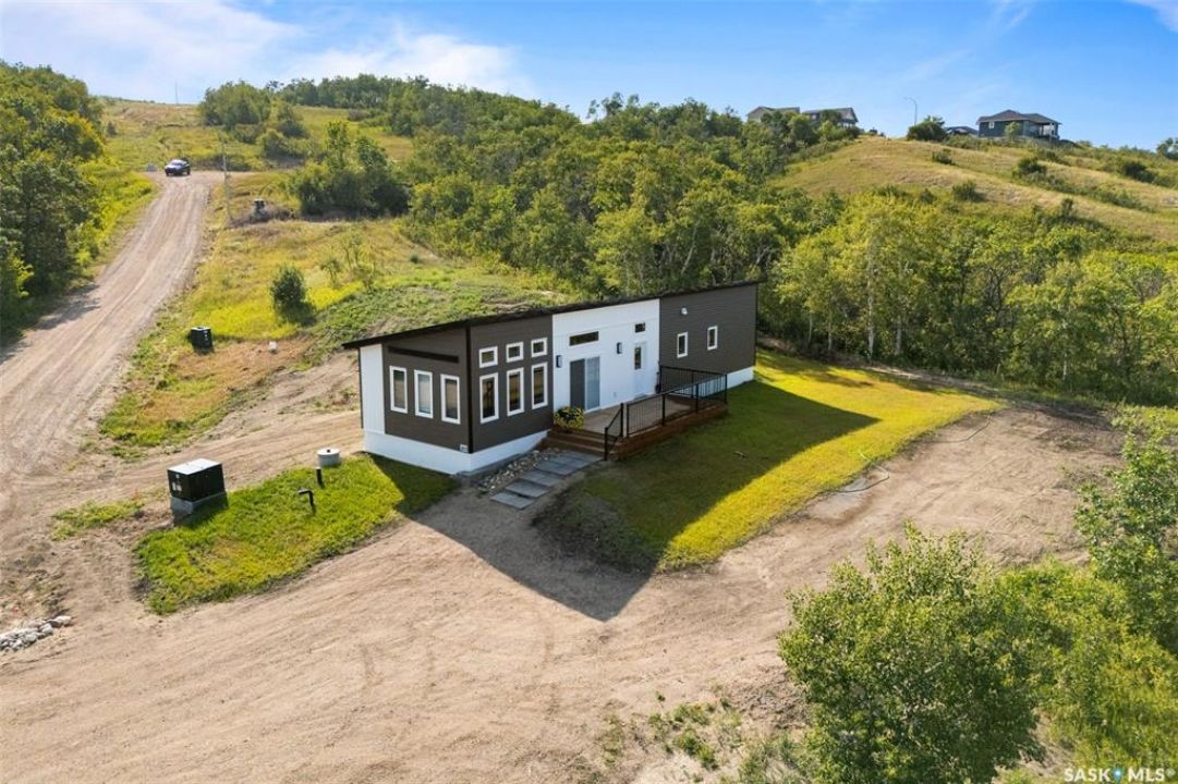 Your dream lake life awaits for ONLY $325,000!! (Garage build also available) BRAND NEW Year-Round Getaway at Katepwa Lake! Welcome to Pincherry Place in Berry Hills Estates, where breathtaking lake views and modern comfort come together in this brand-new 960 sq. ft. bungalow. Sitting on 10 secure screw piles, this home offers complete peace of mind with a new 2000gal septic tank and 220' well. The open-concept design features a spacious great room with tall ceilings and large windows, flooding the space with natural light and stunning views of Katepwa Lake. The stylish kitchen boasts soft-close cabinetry, brand-new stainless steel appliances, and an eat-up island, perfect for entertaining. A pine ceiling with plenty of pot lighting adds a cozy, cottage feel. This home includes two large bedrooms, with the primary suite featuring a private ensuite with tile walk-in shower and built-in wardrobe. Additional highlights include a 200-amp panel, skirting, beautiful siding, and a large deck, while a forced-air natural gas furnace, water heater, and A/C ensure year-round comfort. Plus, hi-speed internet lets you work from home with ease or unwind with your favourite Netflix series. The property backs onto a municipal reserve with a wooded ravine area, ideal for a fire pit area, kids' play structure, or private retreat. Located just five minutes from Katepwa Beach Provincial Park, boat launch, and local dining, and within 15 minutes of three stunning golf courses, this home is perfect for outdoor lovers. Down the street is a park, outdoor rink, and many other amenities. Less than an hour from Regina, Berry Hills Estates provides the perfect mix of relaxation, convenience, and community. With dedicated developers maintaining the subdivision, this is your chance to own a BRAND NEW stunning lake retreat. Don't wait—YOUR LAKE LIFE AWAITS! Contact your real estate professional today! **Developer is open to coordinating a garage build** (Some virtually staged photos)