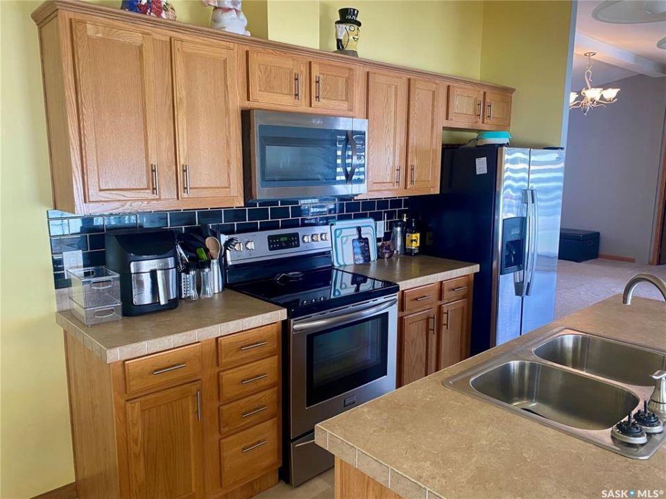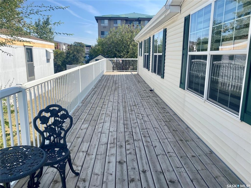 Looking for a move-in ready home on Regina's desirable East side? Your search may be over. Tucked away in the friendly Glen Elm trailer court, this spacious 1,560 sq. ft. double-wide modular home offers the perfect blend of comfort, functionality, and convenience. Just minutes from all the East end shopping, dining, and amenities, the location couldn't be better for those who want everyday needs within easy reach. Step inside and you'll immediately notice the sense of space and light. Vaulted ceilings open up the main living areas, while the large living room—with its cozy gas fireplace—creates the perfect spot to relax with family or entertain friends. The open kitchen and dining area provide an abundance of cabinets and counter space, ideal for anyone who loves to cook or host gatherings. The primary bedroom is a true retreat, complete with a generous layout and a private ensuite featuring a relaxing soaker tub and large walk in closet. Two additional bedrooms and a full bathroom provide plenty of space for family, guests, or even a home office. You'll also appreciate the convenience of the dedicated laundry and storage area. Outside, the property continues to impress. A wrap-around deck invites you to enjoy morning coffee or evening sunsets, while the fenced yard offers a peaceful backdrop. There is a storage shed that provides ample room for tools, bikes, or seasonal items, keeping everything neat and organized. Pad fees are $845 per month and include garbage pick-up and snow removal, ensuring low-maintenance living year-round. Pride of ownership shines in every corner of this home—come see for yourself what makes this East side gem so special!