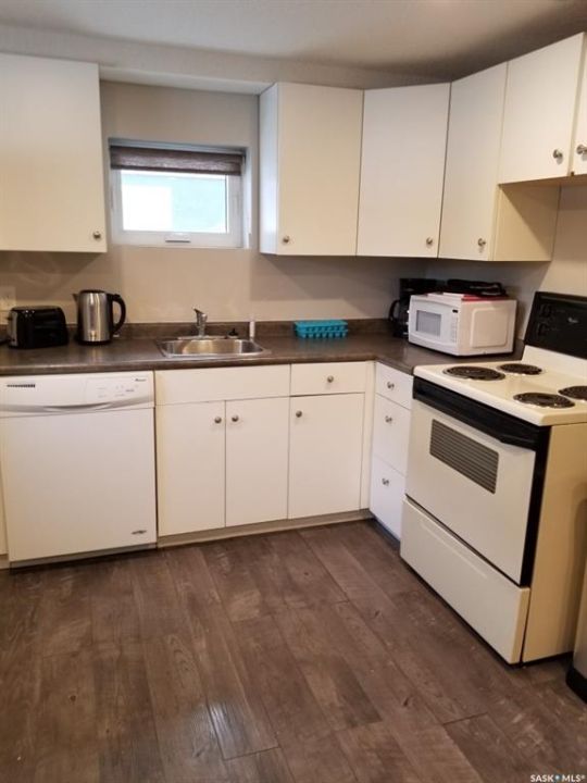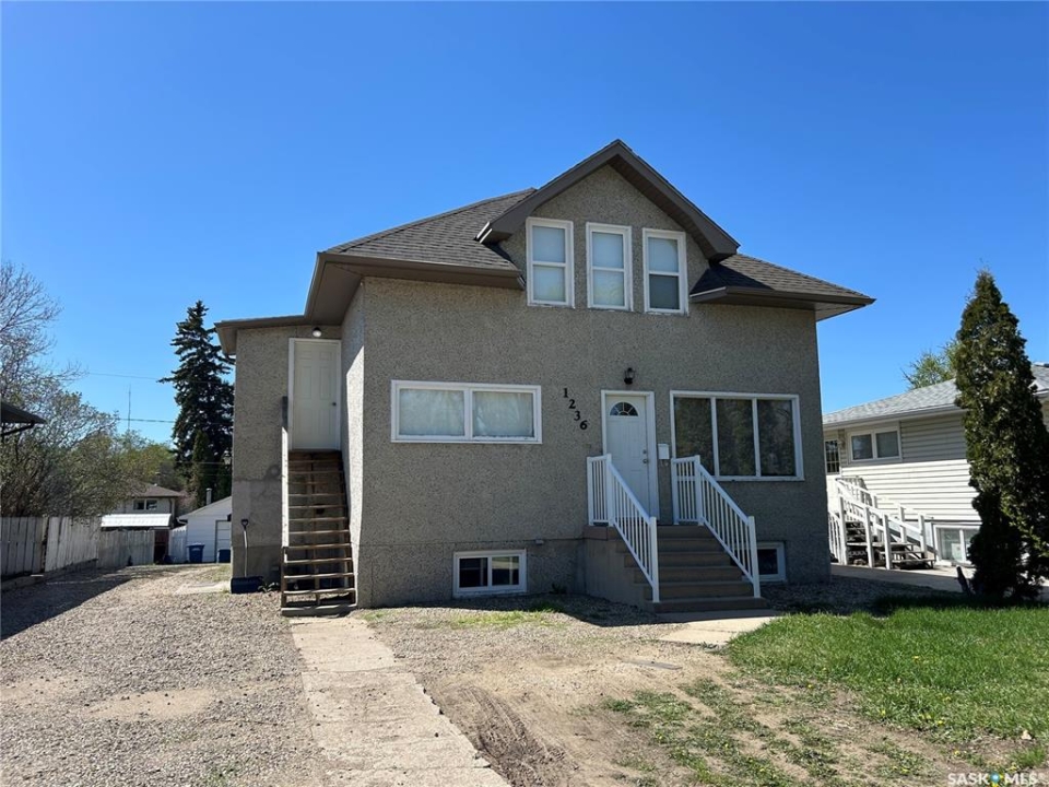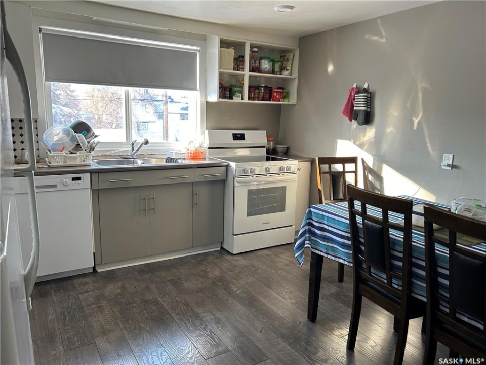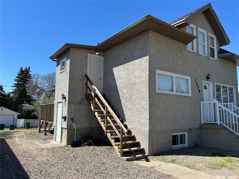 LOCATION…LOCATION!! A perfect opportunity for rental income from a basement suite to supplement income with the purchase of this home. Property located within walking distance to Sask Poly Tech and elementary/high schools!! Main floor 4 large bedrooms and 2 bathrooms. Home has a nice sized living room with large east facing windows and updated laminate flooring. There are 2 bedrooms along with an updated 4pc bathroom. The kitchen/dining room has plenty of kitchen cabinets along with Fridge, Stove (2024), Washer, Dryer, Microwave and built-in dishwasher are included appliances. Upstairs within the same suite is another 2 good sized bedrooms, also is a 3pc bathroom, laundry and storage areas. There is an exit door with a small deck from the second level for an emergency. There is a suite in the basement and has its own personal entry. This suite is a legal suite that has a permit number with the City of Moose Jaw. This partially furnished suite had a full renovation in 2014 with steel stud perimeter walls, spray foam insulation on perimeter walls, safe & sound insulation between floor joists, silent bar ceiling for noise control and electric heat installed. The kitchen/living room boasts an open concept with 2 bedrooms and a 4pc bathroom. There is in suite laundry along with a spot for some storage. There are plenty of off street parking spots on the south side of the property along with some extras in the back. There is also a small deck on the south side of the house with an entrance that will take you to the main floor kitchen and mechanical room in the basement. Some update are: Majority of the windows have been updated, Blown in Insulation, HE furnace, Water Heater(2021), Main suite renovations include: main floor bathroom fully renovated along with new flooring, the second level seeing a full renovation(2014), Basement Suite fully renovated(2014), New Water Meter & Fibre Internet(2023), 2-100 AMP electrical panels