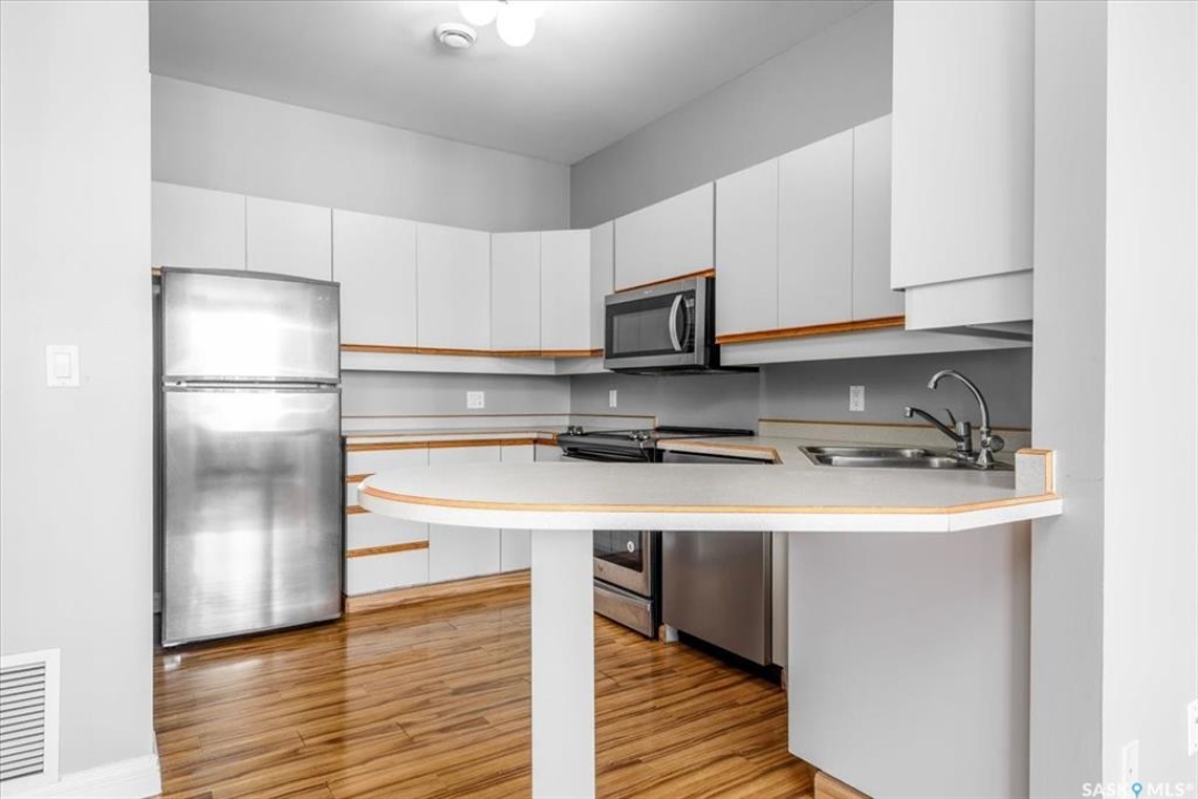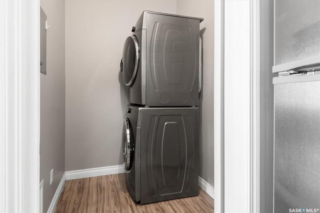 Welcome to 801-1867 Hamilton Street. This spacious 2-bedroom, 2-bathroom condo on the 8th floor offers 877 sq ft of comfortable living space with city views. Enjoy modern upgrades including laminate flooring, a bright kitchen with full appliances, and in-suite laundry. The open-concept living and dining areas are ideal for entertaining. The primary bedroom features ample space and its own 3-piece ensuite, while the second bedroom is steps away from a full 4-piece bathroom. The building is wheelchair accessible with elevator. Live steps from restaurants, shopping, and all downtown conveniences. Call today for more information!