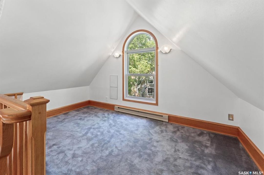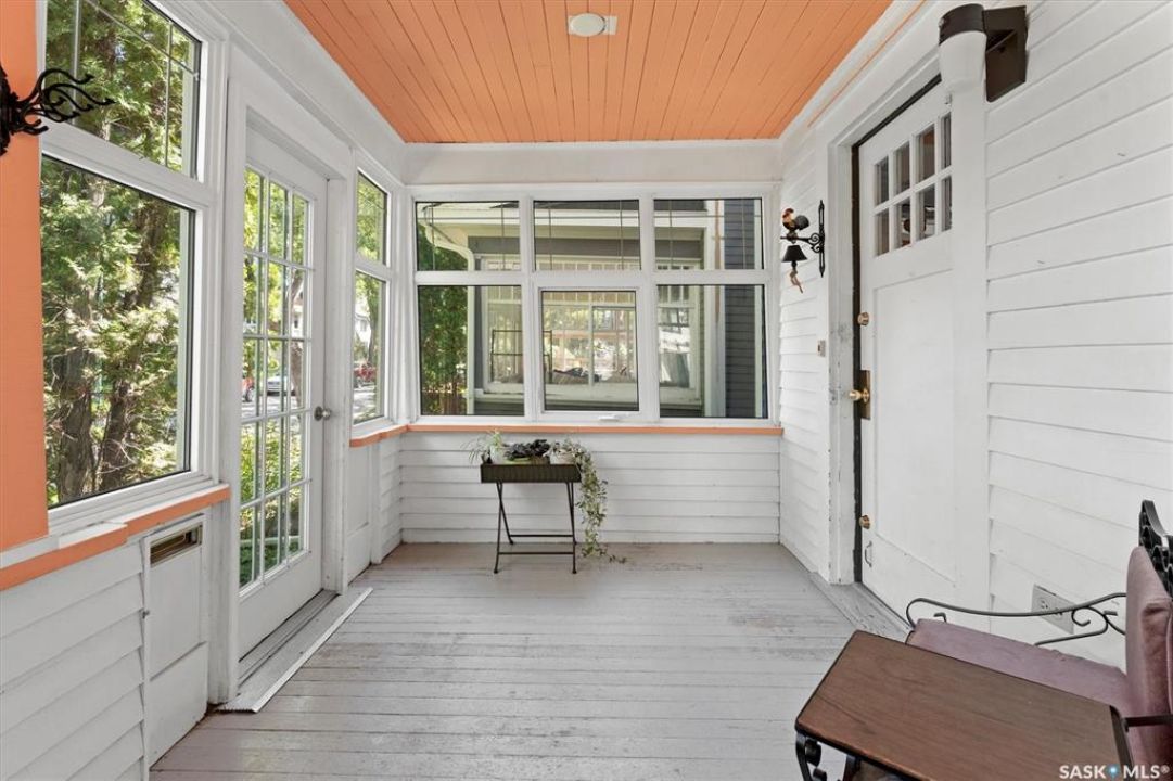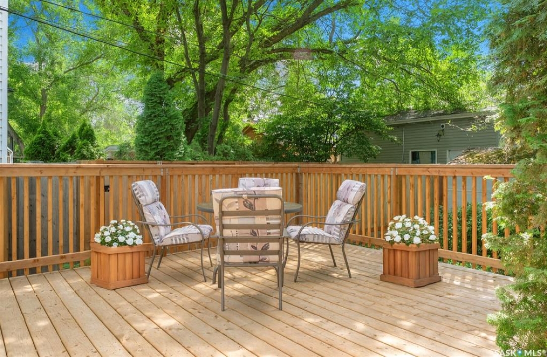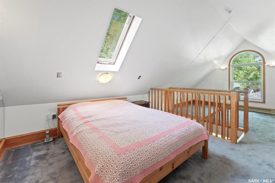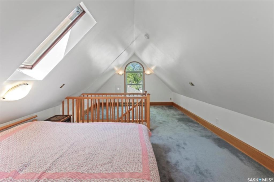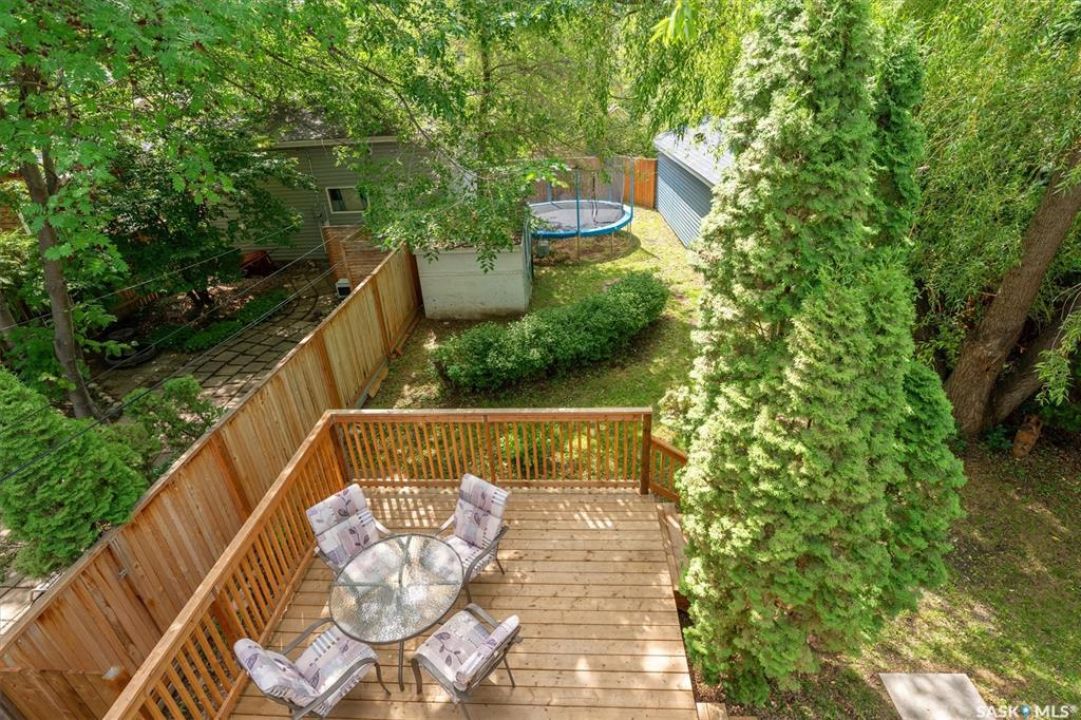 1018 Aird Street – 1912 Character Three-Story in a Storybook Setting! A character located in one of Saskatoon's coveted and walkable neighborhoods. Offering 1,850 sq ft over 3 levels, 4 bedrooms, 3 full baths, a large 37' lot, and a newer tandem detached garage. A picture-perfect front porch leads into a main floor rich in original details: hardwoods, French glass doors, woodwork, two elegant bay windows and a large dining room with a built-in glass china cabinet, plus an office / music room with an original cast fireplace. Main floor also features an oak kitchen, a full 3-piece bath, and a renovated rear porch/mudroom connecting to the backyard. Outdoor living is a highlight: unusually large, fully enclosed fenced yard (bigger than typical for the area), ideal for pets, kids, and leisure, and a sprawling double-tiered deck is perfectly suited for sunny entertaining. The front driveway adds rare, convenient parking to this property. The second level of this home offers three generously sized bedrooms, and a full bath with claw foot tub, with bay window views and a large private treetop balcony off one of the bedrooms! The entire third floor is a master retreat with a sitting area, large bedroom area, and a four-piece ensuite (shower door adjustment required). The basement is undeveloped. Notable updates include: windows, furnace, hot water heater, shingles, plumbing, asbestos removal, newer fencing, updated rear porch, piles under the front porch, shingles, and siding/shingles on the drywalled and insulated garage. This is a special home for people who love character, community, and the magic of an inner city neighbourhood - offering the historic charm you dream of, with practical upgrades for modern living.
