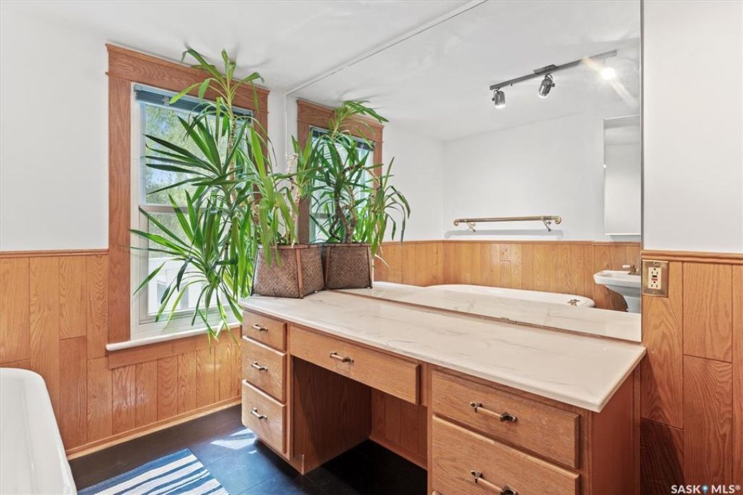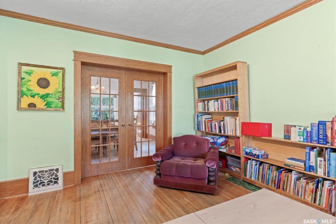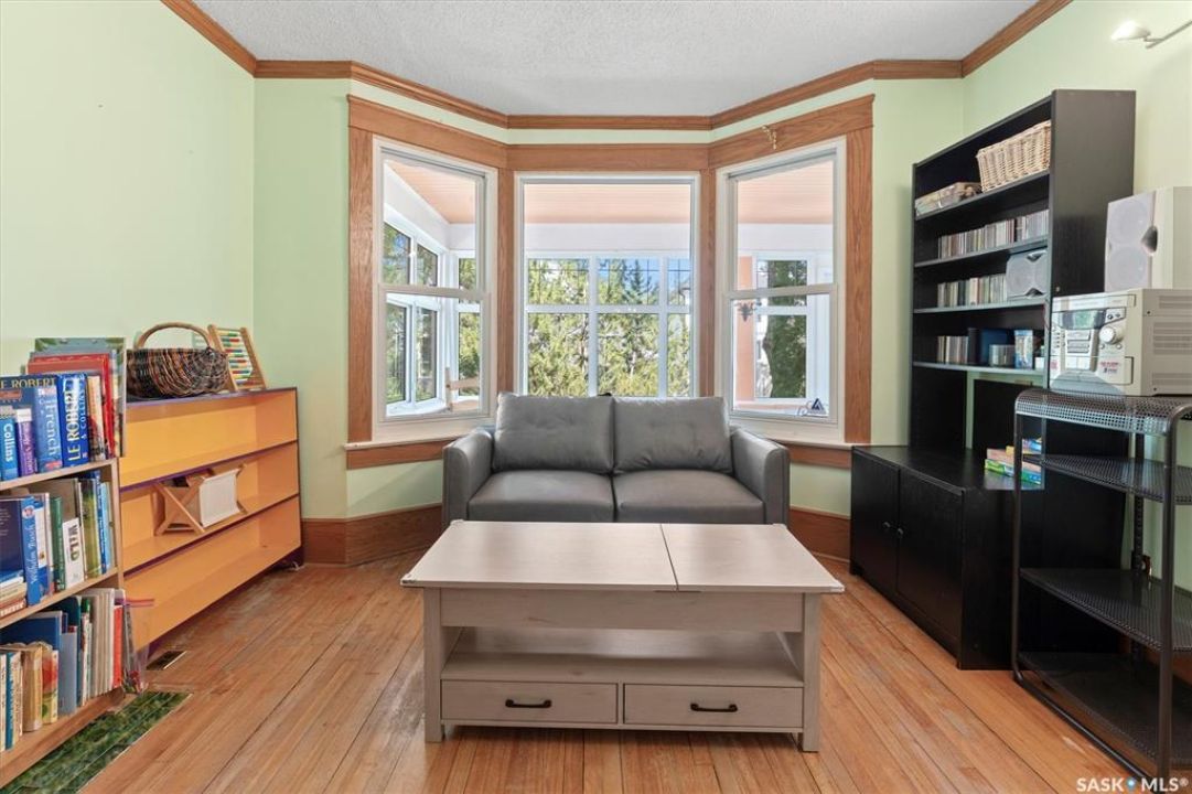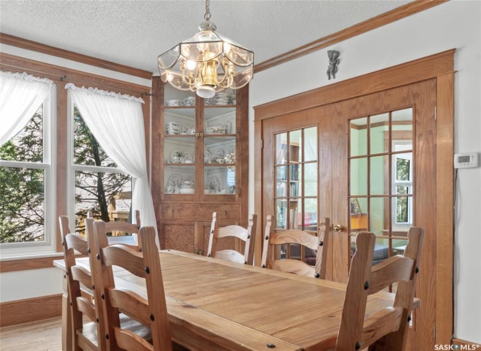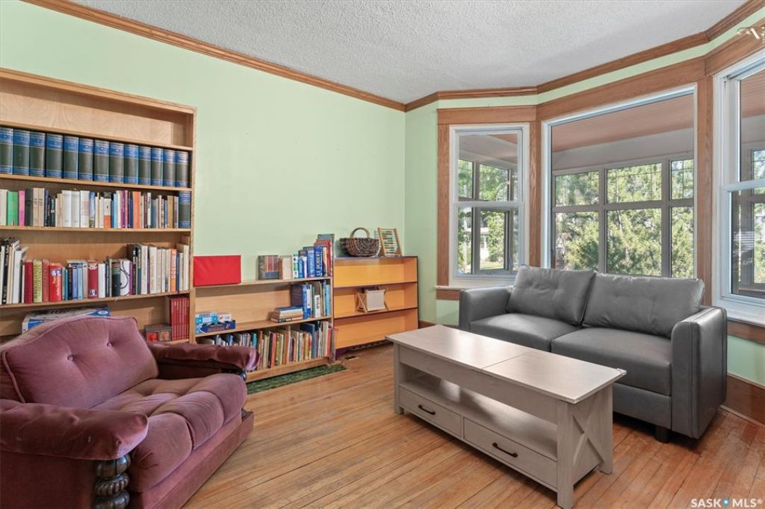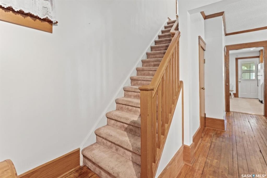 1018 Aird Street – 1912 Character Three-Story in a Storybook Setting! A character located in one of Saskatoon's coveted and walkable neighborhoods. Offering 1,850 sq ft over 3 levels, 4 bedrooms, 3 full baths, a large 37' lot, and a newer tandem detached garage. A picture-perfect front porch leads into a main floor rich in original details: hardwoods, French glass doors, woodwork, two elegant bay windows and a large dining room with a built-in glass china cabinet, plus an office / music room with an original cast fireplace. Main floor also features an oak kitchen, a full 3-piece bath, and a renovated rear porch/mudroom connecting to the backyard. Outdoor living is a highlight: unusually large, fully enclosed fenced yard (bigger than typical for the area), ideal for pets, kids, and leisure, and a sprawling double-tiered deck is perfectly suited for sunny entertaining. The front driveway adds rare, convenient parking to this property. The second level of this home offers three generously sized bedrooms, and a full bath with claw foot tub, with bay window views and a large private treetop balcony off one of the bedrooms! The entire third floor is a master retreat with a sitting area, large bedroom area, and a four-piece ensuite (shower door adjustment required). The basement is undeveloped. Notable updates include: windows, furnace, hot water heater, shingles, plumbing, asbestos removal, newer fencing, updated rear porch, piles under the front porch, shingles, and siding/shingles on the drywalled and insulated garage. This is a special home for people who love character, community, and the magic of an inner city neighbourhood - offering the historic charm you dream of, with practical upgrades for modern living.