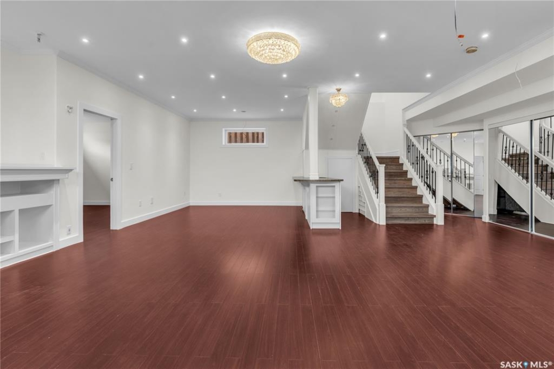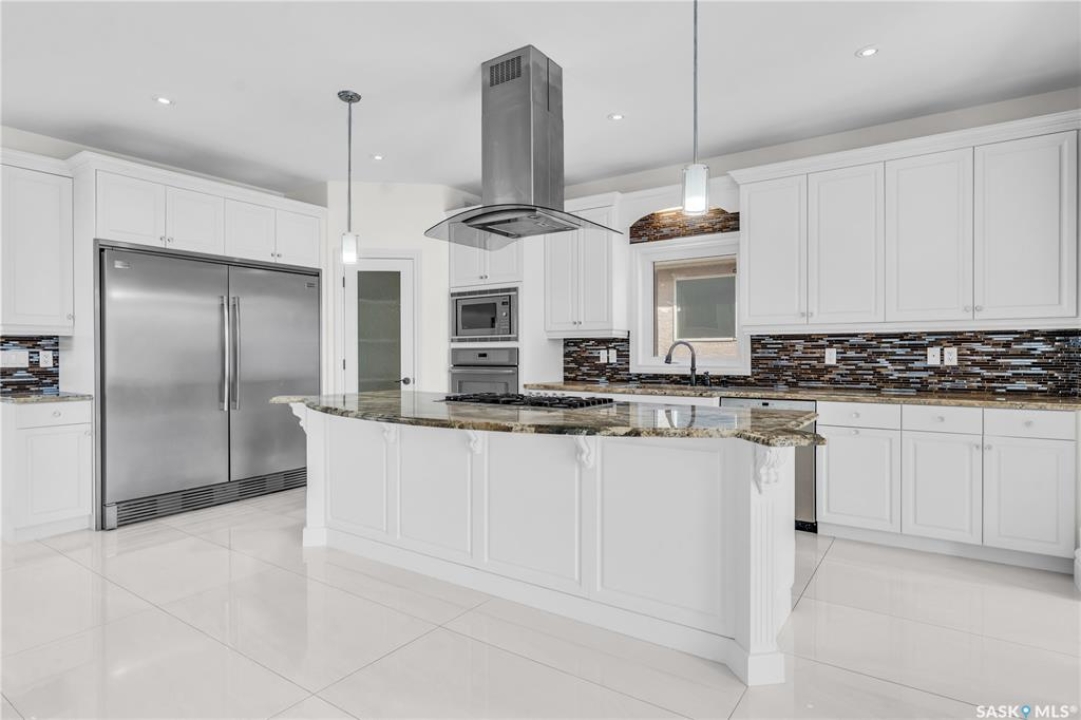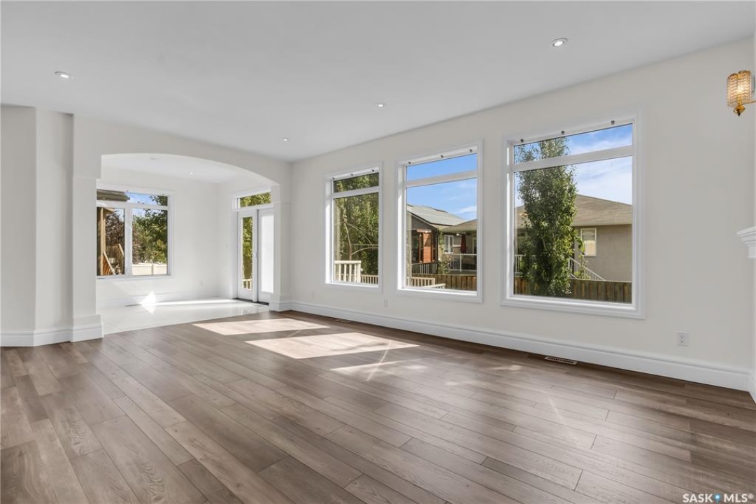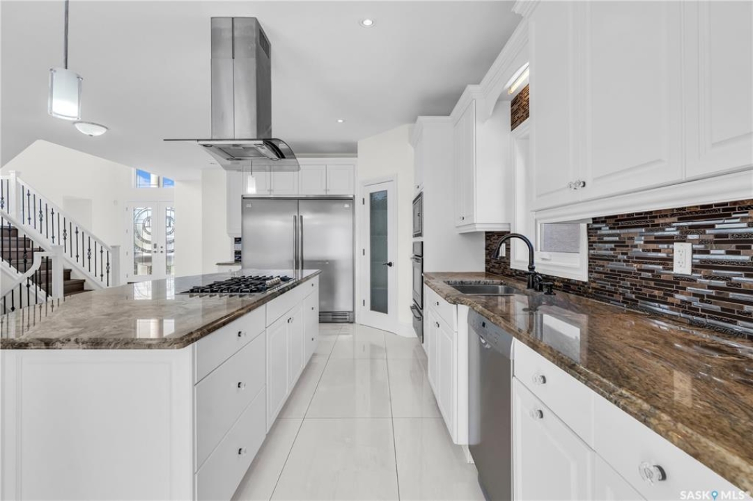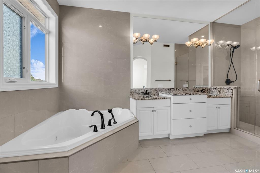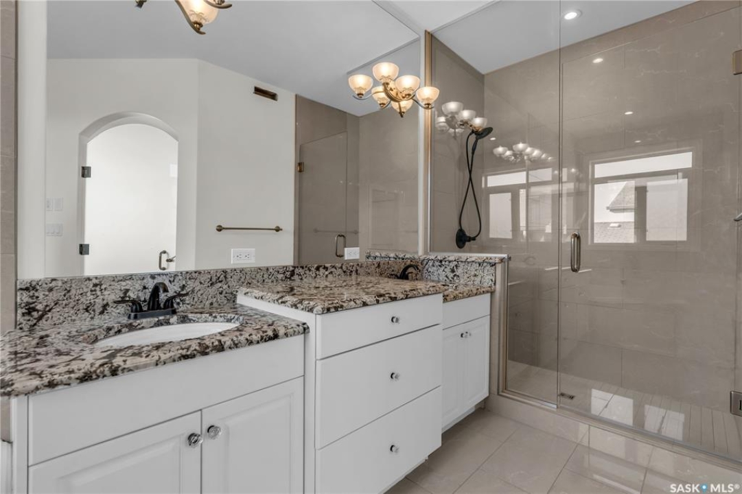 Welcome to this one-of-a-kind Varsity-built family home, offering over 2,500 sq ft of living space with 5 bedrooms, 4 bathrooms, and soaring ceilings that impress from the moment you walk in. The grand foyer leads into a chef's kitchen with an oversized fridge/freezer, gas range, built-in oven, corner pantry, and a large island perfect for entertaining. Just off the kitchen, the dining area is filled with natural light from oversized windows, while the spacious living room features an electric fireplace with a built-in TV wall. Fresh paint and new luxury vinyl plank flooring flow throughout, giving the home a modern, move-in-ready feel. A main floor office provides the ideal work-from-home space, while a full bathroom with tiled shower and a functional mudroom with garage access add everyday convenience. Upstairs, a large bonus room offers extra space for a media lounge, play area, or future bedroom if enclosed. Two secondary bedrooms each feature walk-in closets and share a full 4-piece bath. The primary retreat boasts vaulted ceilings, large windows, an oversized walk-in closet, and a spa-inspired ensuite with a jet tub, tiled shower, and dual sinks. The fully finished basement extends the living space with 9-ft ceilings, a massive recreation area with wet bar, built-in speakers, and a second fireplace. Two additional bedrooms, another full bathroom, and ample storage complete this level. Outside, enjoy a low-maintenance backyard with a deck, turf, and mature trees bordering the property. The double attached garage and wide side yards provide even more utility. Situated near schools, parks, shopping, and all Harbour Landing amenities, this home blends elegance, comfort, and functionality for the modern family.