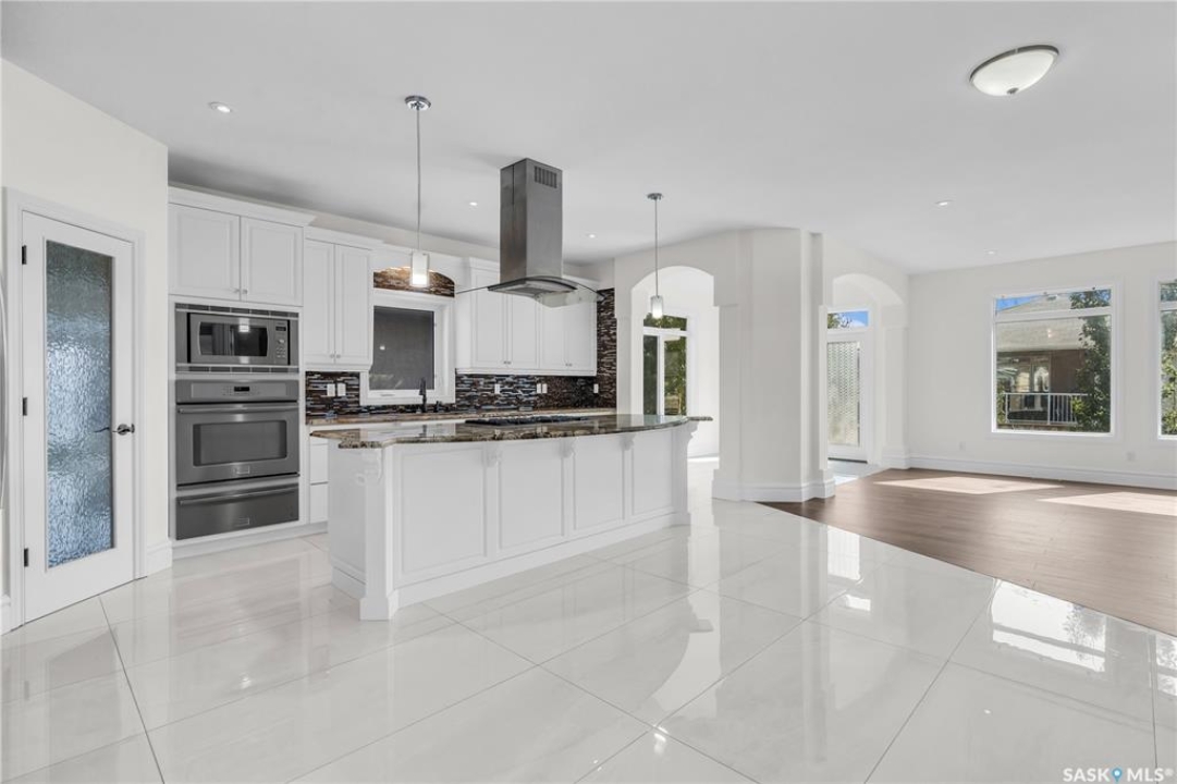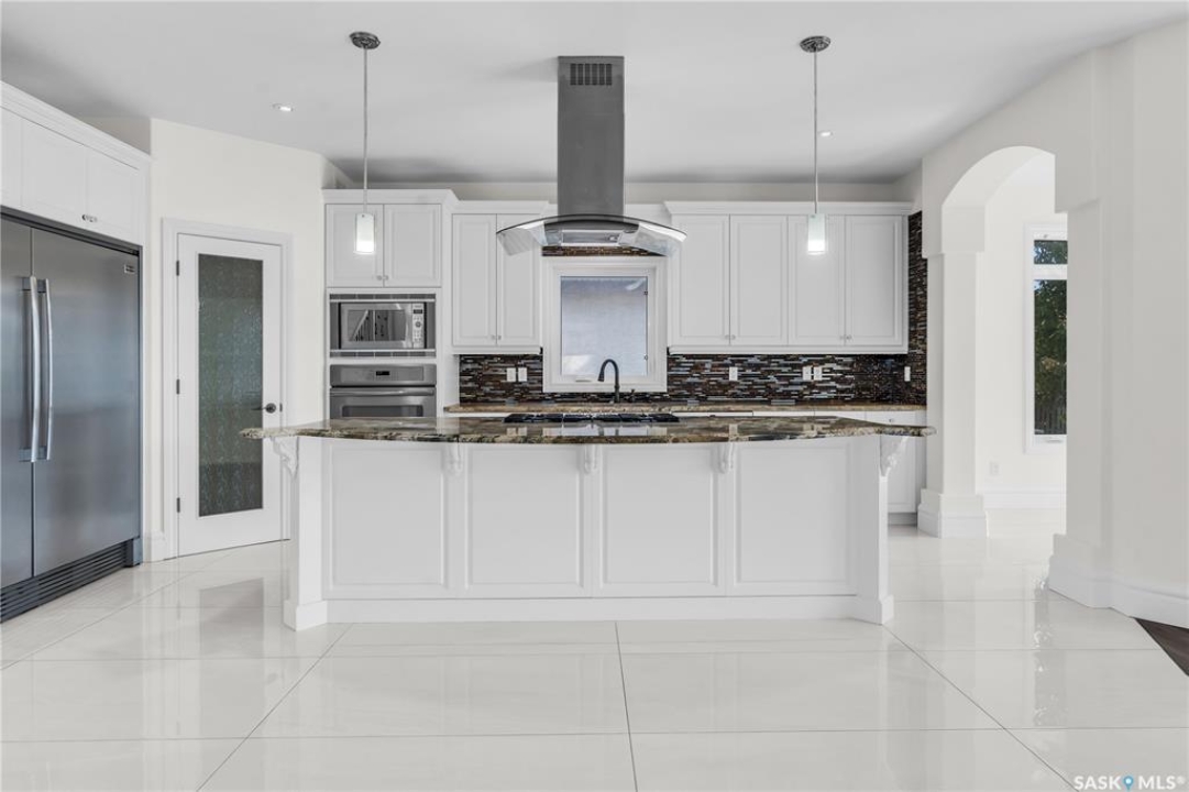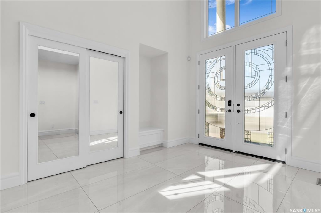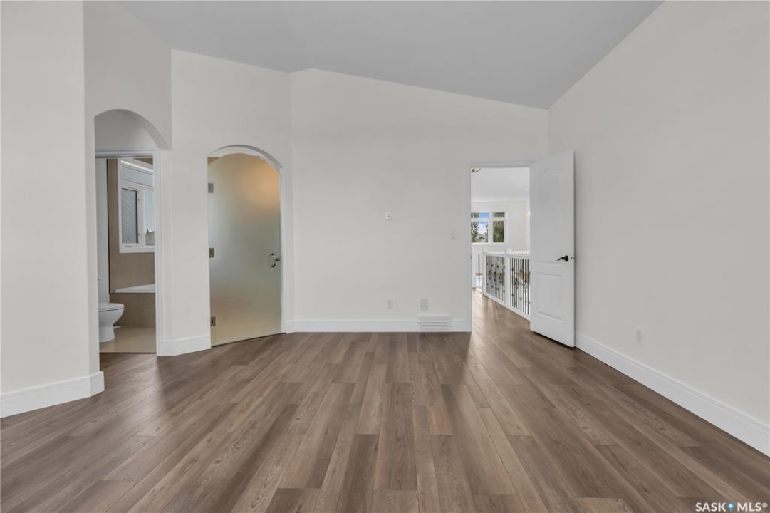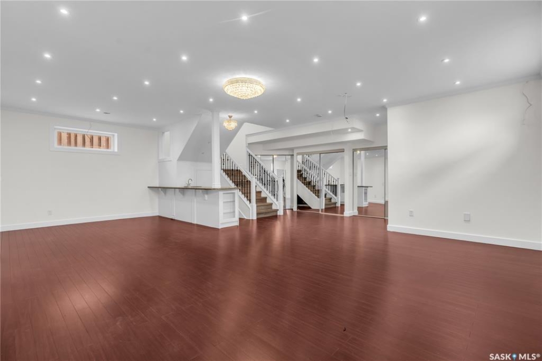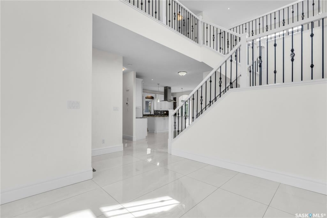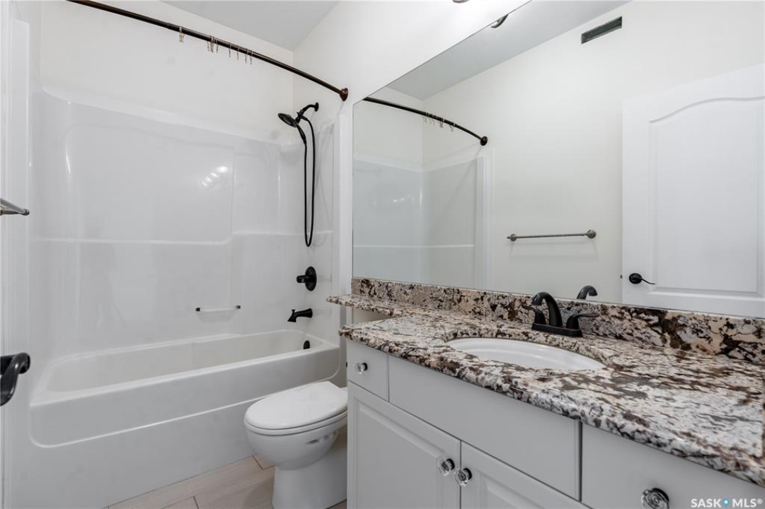 Welcome to this one-of-a-kind Varsity-built family home, offering over 2,500 sq ft of living space with 5 bedrooms, 4 bathrooms, and soaring ceilings that impress from the moment you walk in. The grand foyer leads into a chef's kitchen with an oversized fridge/freezer, gas range, built-in oven, corner pantry, and a large island perfect for entertaining. Just off the kitchen, the dining area is filled with natural light from oversized windows, while the spacious living room features an electric fireplace with a built-in TV wall. Fresh paint and new luxury vinyl plank flooring flow throughout, giving the home a modern, move-in-ready feel. A main floor office provides the ideal work-from-home space, while a full bathroom with tiled shower and a functional mudroom with garage access add everyday convenience. Upstairs, a large bonus room offers extra space for a media lounge, play area, or future bedroom if enclosed. Two secondary bedrooms each feature walk-in closets and share a full 4-piece bath. The primary retreat boasts vaulted ceilings, large windows, an oversized walk-in closet, and a spa-inspired ensuite with a jet tub, tiled shower, and dual sinks. The fully finished basement extends the living space with 9-ft ceilings, a massive recreation area with wet bar, built-in speakers, and a second fireplace. Two additional bedrooms, another full bathroom, and ample storage complete this level. Outside, enjoy a low-maintenance backyard with a deck, turf, and mature trees bordering the property. The double attached garage and wide side yards provide even more utility. Situated near schools, parks, shopping, and all Harbour Landing amenities, this home blends elegance, comfort, and functionality for the modern family.