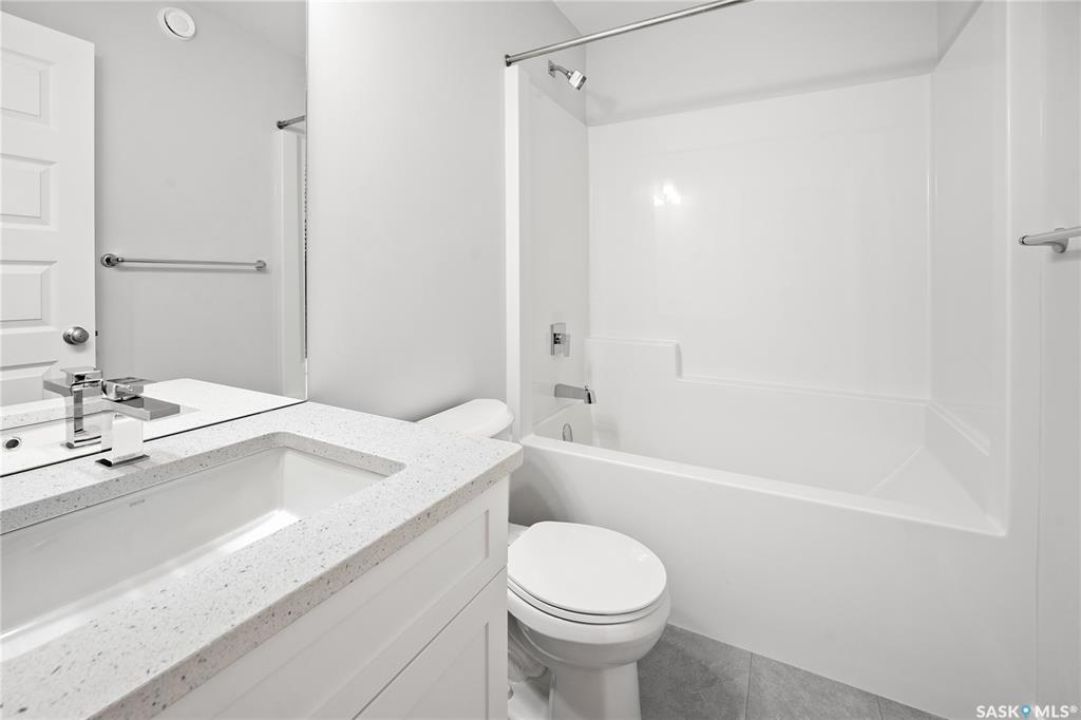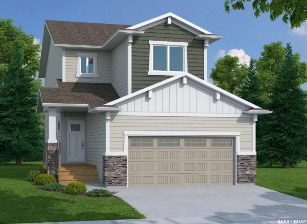 UNDER CONSTRUCTION. Welcome to "The Richmond" by premier builder Ehrenburg Homes, located in the vibrant Eastbrook community. This beautifully designed two-storey offers 1,560 sq. ft. of functional living space with premium finishes throughout. The main floor welcomes you with a bright, open-concept design—perfect for family living and entertaining. The spacious living room features a striking stack stone feature wall and an elegant electric fireplace, while large windows fill the space with natural light. The contemporary kitchen is the heart of the home, complete with quartz countertops, a large island with eating bar, and modern cabinetry. The adjoining dining room is ideal for gatherings, and a convenient 2-piece bath rounds off the main level. Upstairs, you'll find three generous bedrooms. The primary suite boasts a walk-in closet and private 3-piece ensuite with dual sinks. Two additional bedrooms, a full bath, and a dedicated laundry room provide comfort and practicality for busy households. A versatile bonus room adds even more living space—perfect as a family lounge, playroom, or home office. The basement is open and ready for your future development, whether you envision a rec room, gym, or guest suite. Outside, front landscaping, underground sprinklers, a front sidewalk, and a double attached garage. With Saskatchewan New Home Warranty protection and Ehrenburg's superior craftsmanship, The Richmond is the perfect blend of style, space, and peace of mind. (PST/GST are included within purchase price). NOTE: Interior photos are from a previous build. Same model but some colours may vary.