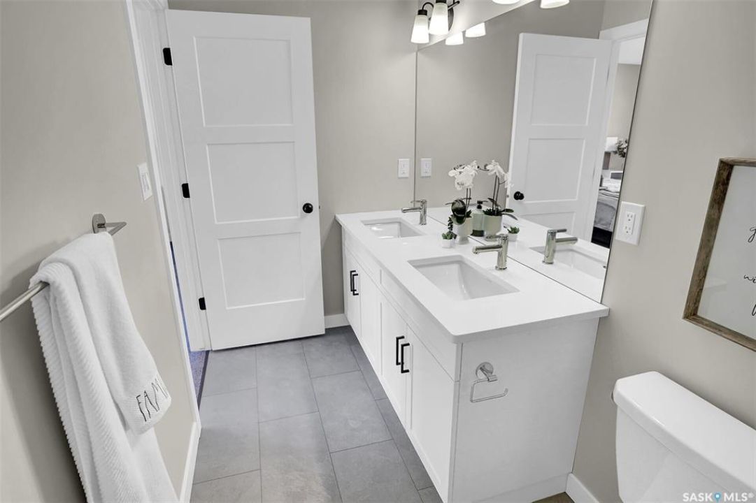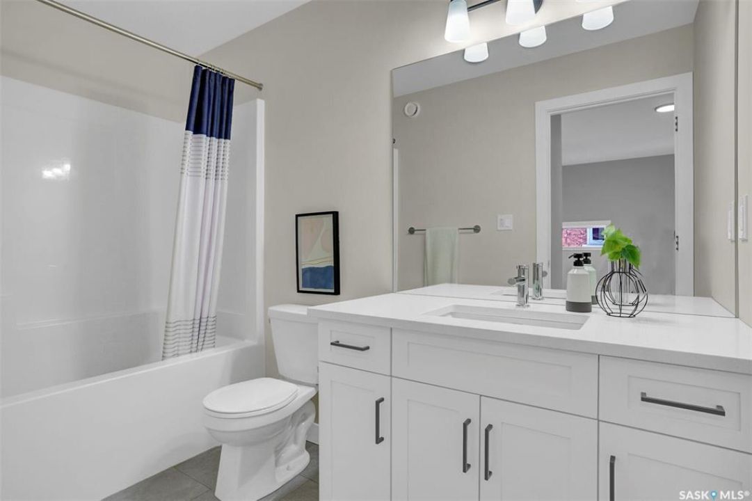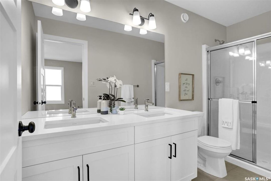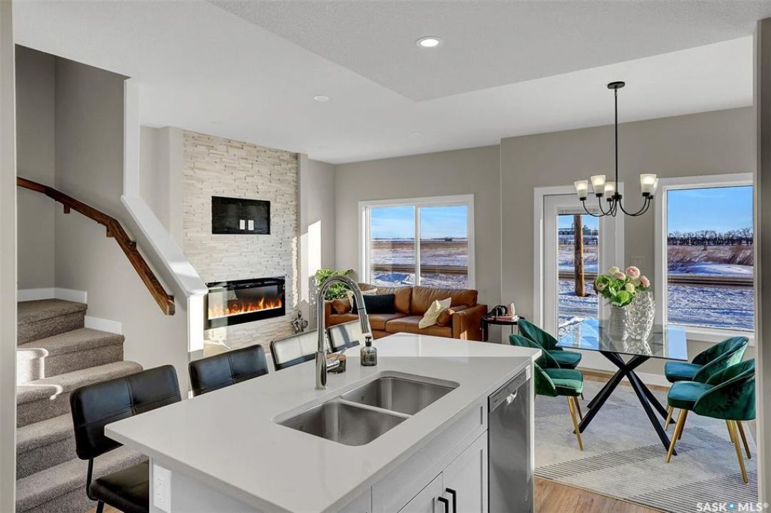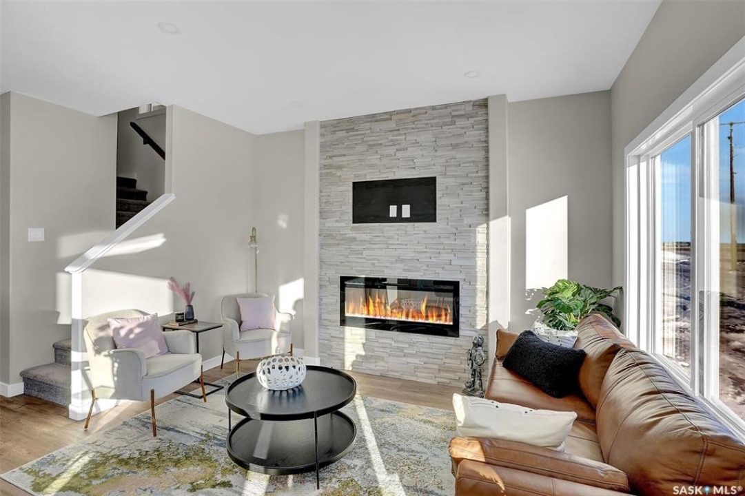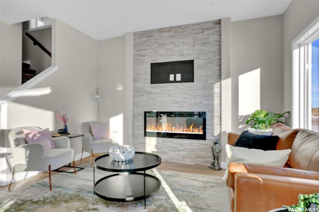 UNDER CONSTRUCTION. Welcome to "The Wasserberg" by premier builder Ehrenburg Homes, located in the vibrant Eastbrook community. This beautifully designed two-storey offers 1,773 sq. ft. of functional living space with premium finishes throughout. The main floor welcomes you with a bright, open-concept design—perfect for family living and entertaining. The spacious living room features a striking stack stone feature wall and an elegant electric fireplace, while large windows fill the space with natural light. The contemporary kitchen is the heart of the home, complete with quartz countertops, a large island with eating bar, and modern cabinetry. The adjoining dining room is ideal for gatherings, and a convenient 2-piece bath rounds off the main level. Upstairs, you'll find four generous bedrooms. The primary suite boasts a walk-in closet and private 3-piece ensuite. Three additional bedrooms, a full bath, and a dedicated laundry room provide comfort and practicality for busy households. A versatile bonus room adds even more living space—perfect as a family lounge, playroom, or home office. The basement is open and ready for your future development, whether you envision a rec room, gym, or guest suite. Outside, front landscaping, underground sprinklers, a front sidewalk, and a double attached garage. With Saskatchewan New Home Warranty protection and Ehrenburg's superior craftsmanship, The Wasserberg is the perfect blend of style, space, and peace of mind. (PST/GST are included within purchase price). NOTE: Interior photos are from a previous build. Same model but some colours may vary.