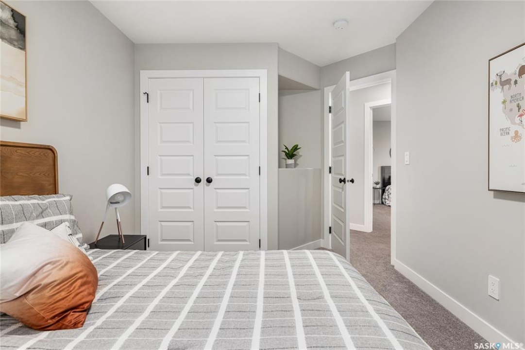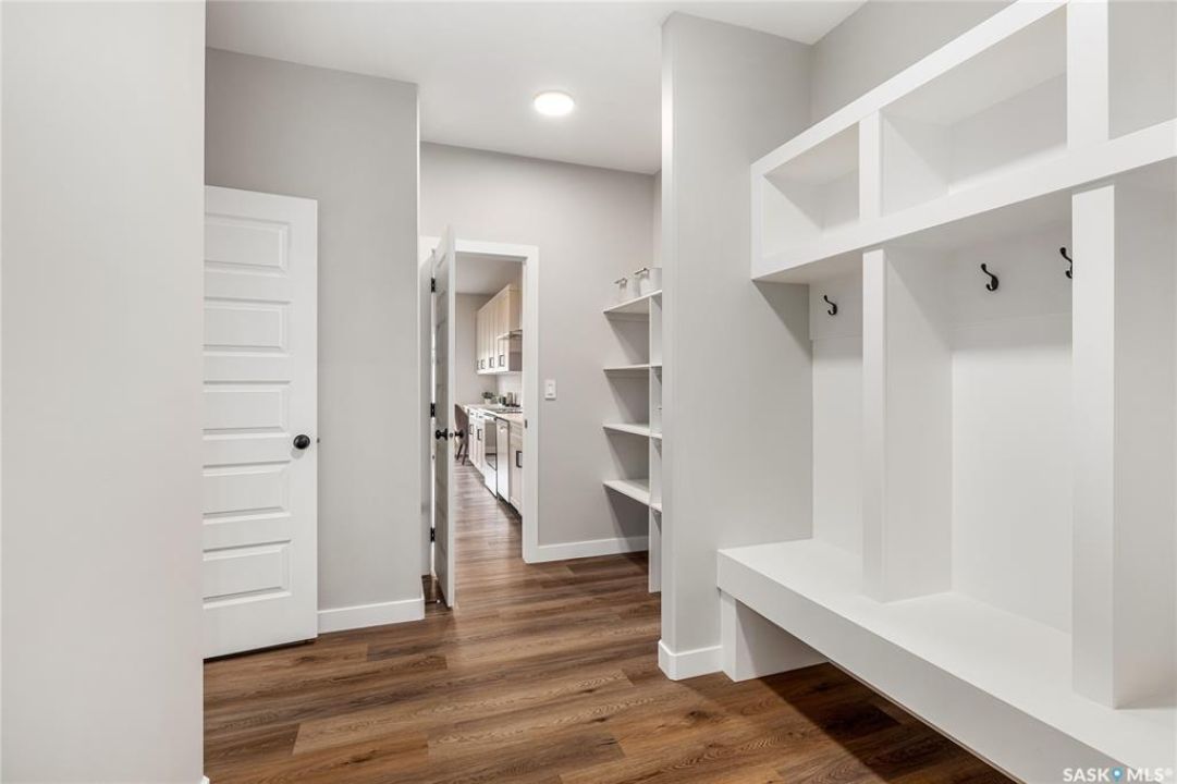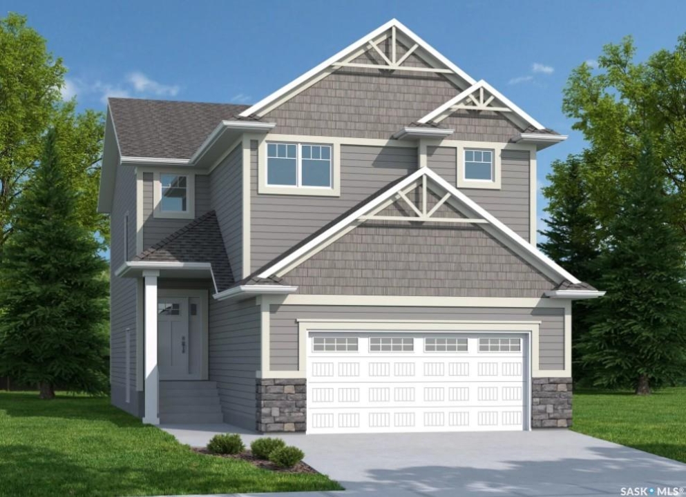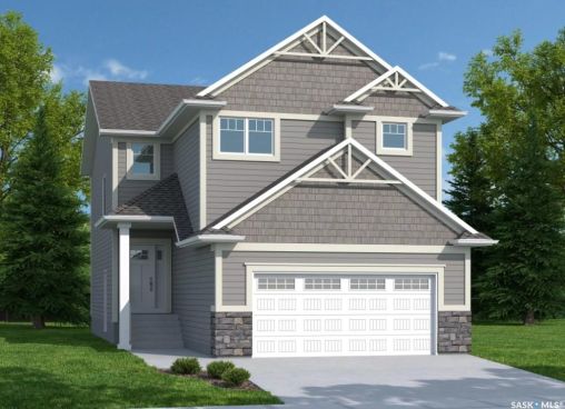 UNDER CONSTRUCTION. Welcome to "The Starkenberg" by premier builder Ehrenburg Homes, located in the vibrant Eastbrook community. This beautifully designed two-storey offers 2,000 sq. ft. of functional living space with premium finishes throughout. The main floor features a bright, open-concept layout—perfect for family living and entertaining. A spacious living room showcases a striking stack-stone feature wall and elegant electric fireplace, while large windows fill the space with natural light. At the heart of the home, the contemporary kitchen includes quartz countertops, a large island with eating bar, modern cabinetry, and a generous walk-in pantry. The adjoining dining area is ideal for gatherings and offers direct access to the backyard deck. A convenient 2-piece bath and a functional mudroom off the garage round off the main level. Upstairs, the primary suite is a true retreat with a walk-in closet and private 3-piece ensuite complete with dual sinks. Three additional bedrooms, a full bath, and a dedicated laundry room provide everyday comfort and convenience. A versatile bonus room adds even more living space—perfect as a family lounge, playroom, or home office. The basement is open and ready for your future development, whether you envision a rec room, gym, or guest suite. Outside, enjoy thoughtful details like front landscaping, underground sprinklers, a front sidewalk, a backyard deck, and a double attached garage with direct entry through the mudroom. Backed by Saskatchewan New Home Warranty protection and Ehrenburg's superior craftsmanship, The Starkenberg offers the perfect blend of style, space, and peace of mind. (PST/GST included in purchase price). NOTE: Interior photos are from a previous build of the same model; some colours may vary.