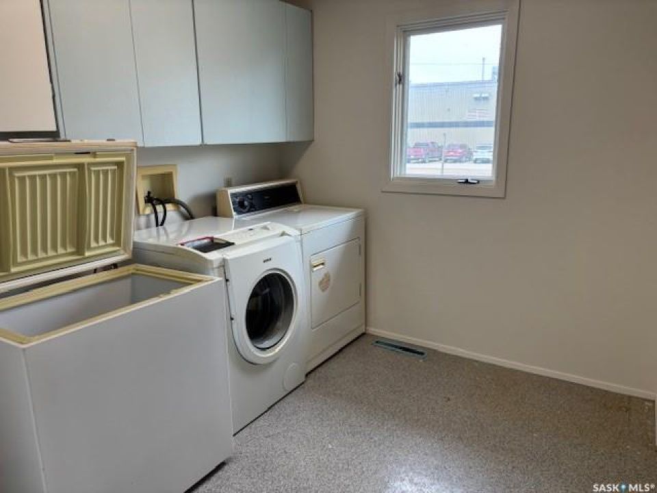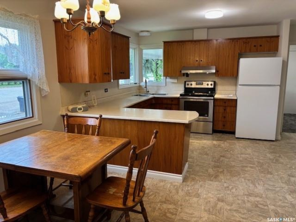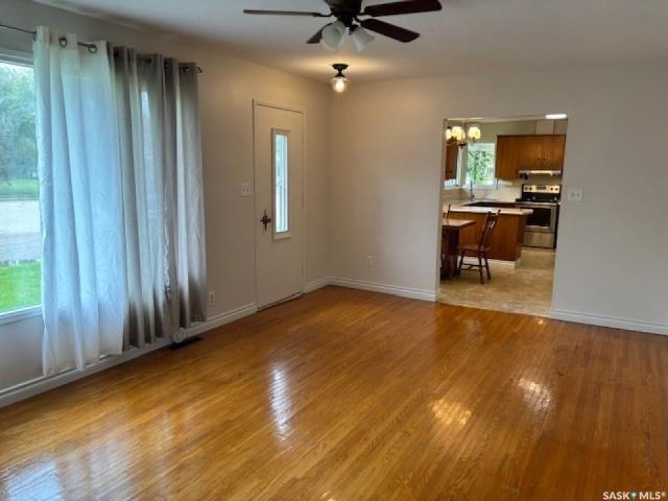 Canora, SK - Check out this 1,100+ sq ft home offering comfortable, practical living. The main level features a spacious kitchen with a dining area, ideal for family meals and entertaining, plus a living room with beautiful hardwood floors. There are two bedrooms and a convenient main floor laundry that can be converted into a third bedroom, if needed. The spacious porch provides tons of storage and direct access to the garage. The partially finished basement includes a recreation area, two piece bath and an additional bedroom. Outside, the expansive 75x130 yard is partially fenced and perfect for gardening, and outdoor gatherings, complete with a storage shed for your garden tools and equipment. Situated in a great location, this home is within walking distance to the new pool, splash park, and schools, offering an excellent lifestyle for families or anyone seeking convenience. Included in the purchase price: fridge, stove, washer, dryer, storage shed and all window coverings. Call today for more details!