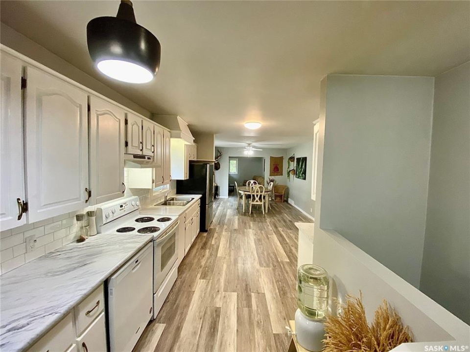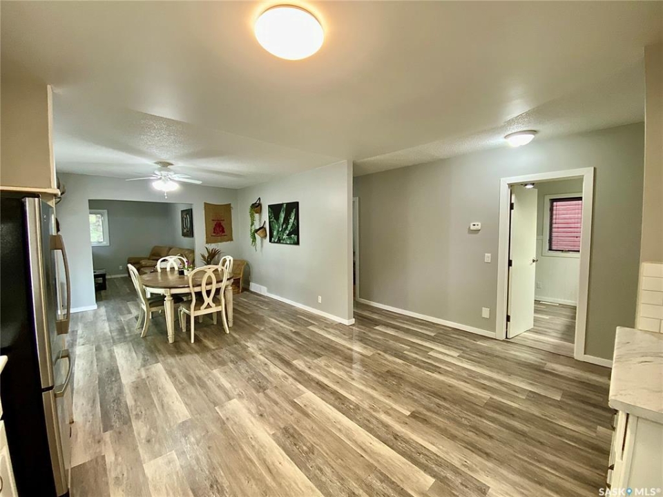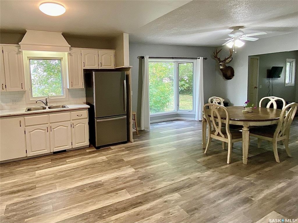 Step into this 1,500 sq ft home in Redvers, SK, blending thoughtful updates with comfortable living. Originally built in 1949 and expanded in 1994, this spacious property offers convenience in a family-friendly location right across the street from the school. Inside, the open-concept kitchen, dining, and living room is perfect for entertaining, highlighted by painted white cabinets, updated countertops, and a large bay window that fills the space with inviting natural light. Modern laminate and vinyl flooring flow throughout the main level, complemented by some PVC windows. The home also features a large mudroom, main floor laundry, and a cozy covered deck—ideal for enjoying summer evenings. A high-efficient furnace ensures year-round comfort, while the 22x12 single detached garage covered parking and storage. Redvers is a welcoming community where small-town charm meets modern amenities. Known for its strong agricultural roots and close-knit spirit, Redvers offers K–12 schooling, a variety of shops and services, healthcare facilities, and recreational opportunities for the whole family. Its location makes it a hub for those who value both convenience and a quieter lifestyle, while still being within reach of larger centers. Whether you're raising a family, downsizing, or seeking a slower pace, Redvers is a place where you can truly feel at home.