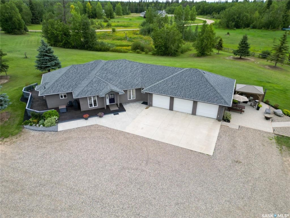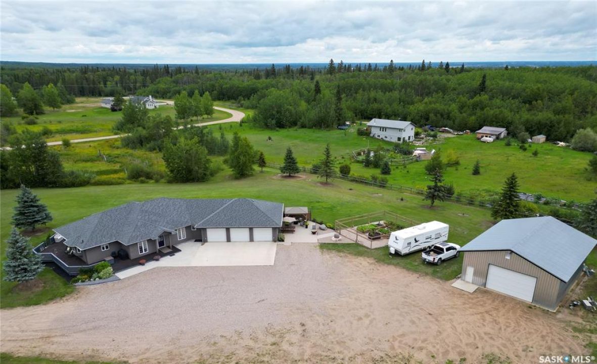 This 5.34 acerage in Christopher Lake is exactly what you've been looking for! It has breathtaking views of the surrounding white and Colorado blue spruce, flower gardens, vegetable garden and the expansive lawn. Enjoy watching wildlife on one of the 3 recycled tire decks surrounding the house. Relax or host guests in the 10 x 12 private gazebo, sheltered from wind and sun, on the 18 ½ x 32-foot paving stone patio. The fenced in raised bed vegetable garden can keep you enjoying the outdoors while supplementing your grocery bill. There is a heated 32' x 42' shop with large overhead door and expansive shelving to work on your favourite hobby or store your recreational toys that you enjoy and use while living very close to Christopher, Emma and Anglin lakes. The property includes a heated, attached two-car garage with an epoxy floor measuring 34 ½' x 30'. The 1892 sq ft open-concept home features 10' ceilings in the main living area, a floor-to-ceiling rock fireplace, and large windows for ample light and country views. The kitchen has been updated with all new appliances, counter tops, subway tile and flooring. The master bedroom features a walk-in closet and a 3-piece steam shower ensuite. This home has 3 bedrooms and 2 full baths. Well and septic field – no hauling water or septic. If you are retired and want a quiet retreat for hobbies and relaxation close to lake recreation and yet not too far from the city, this property is a must see. If you have a small family and want to raise your children in a community with caring neighbours and friends, this could very well be your dream home, or if you just want to enjoy country living – this property delivers. Please make an appointment to view.