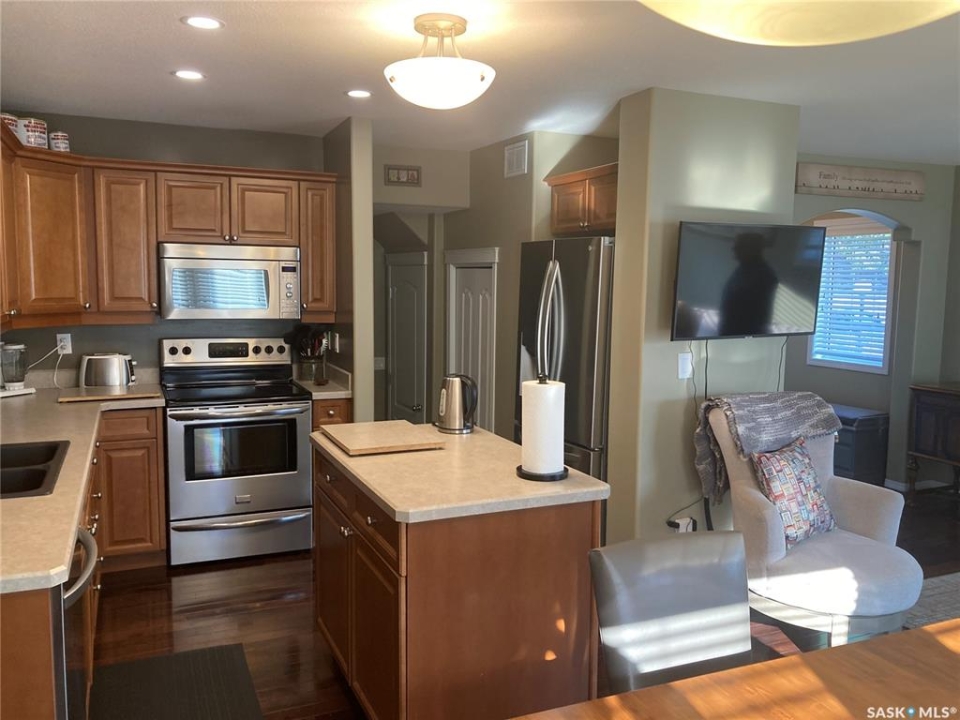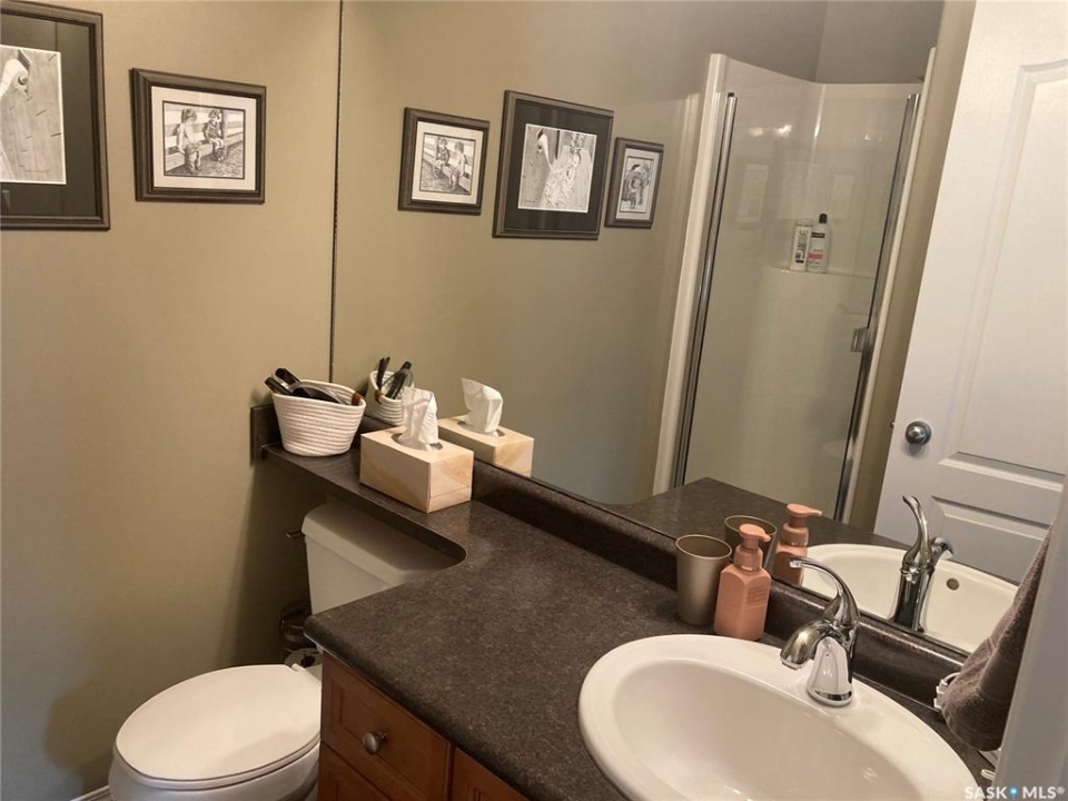 Welcome to #15-110 Dulmage Cr. This spacious 2 bedroom 4 bathroom townhouse shows pride of ownership coupled with a convenient location. As an end unit it has a bonus window that contributes to a bright main floor with an open concept kitchen, dining and living room. All this flows seamlessly to the quiet private deck overlooking the complex green space. Upstairs the great room is perfect for entertaining guests or relaxing by the gas fireplace. It features 10' ceilings with a great view of the park. Large master bedroom with ensuite easily accommodates a king size bed. As a bonus both upstairs bedrooms feature walk in closets. Basement is finished with a half bath and currently used as another bedroom. Recent upgrades include: newer sink and counter tops, dishwasher, fridge, microwave, water heater and shingles in 2024. This townhouse comes with an attached hard to find heated double garage. It is located with in easy walking distance to all Stonebridge shopping amenities, medical as well as elementary schools. Well maintained complex with only 18 units is a short 10 minute drive to university with convenient bus access