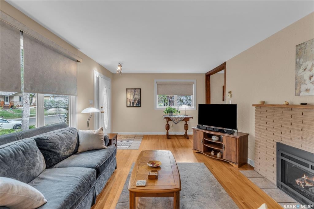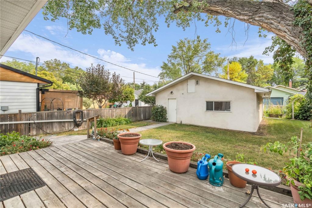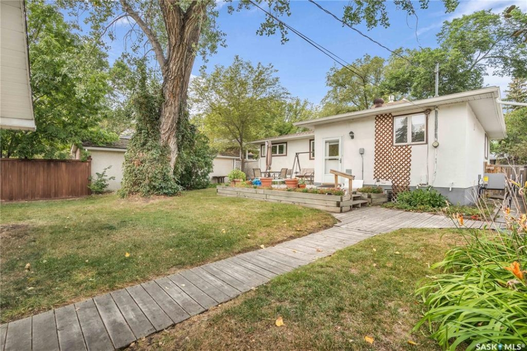 This 1,135 sq ft bungalow offers totally functional space in one of Regina's most sought-after neighbourhoods. Step inside and you're welcomed by the bright living room, featuring original hardwood flooring, a large picture window for plenty of natural light, and a cozy gas fireplace for winter evenings. The home also boasts a ginormous kitchen—complete with quartz countertops, mint-condition oak cabinetry, and enough space for a full-sized dining table. Rounding out the main floor are three spacious bedrooms (two with charming corner windows), the original hardwood carried throughout, a 4-piece bath, and a convenient mudroom leading to the backyard. The fully developed basement extends your living space with a huge rec room, a cozy nook perfect for hobbies or a reading area, a 5-piece bathroom, a den, plus a laundry/utility room with additional storage. Notable upgrades and features include: a brand-new air conditioner, underground sprinklers, hi-efficient furnace, and an upgraded sewer line. Outside, the backyard is full of character with a deck, adorable wooden pathways, a lawn, garden space, and the whimsical “hundred-acre tree.” To top it off, the oversized 32x24 double garage is a rare find—perfect for the handyman or DIYer. Don't miss this opportunity to own a home full of charm and character in a gorgeous Lakeview location!