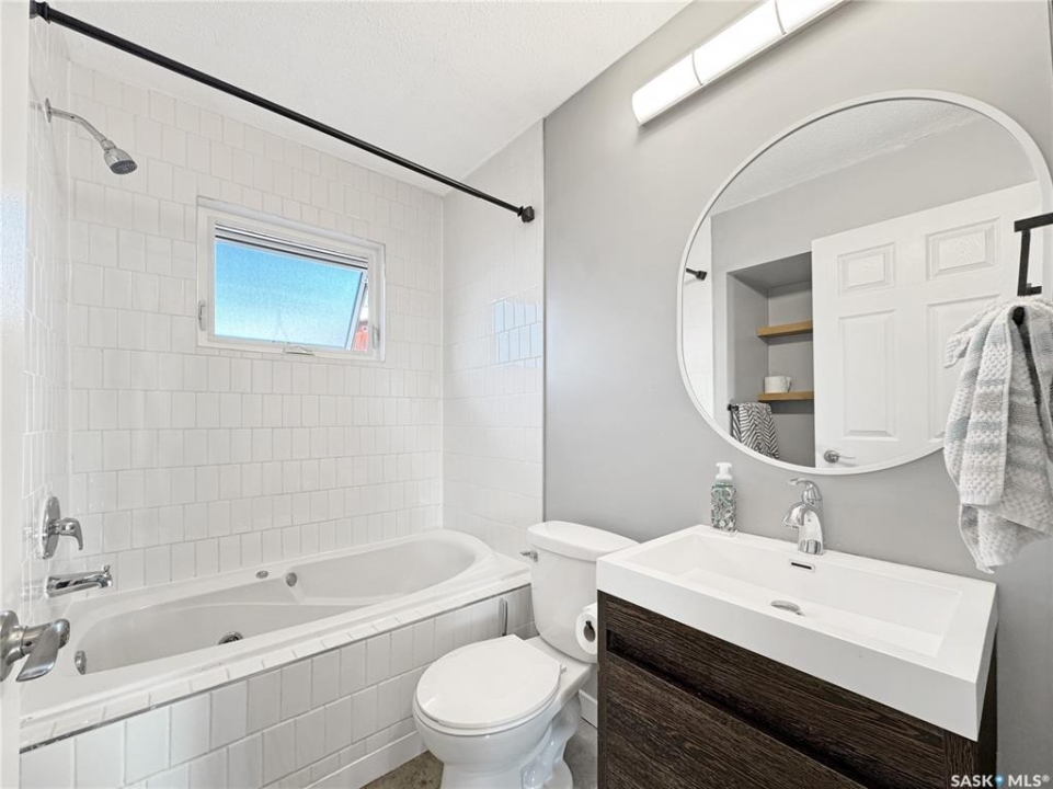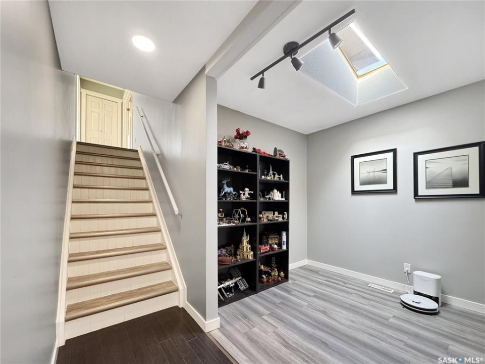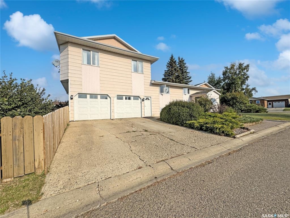 Welcome to this large family home perfectly situated on a desirable corner lot in the beautiful Centennial neighborhood. Originally built in 1979, with additional living quarters added in 1991, this home offers plenty of room for your family to grow and enjoy. Step inside to a welcoming foyer with heated floors that lead into the open-concept kitchen, dining, and living room. The remodeled kitchen was completed in 2021 featuring quartz countertops and tiled backsplash. With the kitchen open to the dining area, your space is fully extended with beautiful garden doors to your private back deck, perfect for entertaining. Main floor offers a unique flex space for potentially an office, playroom, or even a cozy reading nook. Main floor laundry with an abundance of storage space adds everyday convenience. This floor is completed with a fully remodelled main bathroom and a bedroom. Upstairs, the huge master bedroom is a true retreat, greeted with french doors, a walk-in closet and a three-piece en suite with a skylight flooding the space with natural light. Two additional spacious bedrooms complete this level. The basement is designed for family fun with two large recreation/living areas and a handy kitchenette—great for hosting gatherings. Direct access to the double attached garage (insulated and drywalled) adds practicality. More recent updates include the lower-level shingles (2024), windows lower side of home and front door (2021) fresh paint and some flooring. This location can't be beat! Just steps across the road, you'll find green space and a playground, plus Centennial Park is a short walk away offering a track, natural playground, splash pad, skate park, and outdoor rink. If you're looking for a spacious, well-kept family home in a sought-after neighborhood—this is the one! Call today for your own exclusive tour!