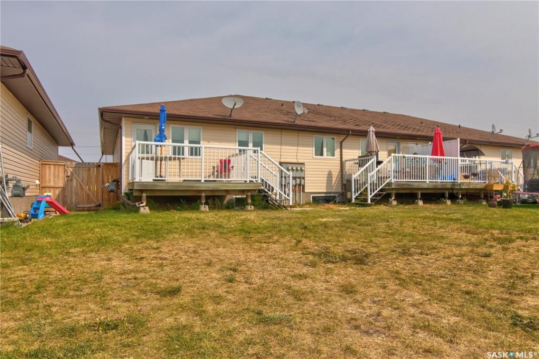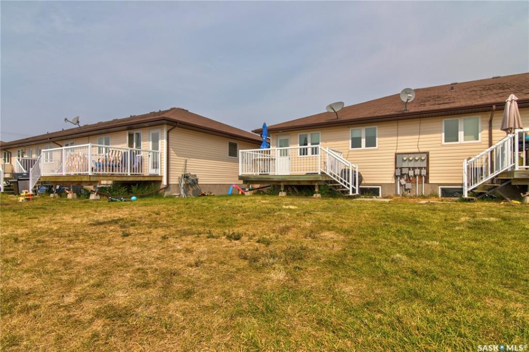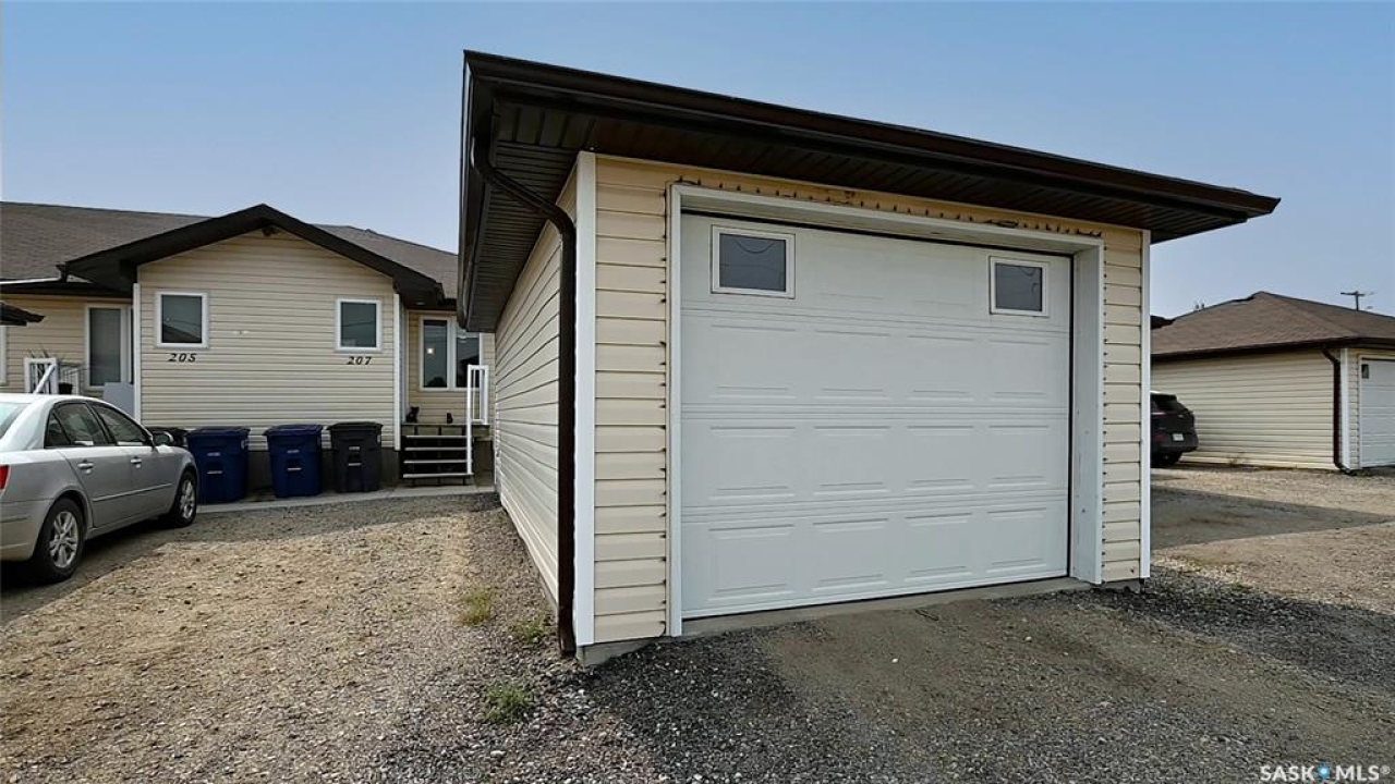 Welcome to 207 South Front Street located in the friendly, quiet town of Pense, centrally located between Regina and Moose Jaw making it an easy commute if you're looking to be close to the city but have small town, lower-cost living. Pense features a K-8 school, preschool, a volunteer fire department, post office, municipal services, Memorial Rink, Lions Splash Park, W.F. Botkin Outdoor Arena, insurance agency, hotel and bar, and gas station/convenience store as well as a ball diamond. There are future plans for a daycare/before & after centre, scheduled to open in 2026. Featuring 2 beds up, 1 down and 2 baths, this 920 sq ft condo is sure to impress! You are welcomed into a spacious front foyer, perfect for boots and hanging jackets. You'll enter your warm and inviting living room with a large picture window, allowing in beautiful natural light. Your kitchen comes with plenty of Tucson maple cabinetry, and a dining space for your table and chairs. A garden door leads you out into the backyard where you can enjoy coffee on the deck as you watch the kids play! Back inside you will find 2 good-sized bedrooms as well as a full 4pc bathroom, and a separate laundry room with built in cabinetry, completing the main level. The completely finished basement includes your large recreation space as well as a built-in bar. This is a great area for entertaining guests! Here you will also find a 3rd bedroom, a 3pc bath and access to your utility room. Additional value adds include: All appliances, 100 amp panel, owned H2O Heater, HE Furnace, HRV Unit, Central A/C, rough in for Central Vac, Fiber Optics Internet, plus LOW CONDO FEES and a 12x24 single fully insulated garage! No more parking outside in the cold Saskatchewan winters. This 2007 built, bungalow style move in ready condo is a great way to get into the real estate market as an affordable home ownership option in a great community. Contact your local Realtor ® to set up your personal viewing today.