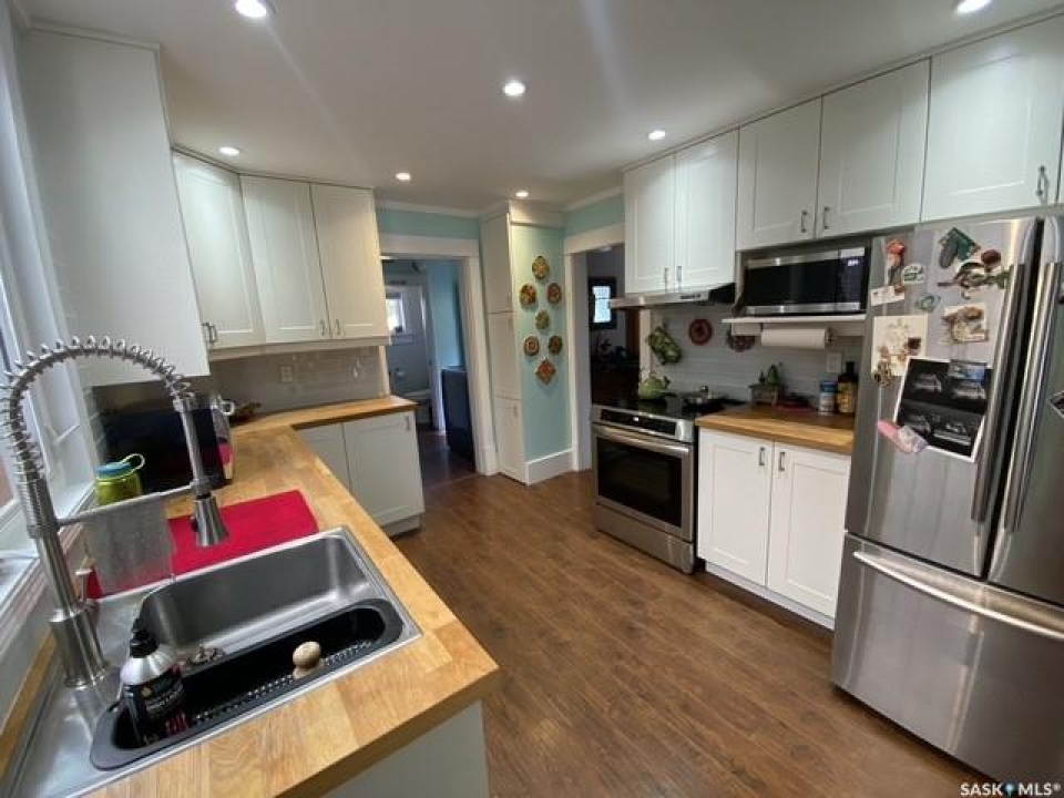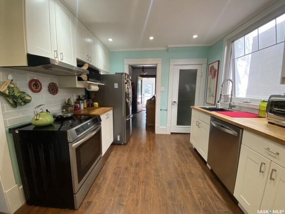 Location! Location! Location! This Nutana area residence presents a distinctive two and a half-story architectural design. The versatile third level is adaptable for use as a bedroom, den, or loft space. Constructed in 1912, the property harmonizes classic aesthetics with contemporary conveniences, including main-floor laundry facilities and an efficient hot water heating system. The basement area is partially finished, and the property features an attractively landscaped yard. Its advantageous location provides convenient pedestrian access to the Broadway commercial area, and the property is competitively positioned in the market.