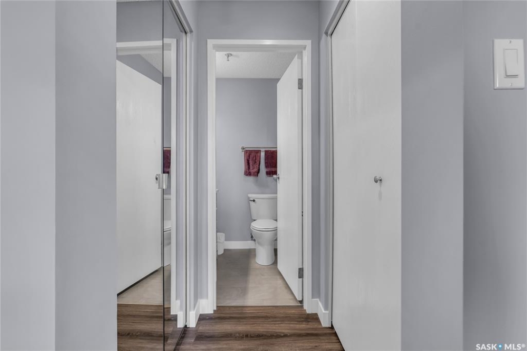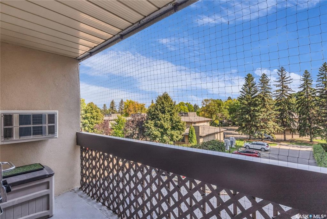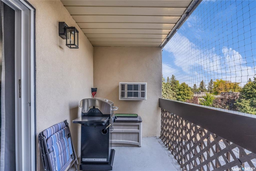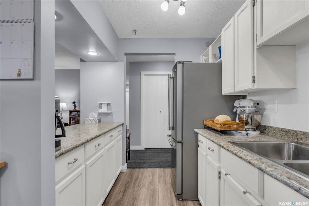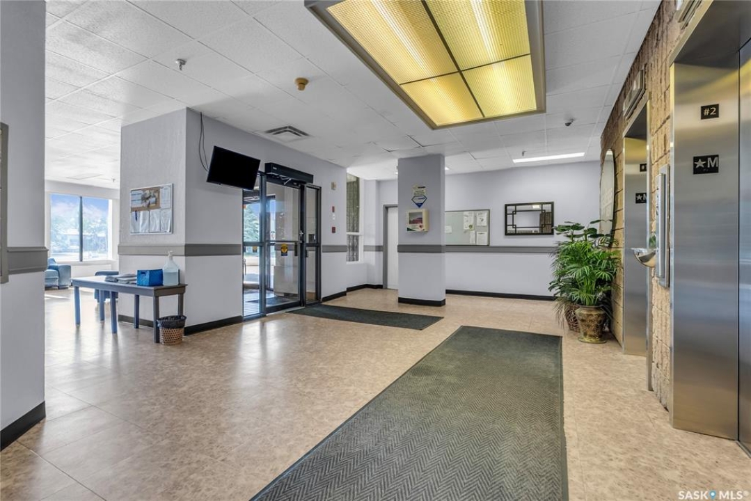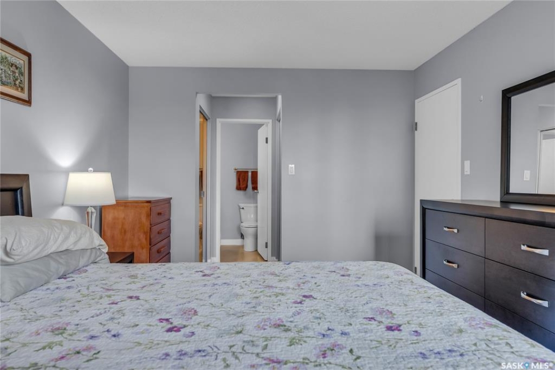 Excellent location, only one block from the Meewasin Walking Trail and Riverbank. East-facing 1132 sq FT, Two bedrooms, 2 Bathrooms, Main Floor Laundry. This unit features a lot of recent upgrades. Light Galley Kitchen Cabinets, with Maytag stainless steel appliances, Hall Pantry, Neutral Painted throughout, durable Laminate Flooring, Newer Patio doors to Balcony with a clear View of your Parking Stall 40. Air conditioner replaced, Newer washer/dryer. Newer vanities in Bathrooms, comfort toilets. Large master bedroom with Double closets. The Complex offers a Hot Tub, Saltwater Pool, Double elevators & More!