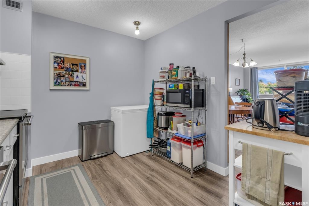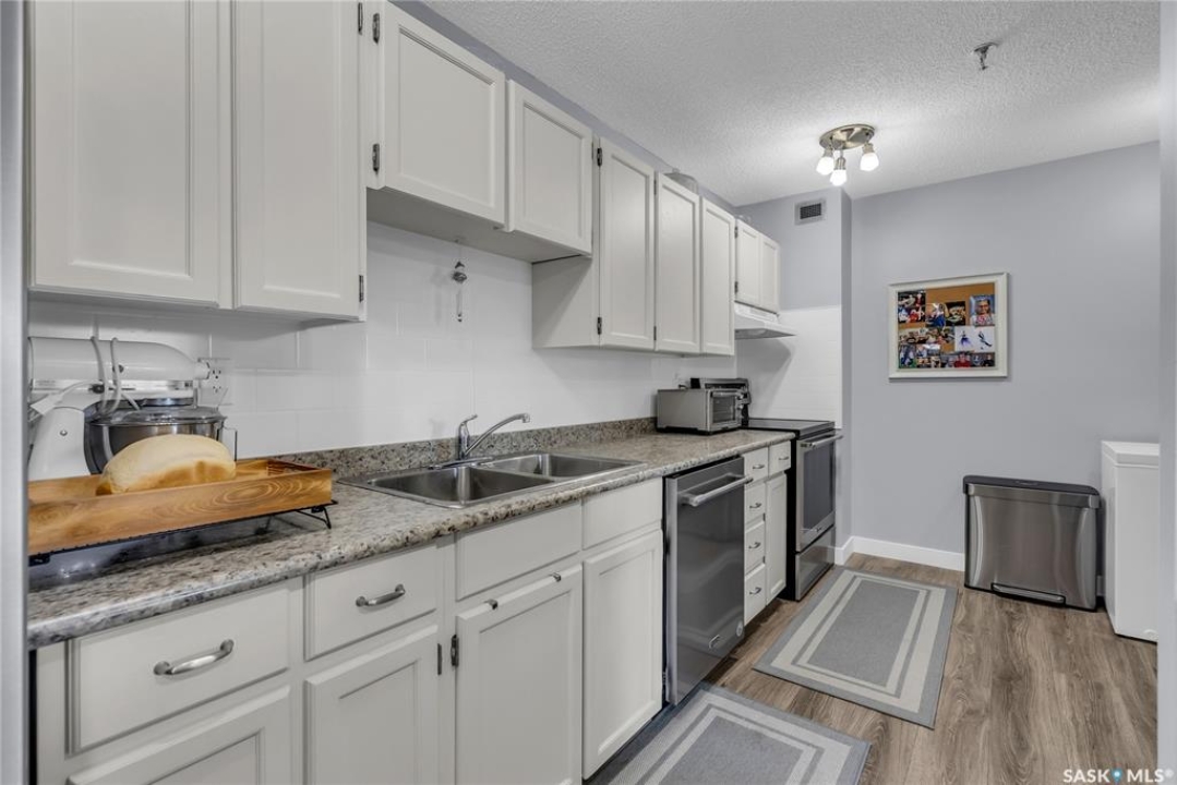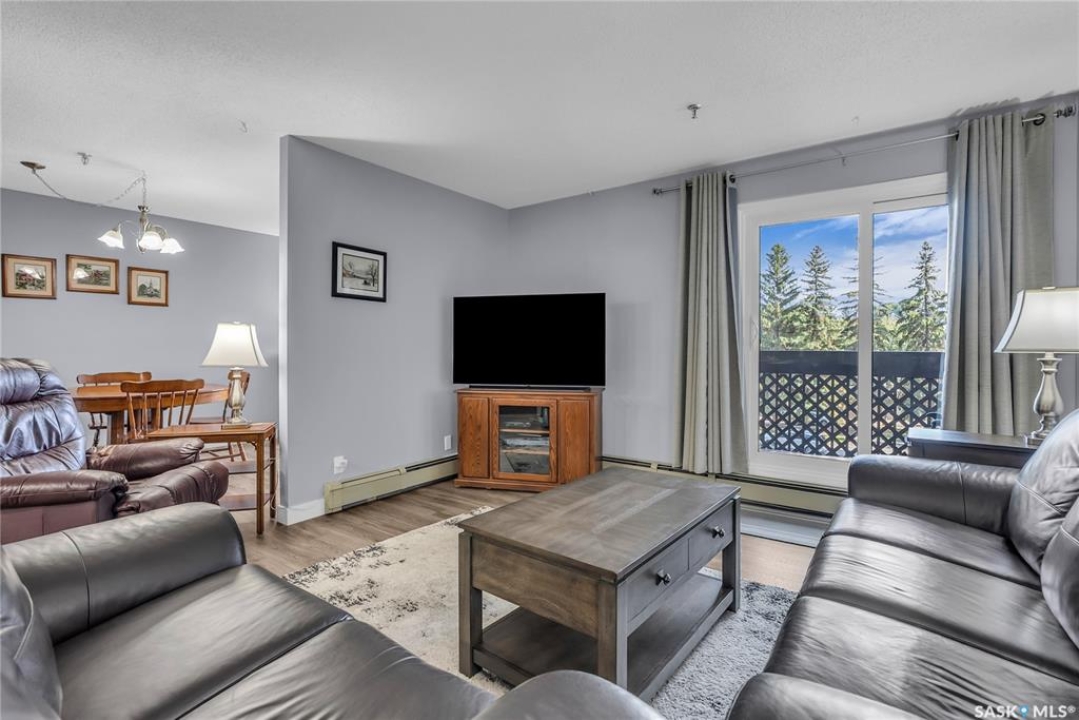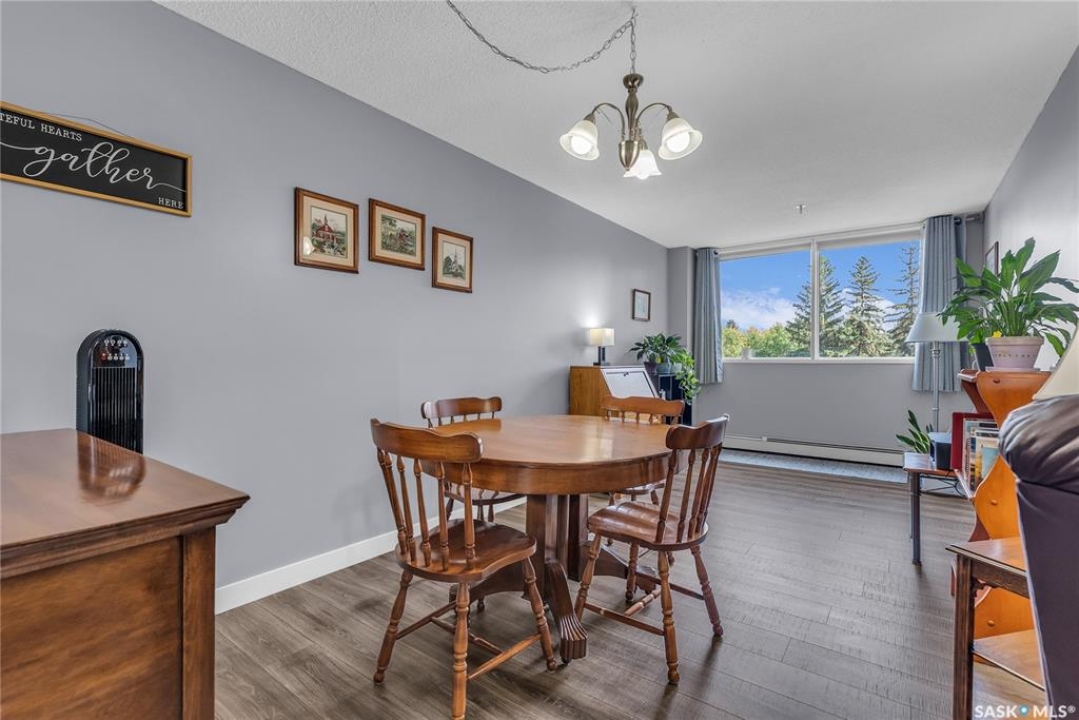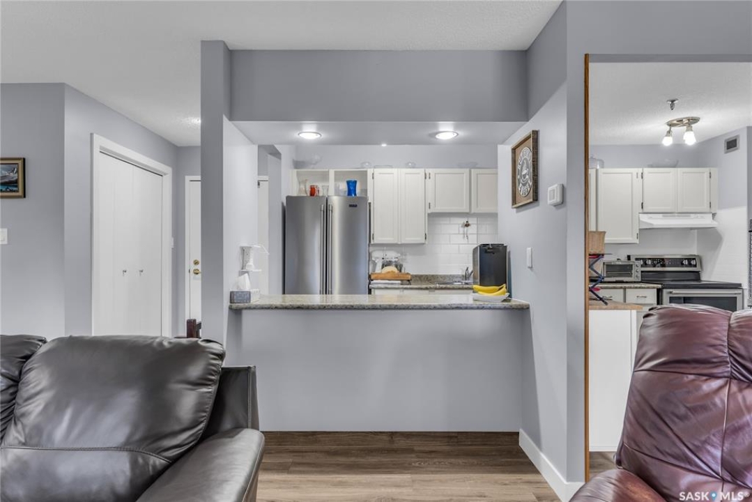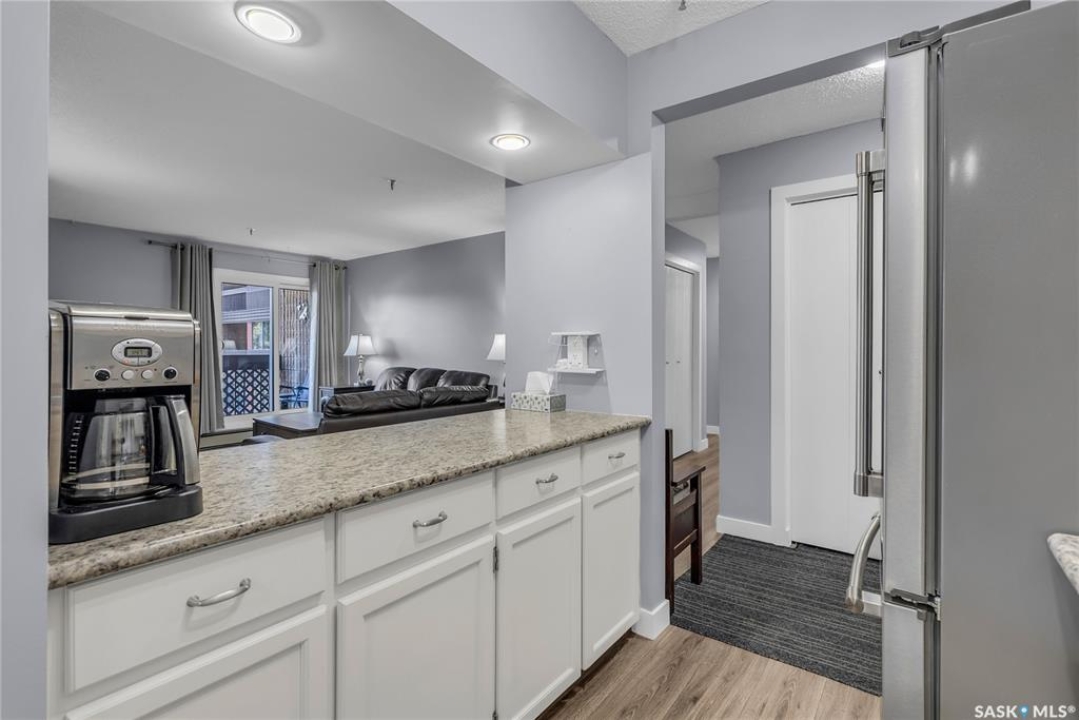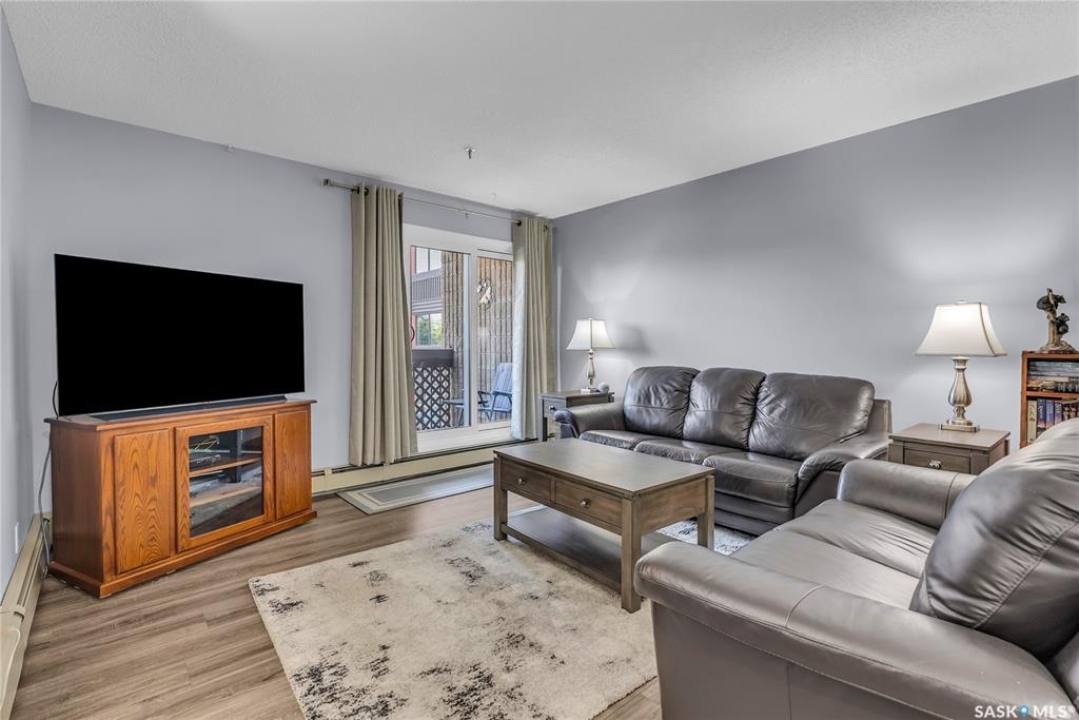 Excellent location, only one block from the Meewasin Walking Trail and Riverbank. East-facing 1132 sq FT, Two bedrooms, 2 Bathrooms, Main Floor Laundry. This unit features a lot of recent upgrades. Light Galley Kitchen Cabinets, with Maytag stainless steel appliances, Hall Pantry, Neutral Painted throughout, durable Laminate Flooring, Newer Patio doors to Balcony with a clear View of your Parking Stall 40. Air conditioner replaced, Newer washer/dryer. Newer vanities in Bathrooms, comfort toilets. Large master bedroom with Double closets. The Complex offers a Hot Tub, Saltwater Pool, Double elevators & More!