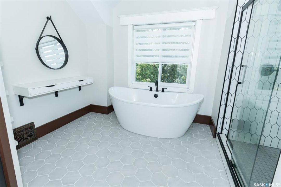 A Piece of Paradise in a Great Location! Furnished photos are virtually staged. Discover this stunning character home, offering approx. 2,600 sq. ft. of living space, nestled among a diverse array of trees that provide shade, privacy, vibrant color, and an acreage feel, all while enjoying the conveniences of town amenities. Lot Size: 125 ft. x 120 ft. Outdoor Features: Multiple deck, patio, and seating options; an east-facing patio for morning sunlight, and a west-facing deck perfect for relaxing in the warmth of the setting sun. This yard is private and sheltered, ensuring maximum enjoyment. Upon entering the home, you are welcomed by a spacious and charming front porch featuring wood trim, some original doors, and an impressive staircase leading to the second level, which is home to: * Three spacious bedrooms: The primary suite includes a walk-in closet and a recently added beautiful 5 pc. ensuite. Laundry room and the 4 piece bath was also renovated. Natural Light: Abundant light pours in through the fantastic windows; nine were replaced in 2017. Shingles and siding were completed at this time as well. The living room showcases a gas fireplace, installed in 2017, complete with a stacked stone surround and wood mantel. There's also a cozy office nook. Now, let's highlight the kitchen! Featuring a large island with a quartz countertop, it's perfect for entertaining. Large windows provide ample sunlight and beautiful views. Come and see it for yourself! This is where holiday traditions are created, and family memories are cherished, all within a space full of upgrades and comfort. Additional Features: A sunroom with skylights and patio doors leading to a large deck, walk-out basement, two-car detached garage, and off-street rear parking. Gas cooktop. Central air. With additions in 1986, 1999, and 2001, this home is a must-see. Local improvement levy has been added to the taxes.