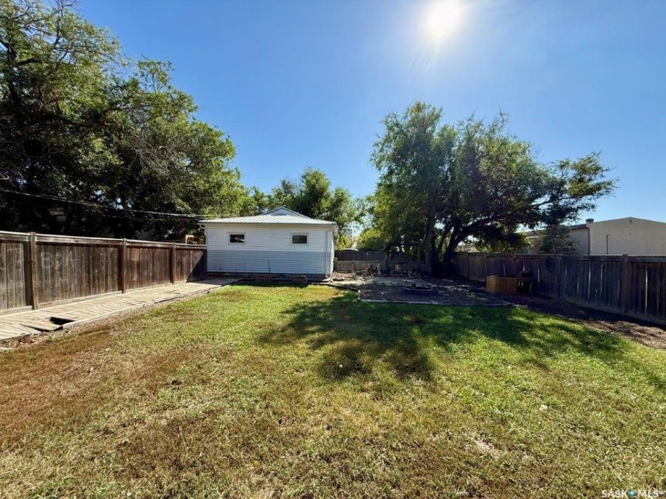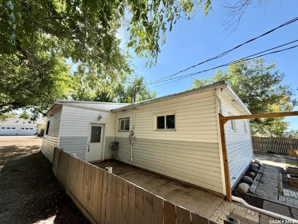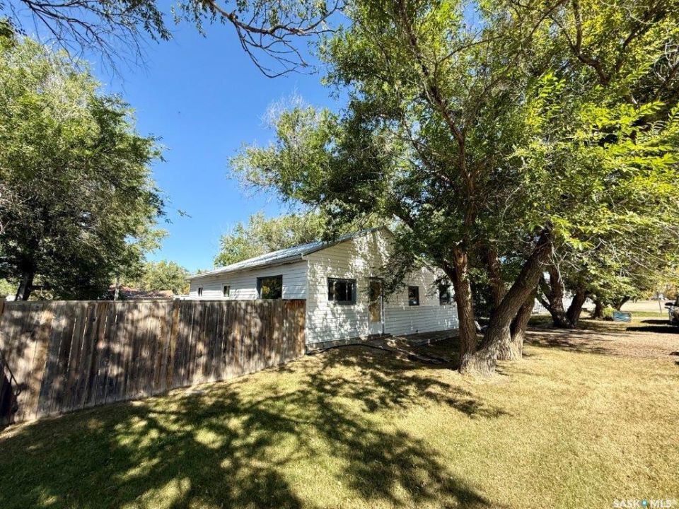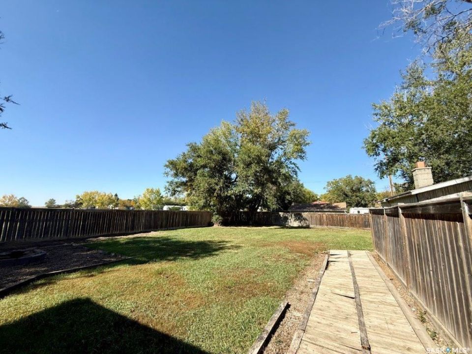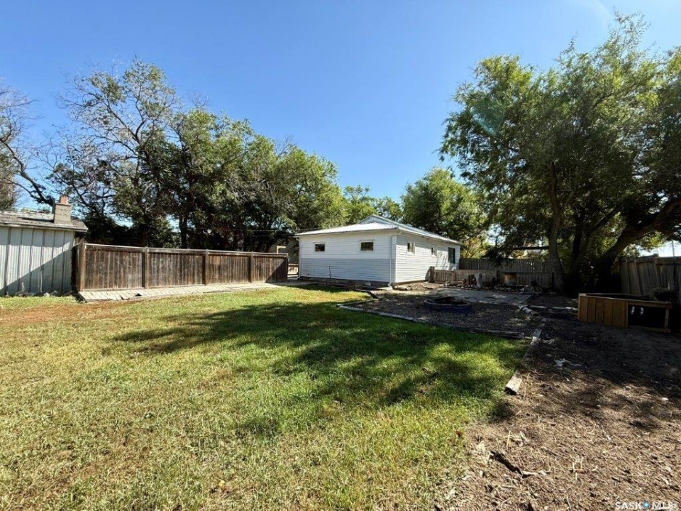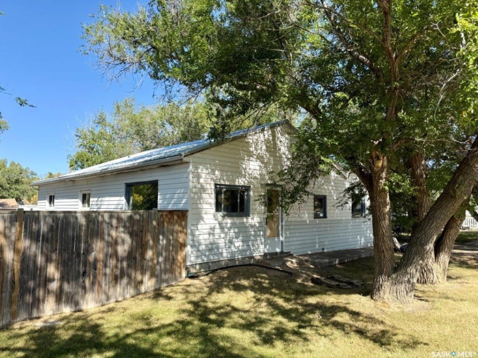 Welcome to this 1149 sq. ft. bungalow, perfectly situated on three spacious lots and just steps away from the school – an ideal location for families! This home offers 3 bedrooms and 2 bathrooms, providing plenty of space for comfortable living. Inside, you'll find a nice-sized dining area that overlooks the front street, creating a warm and inviting spot for family meals. The living room is a generous size with great natural light, making it the perfect space to relax or entertain. Down the hall, you'll find main floor laundry, a 4-piece bathroom, and three bedrooms, including a primary suite with its own 3-piece ensuite. The basement is unfinished, offering excellent storage space and housing the furnace, water heater, and electrical panel. Important updates have been taken care of, including a tinned roof in 2024, water heater replaced in February 2025, and a furnace installed in 2012. The fully fenced yard is a standout feature, offering a peaceful retreat with mature trees, garden boxes, and a firepit area for evenings outdoors. A large driveway provides ample parking and leads to the single detached garage. This home combines a great location, functional layout, and plenty of outdoor space – the perfect place to settle in. Call to book your showing today.