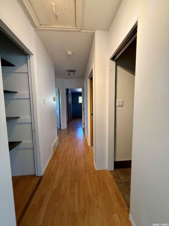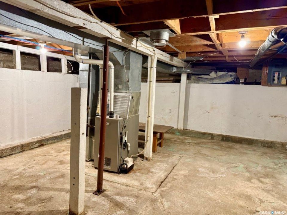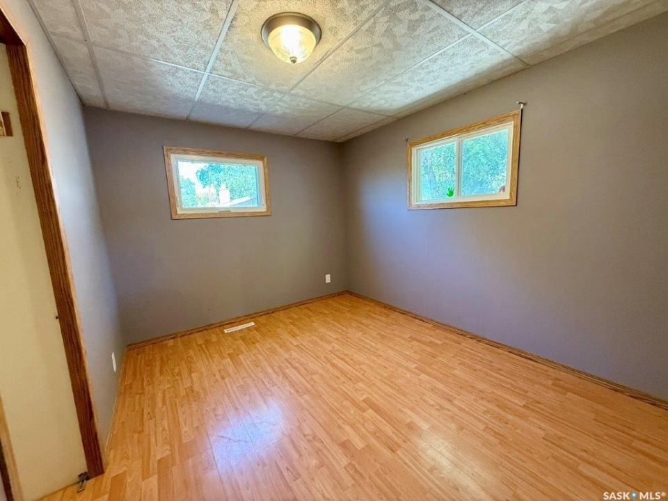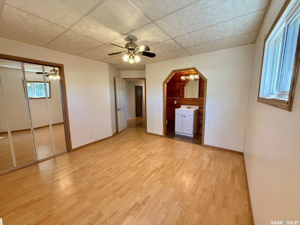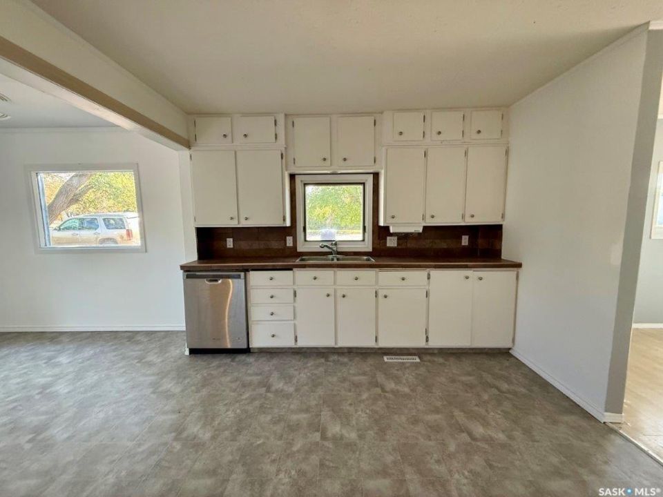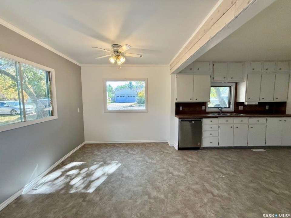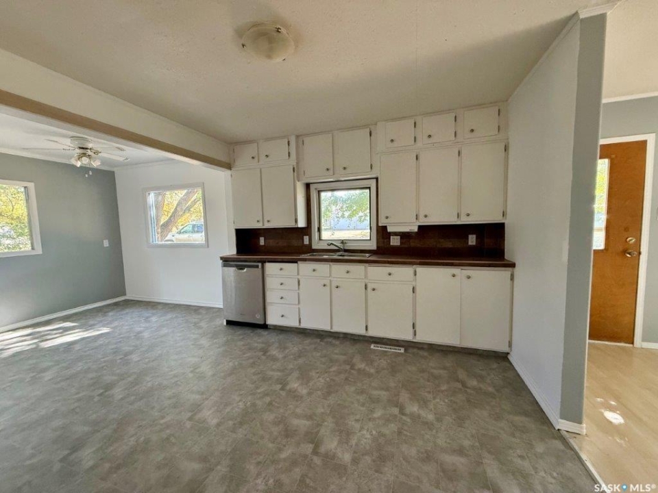 Welcome to this 1149 sq. ft. bungalow, perfectly situated on three spacious lots and just steps away from the school – an ideal location for families! This home offers 3 bedrooms and 2 bathrooms, providing plenty of space for comfortable living. Inside, you'll find a nice-sized dining area that overlooks the front street, creating a warm and inviting spot for family meals. The living room is a generous size with great natural light, making it the perfect space to relax or entertain. Down the hall, you'll find main floor laundry, a 4-piece bathroom, and three bedrooms, including a primary suite with its own 3-piece ensuite. The basement is unfinished, offering excellent storage space and housing the furnace, water heater, and electrical panel. Important updates have been taken care of, including a tinned roof in 2024, water heater replaced in February 2025, and a furnace installed in 2012. The fully fenced yard is a standout feature, offering a peaceful retreat with mature trees, garden boxes, and a firepit area for evenings outdoors. A large driveway provides ample parking and leads to the single detached garage. This home combines a great location, functional layout, and plenty of outdoor space – the perfect place to settle in. Call to book your showing today.
