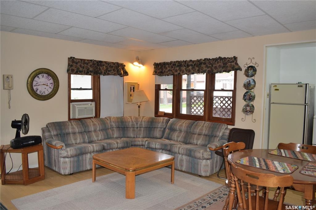 Charming Emma Lake Cabin! This 593 square foot seasonal cabin is on a leased lot in Sunnyside Co-op. Great location just steps away from Sunnyside Beach and close to many amenities including convenience store, restaurant, golf course, mini golf. Open concept living area with cozy wood burning stove. Two bedrooms. Private backyard with large deck, firepit and storage shed. Co-op fees are $375 per year and include water (May to September) and street maintenance. Yearly taxes are $972. Don't miss out on this perfect family getaway!