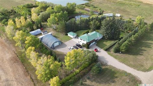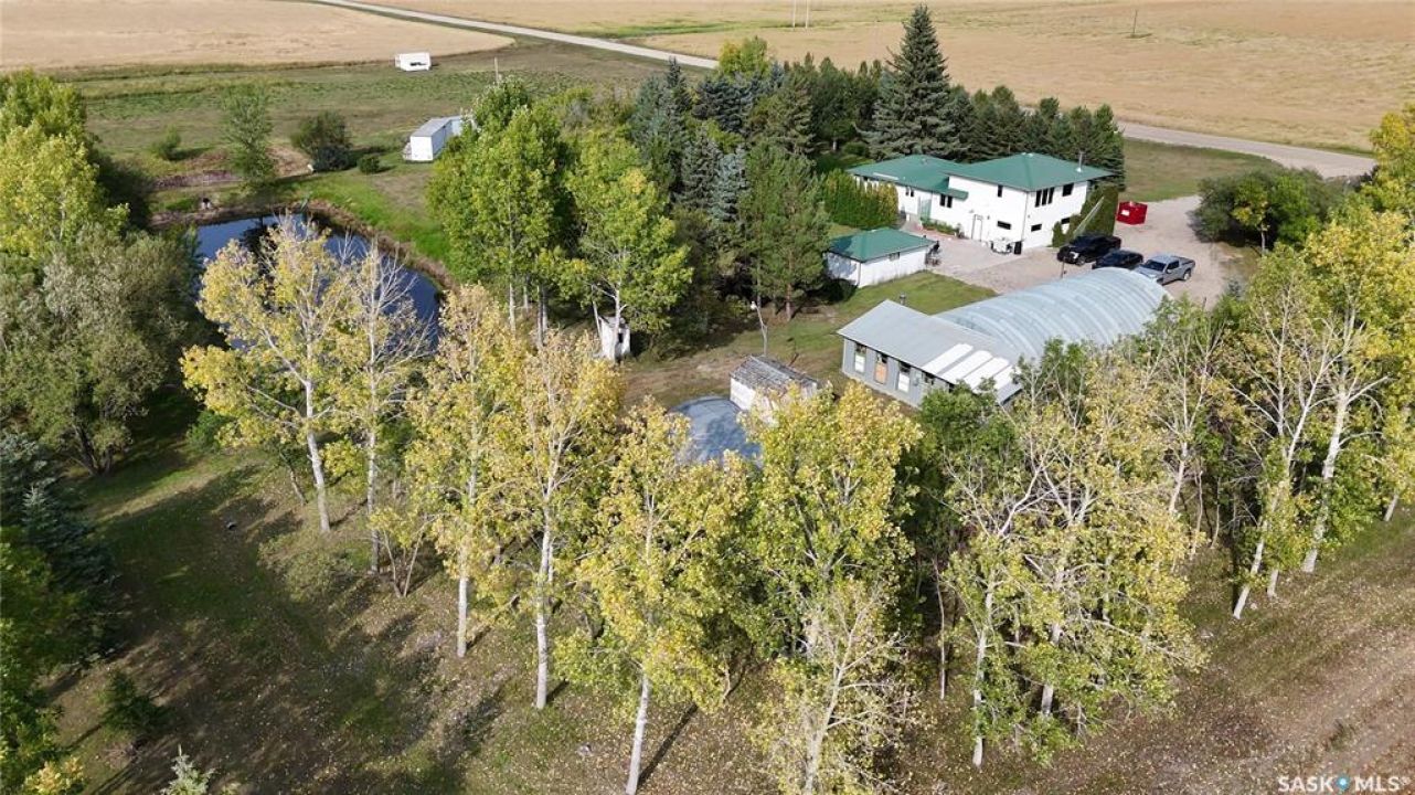 Welcome to your own private oasis just 5 minutes from Regina's southwest corner. This incredible 12.75-acre property combines the peace and privacy of acreage living with the convenience of city amenities — the best of both worlds. Originally built in 1960 and thoughtfully expanded in 1977, this spacious home offers plenty of room for family and entertaining. The addition includes a double attached garage with direct entry and a stunning living room above, creating a warm and inviting space to relax. Recent updates make this home move-in ready: • High-efficiency furnace • PVC windows • Durable tin roof • Modern vinyl plank flooring The finished, heated double garage is perfect for keeping vehicles warm in winter or doubling as a workshop. Step outside and enjoy everything this mature property with plenty of trees has to offer. Whether you're an outdoor enthusiast, hobby farmer, or nature lover, this land has something for everyone: • Orchard with Saskatoons, cherries, sea buckthorn, and buffalo berry • Three ponds, including the largest in the area — approx. 66,000 cubic meters and nearly 40 feet deep • Smaller ponds connected by a culvert system, fed from the main pond, rain, or spring runoff • 50' x 38' Quonset with a 10-foot heated woodworking shop • Single detached garage (14' x 22') • 80-foot well for reliable water • Septic system with an additional lagoon This property is truly one of a kind — a private, serene escape just minutes from the city. Imagine summer evenings by the pond, picking fruit from your own orchard, and enjoying space and freedom while still being close to schools, shopping, and everything Regina has to offer. Whether you're looking for a quiet retreat, a place to grow your hobbies, or an outdoor playground for the whole family, this acreage delivers it all. This is more than a home — it's a lifestyle. Don't miss your chance to make this 12.75-acre paradise yours.