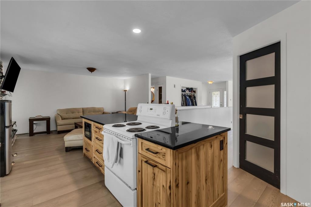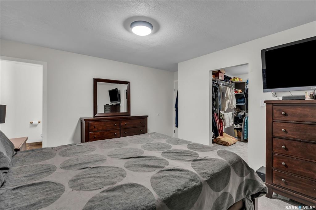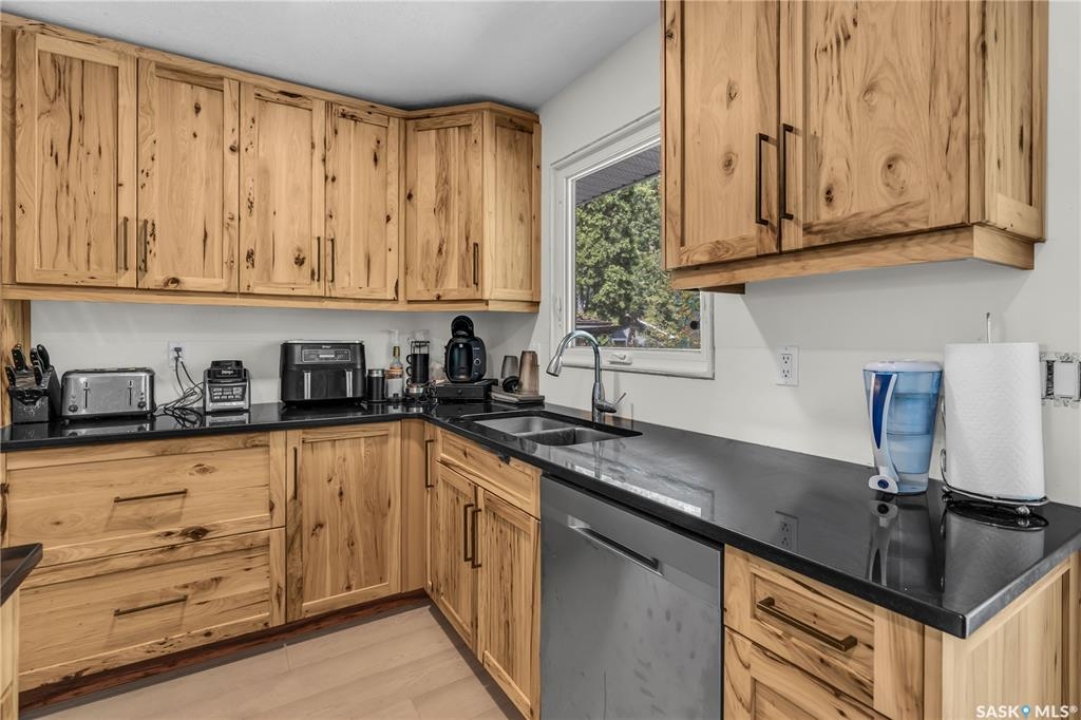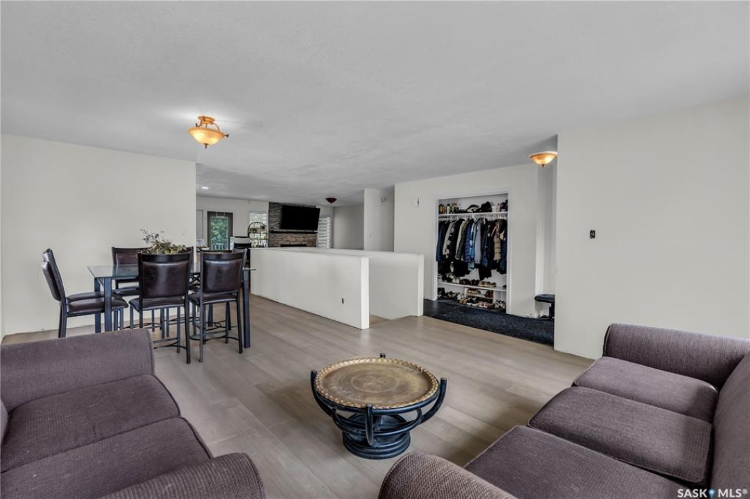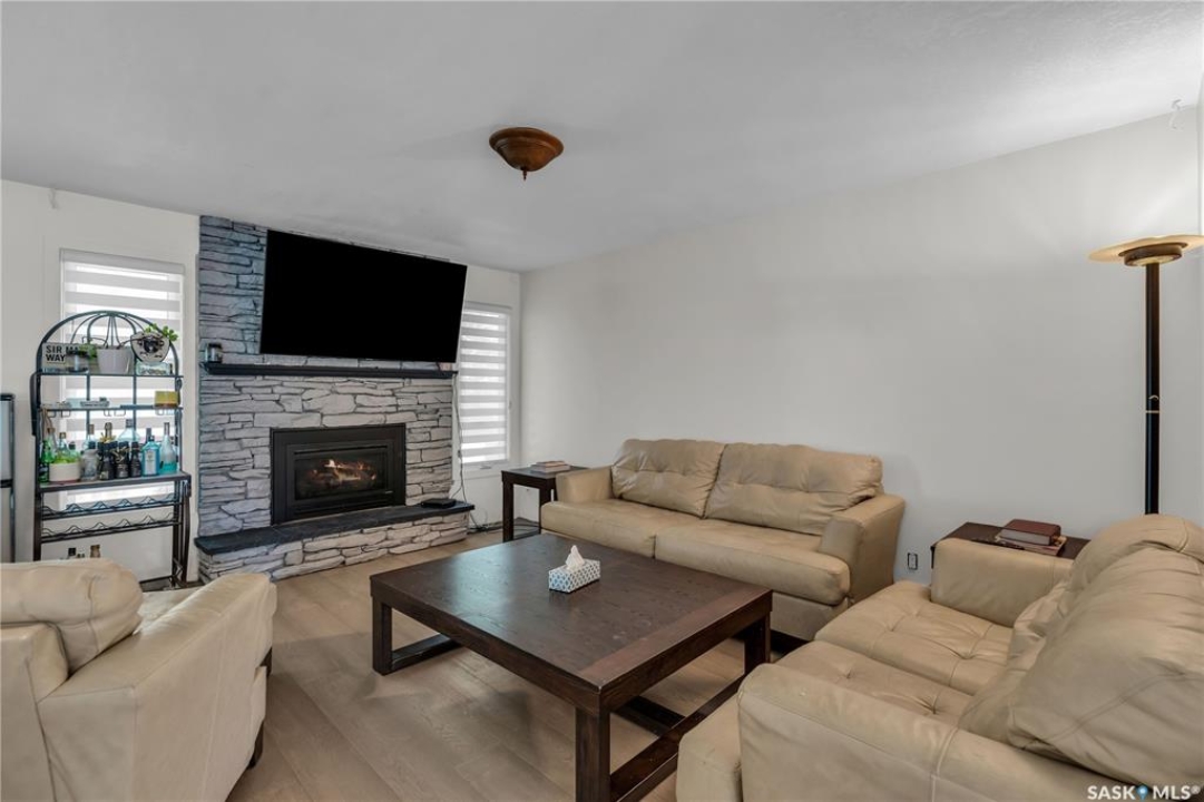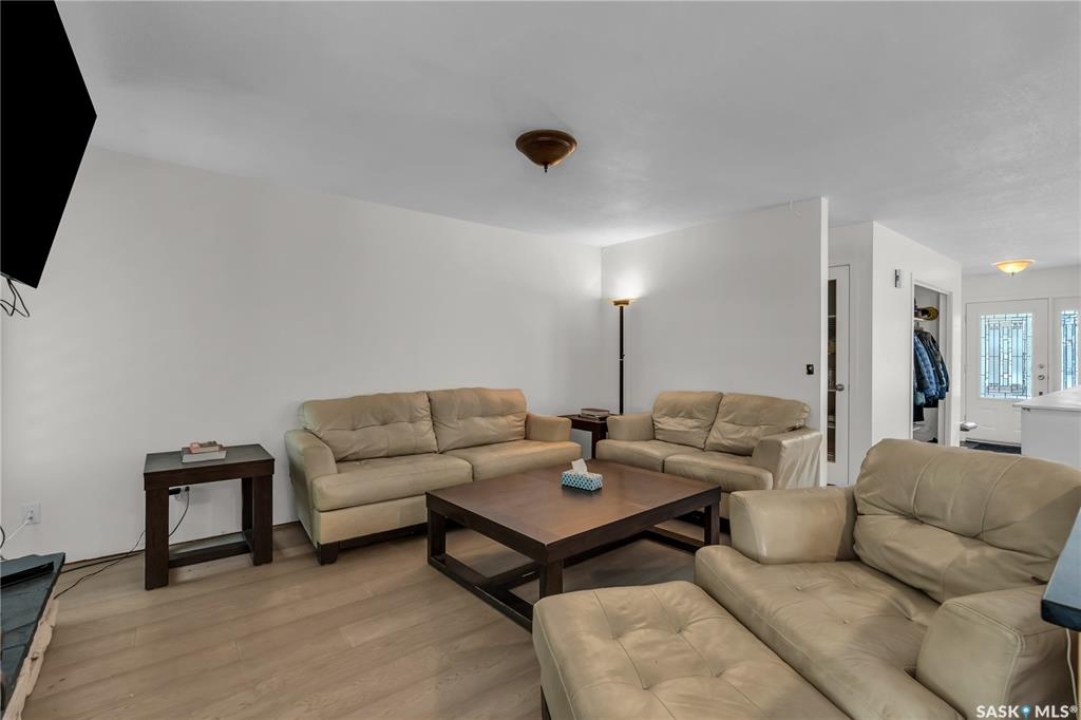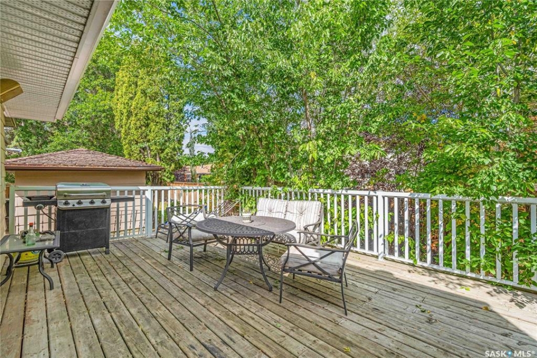 Welcome to this fantastic 1500 sq. ft. family home in highly desirable University Park, featuring many nice updates throughout. The main level is bright and inviting, boasting a very open concept layout ideal for modern family living and entertaining. Gleaming white oak hardwood floors flow throughout this space, connecting seamlessly with the beautifully updated kitchen, which serves as the heart of the home. Upstairs, you will find two spacious bedrooms and a primary suite that features a massive walk-in closet. This versatile space was originally a third bedroom and can easily be converted back, creating a functional three-bedroom-up layout if desired. The fully developed basement nearly doubles your living space, offering two additional large bedrooms, a recreation area, and a stunning, completely renovated bathroom with a custom tile shower and durable slate flooring. Enjoy the convenience of a double attached garage, complete with a 220v plug. The exterior includes a large yard and deck, ideal for enjoying our Saskatchewan summers. Situated on a quiet street, this home is just steps away from two great schools and offers quick access to all east end amenities.