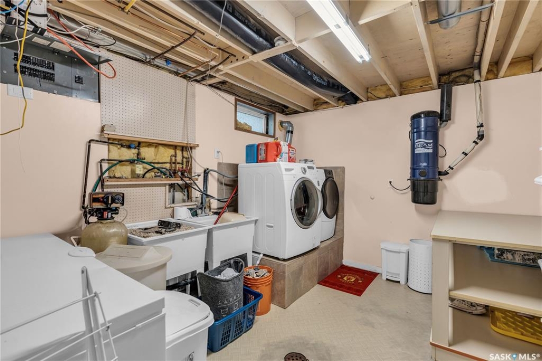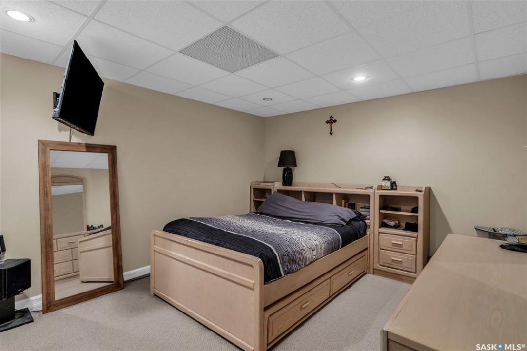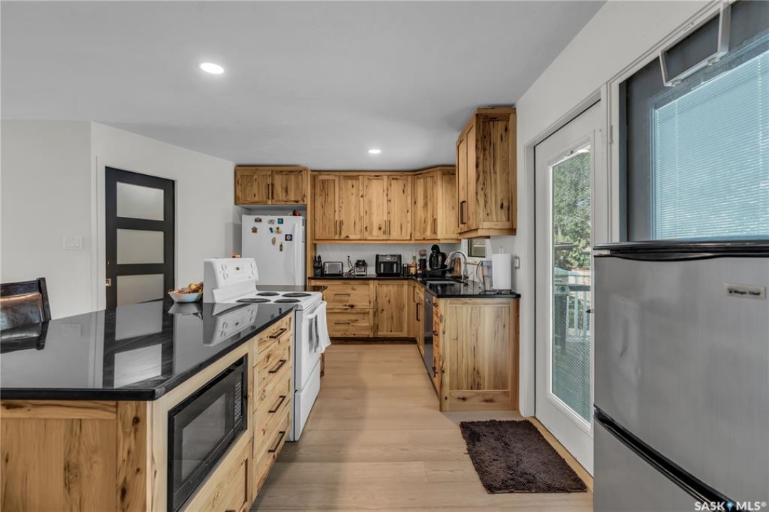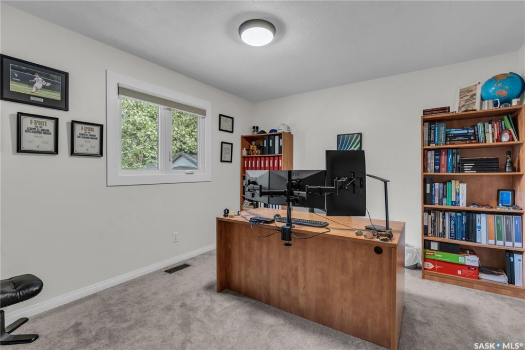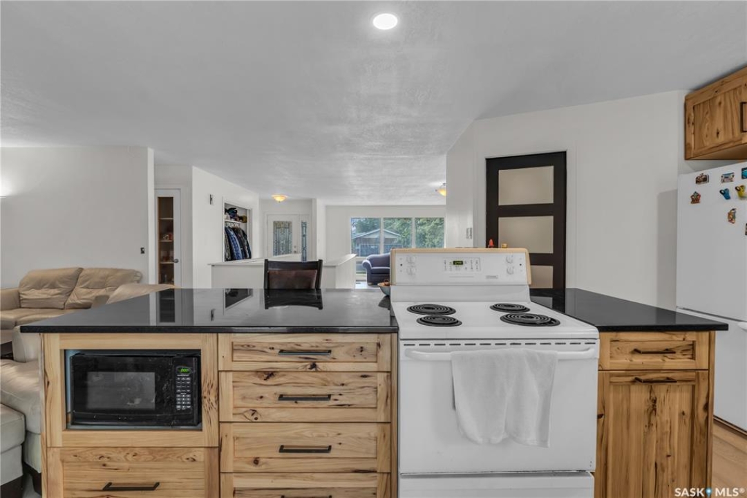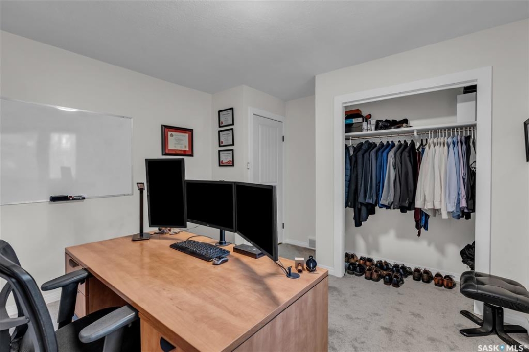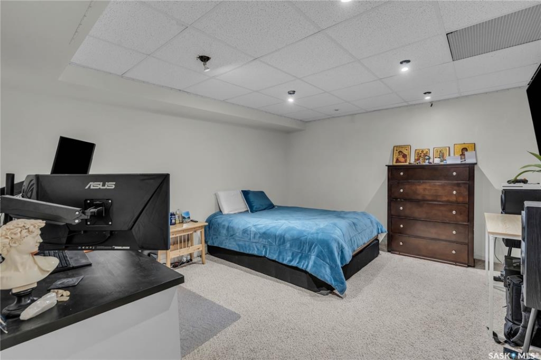 Welcome to this fantastic 1500 sq. ft. family home in highly desirable University Park, featuring many nice updates throughout. The main level is bright and inviting, boasting a very open concept layout ideal for modern family living and entertaining. Gleaming white oak hardwood floors flow throughout this space, connecting seamlessly with the beautifully updated kitchen, which serves as the heart of the home. Upstairs, you will find two spacious bedrooms and a primary suite that features a massive walk-in closet. This versatile space was originally a third bedroom and can easily be converted back, creating a functional three-bedroom-up layout if desired. The fully developed basement nearly doubles your living space, offering two additional large bedrooms, a recreation area, and a stunning, completely renovated bathroom with a custom tile shower and durable slate flooring. Enjoy the convenience of a double attached garage, complete with a 220v plug. The exterior includes a large yard and deck, ideal for enjoying our Saskatchewan summers. Situated on a quiet street, this home is just steps away from two great schools and offers quick access to all east end amenities.