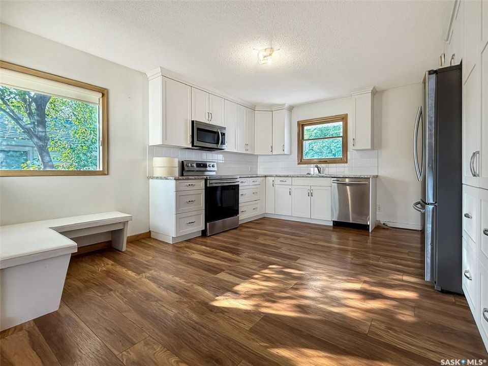 Nestled on the esteemed North Hill Drive, this property stands out in a highly coveted location. Homes here rarely enter the market, making this a unique opportunity to secure a residence that can be personalized to your liking. The property, with its southern exposure, benefits from abundant natural light throughout. Upon entry, you'll find a generously sized front living room. Adjacent to this space is a renovated kitchen, featuring sleek white cabinetry, stainless steel appliances, and a built-in dinette area. This flexible space can accommodate a dining table or be adapted to suit your dining preferences. The main level includes two large bedrooms and a spacious four-piece bathroom. Descend the stairs to discover a versatile area that can serve as an additional living space or a secondary income suite. At the base of the stairs, you'll find a utility area with shared laundry facilities, a three-piece bathroom, storage room, and a full kitchen equipped with a fridge, stove, and eating area. The lower level also features a sizeable living room with three large windows and a bedroom with two additional windows. The home is heated by a high-efficiency, forced air natural gas furnace, complemented by some baseboard heaters. It boasts two separate electric panels, facilitating independent electrical billing for the main home and potential tenant. Additional features include an air exchanger, power-vented water heater, and large windows on both levels. Outside, the property offers a single-car garage, back deck, and a large, mature backyard with ample green space, fire pit, pond and trees, all fully fenced with a spacious driveway. Enjoy the convenience of being directly across from a desirable park, skating rink, walking paths, and the river, as well as within walking distance to local schools serving kindergarten through grade 12. Call today for more infotmation!