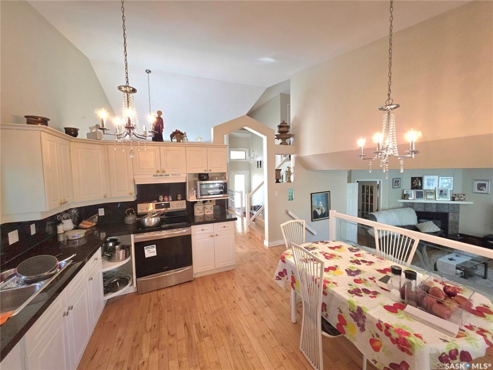 2-storey split located in Briarwood. This home features vaulted ceilings over the kitchen, dining room, and living room, as well as a large family room with a gas fireplace, a main floor den, and laundry. The large basement games room, with a vast storage area, provides ample space for your needs, ensuring a sense of security and organization—hardwood flooring throughout the main and upper levels. Enjoy the outdoors with this beautiful covered deck, featuring a newer furnace, water heater, and kitchen appliances.