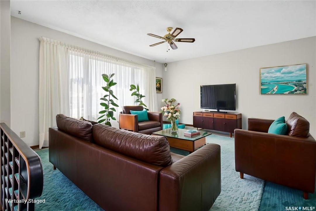 This well-cared-for 1970s bi-level has been lovingly maintained by the same owner since it was built – a rare find that truly showcases pride of ownership inside and out. Featuring updated triple-pane PVC windows, fiberglass shingles, and durable vinyl siding with aluminum soffit, fascia, and troughing, this home offers peace of mind with quality upgrades already in place. The driveway is finished with recycled rubber, adding both function and curb appeal. Step inside to a bright living room, a functional kitchen with linoleum flooring (appliances included), and a dining area that leads to the enclosed sun room for added living space perfect for entertaining or relaxing while overlooking the landscaped backyard. The main level includes two comfortable bedrooms with carpet and a four-piece bathroom featuring a Bathfitter tub, storage closet, and lino. Downstairs you'll find a spacious family room with wood wall paneling, built-in bar shelving, and an additional three-piece bathroom with a stand-up shower. A third bedroom, large laundry room with soft water system, complete the lower level. Outside, the backyard offers both green space and privacy with PVC and wood fencing. The single garage (27.5 x 18) provides room for parking plus a work area, and includes an automatic garage door opener. Additional features include: • Central air conditioning • Composite deck & covered sunroom area • Updated triple-pane PVC windows throughout • Pride of ownership – one owner since new! If you're looking for a home that has been carefully maintained and thoughtfully updated by the original owner, this property is ready to welcome its next chapter. *please not some photos are digitally staged and ultered.