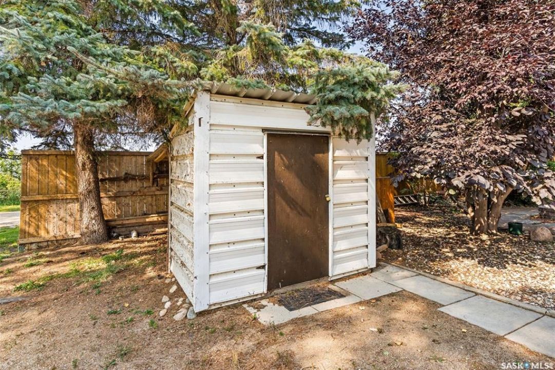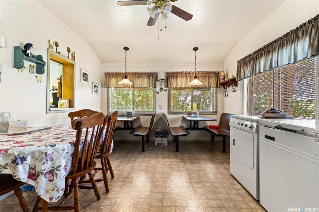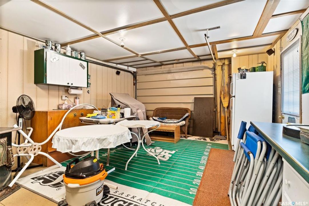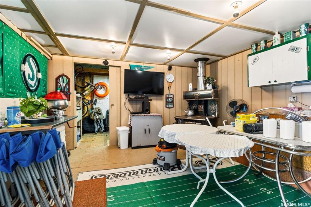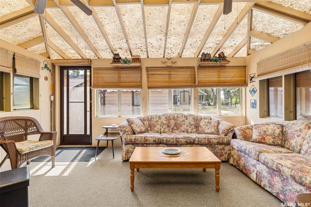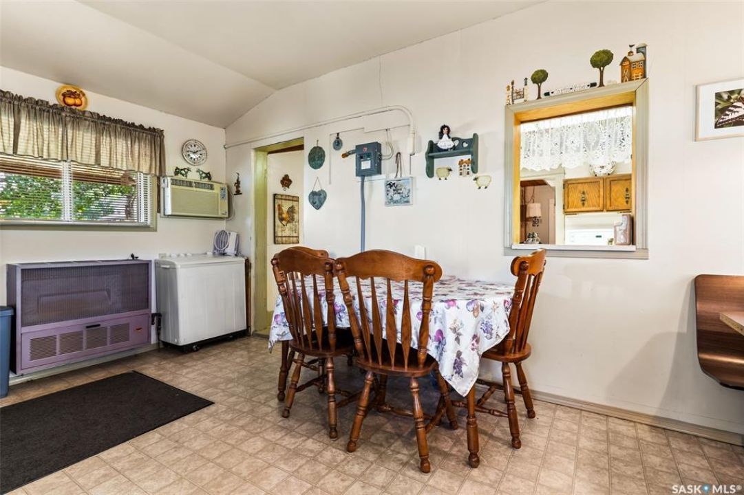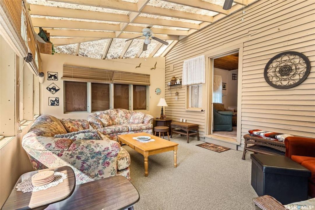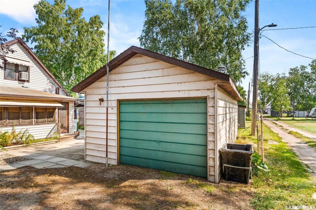 Welcome to your seasonal retreat at Etters Beach on Last Mountain Lake! Cherished by the same family for 31 wonderful years, this cottage is ready for new owners to create their own lasting lake memories. Perfectly positioned on a beautiful corner lot, the property offers privacy with mature trees and shrubs, a partially fenced yard, and thoughtfully designed outdoor spaces. Picture summer evenings around the firepit, afternoons on the patio under the power awning, or weekend gatherings in the detached garage—currently set up as a lively space for game days and entertaining. Multiple sheds provide room for wood, tools, and all your lake toys. Step inside and you'll feel instantly welcomed. The spacious dining area with built-in benches is made for family meals and card games after a day at the beach. The functional kitchen is fully equipped for everything from quick lakeside lunches to hearty family suppers. A cozy living room, main floor bedroom, den (ideal for guests), and a 3-pc bathroom ensure plenty of space for everyone. The 210 sq ft covered sunroom is a highlight—perfect for morning coffees, reading, or evening conversations. Upstairs, you'll find a generous second bedroom that easily fits two beds and makes for the ultimate kids' hangout loft. The cottage is on the community water system (May–October), has its own 600-gal septic tank, and is equipped with a propane furnace to extend your lake season into the fall. Best of all, the main beach and park are just a short walk away, so you can enjoy everything Last Mountain Lake has to offer—sun, sand, and endless fun. Offered fully furnished (yes, Weber BBQ included!), this cottage is truly turnkey and waiting for its next family to love it as much as the last. If you've been searching for a getaway on the north shore of Last Mountain Lake, this one is a must-see!