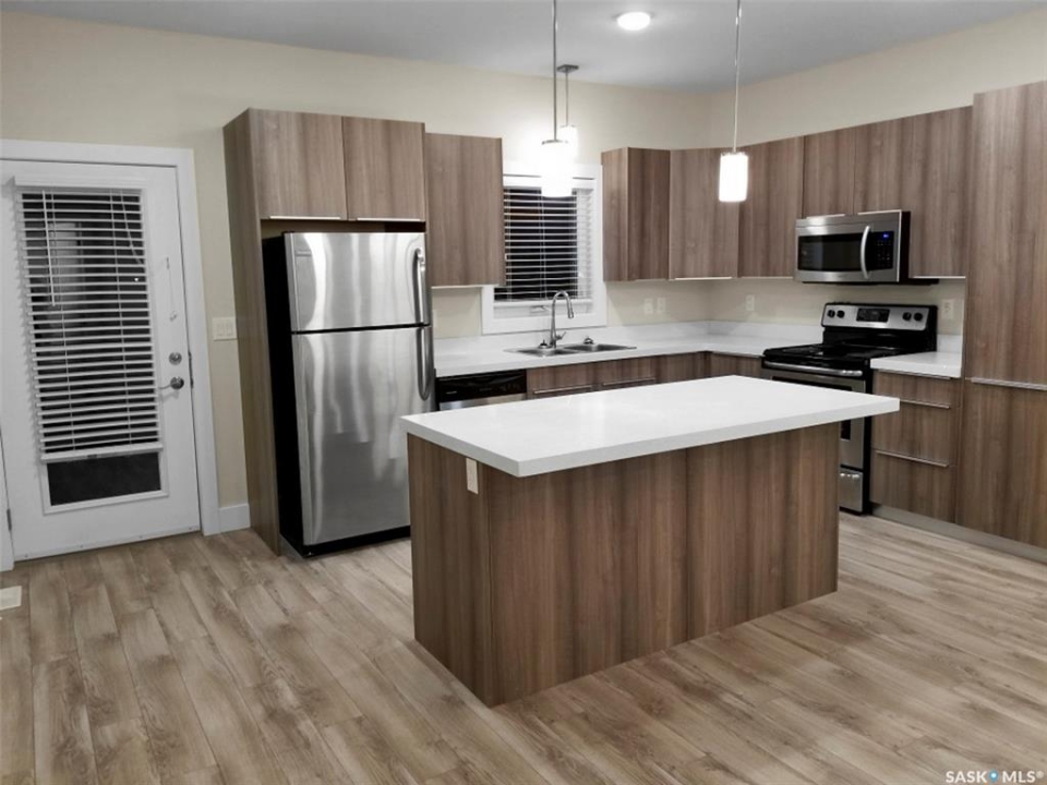 Opportunity awaits with this high-quality modern 4-plex constructed by Flatlander Construction, a builder known for craftsmanship and attention to detail. This property offers excellent cash flow with newer, hassle-free construction in the growing town of Delisle. Investors can live in one unit and let the other three pay the mortgage, all while qualifying with as little as 5% down and enjoying positive cash flow. Each unit is individually titled, giving you flexibility for the future—hold the entire building, sell units separately down the road, or even explore the seller's option to purchase half now. With a new double-lane highway and easy commutes to Saskatoon, Delisle is poised for growth, making this an attractive long-term investment. The unit mix is designed to appeal to a wide range of tenants. Upper-level homes feature three bedrooms, two bathrooms, an attached single garage with direct entry, and a large private balcony offering panoramic countryside views—partially covered so you can choose sun or shade. Lower-level units include two bedrooms and two bathrooms, with walkout access to the spacious backyard and greenspace. Inside, every unit is finished with a stylish kitchen that includes upgraded quartz countertops, ample cabinetry, and plenty of storage. High-end laminate and tile flooring flow through the main living areas, with plush carpet in the bedrooms for added comfort. Single-level living with laundry on the same floor makes each unit convenient and practical. This is just the tip of the iceberg with great schools & park nearby—reach out today to explore the full potential.