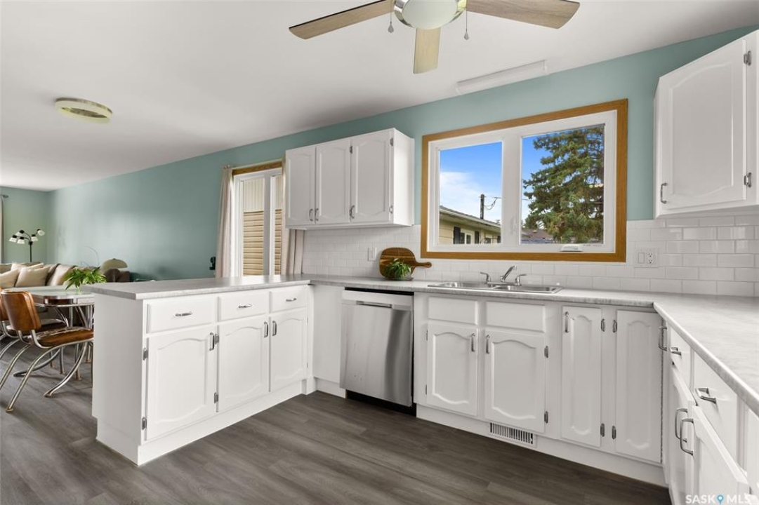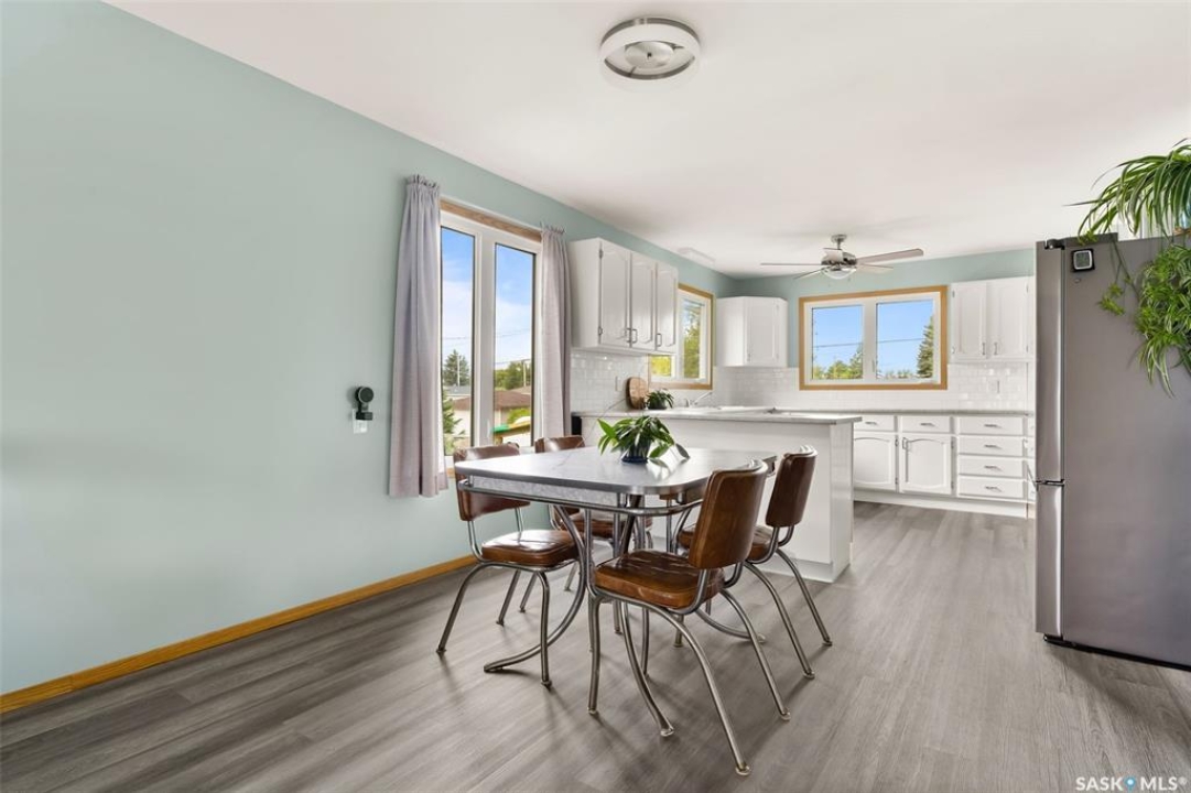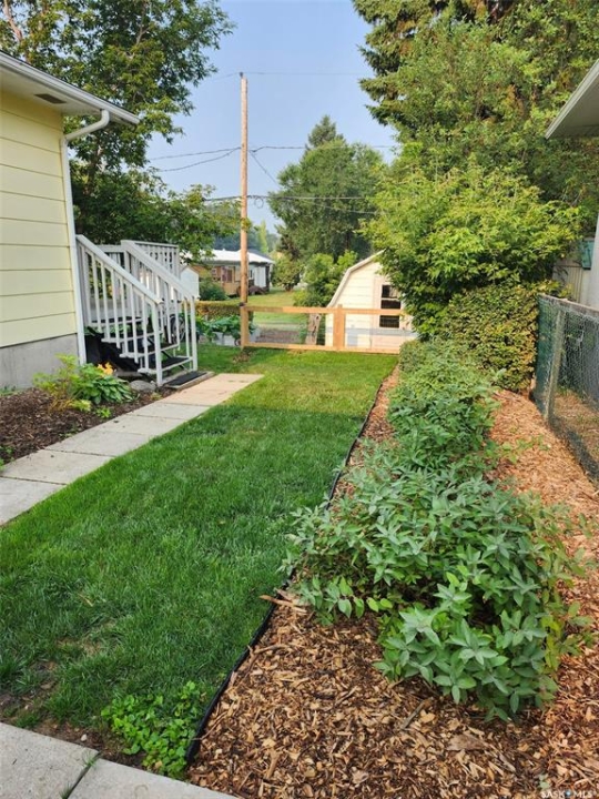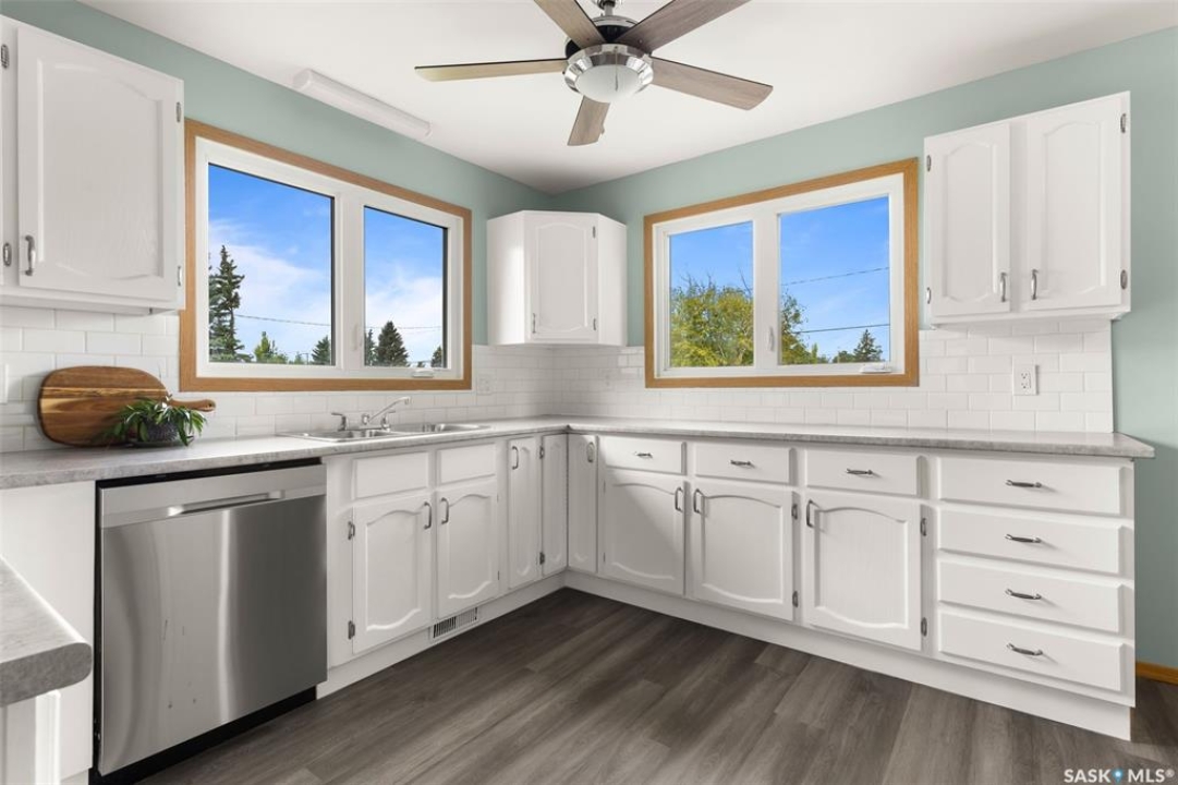 Charming curb appeal welcomes you with a front veranda complete with new vinyl deck and posts with a thoughtfully designed open-concept layout inside. Bright and airy, the main level is enhanced by upgraded PVC triple-pane windows, luxury vinyl plank flooring, and plush carpet in the two generously sized bedrooms. The refreshed white kitchen shines with newer stainless steel appliances, timeless subway tile backsplash, new countertops, hardware and a spacious pantry. The main floor 4 piece bath has been refreshed including flooring, sink, taps, tub and surround. The basement offers a functional layout with large windows that fill the space with natural light. Enjoy a spacious rec room, 2-piece bath, third bedroom, laundry area, cold room, and ample storage. Recent upgrades include a new water heater (Dec 2022), water softener (2025), and new lighting throughout the main level. Outside, the backyard is a gardener's dream with established perennials including hascap and gooseberry bushes, garden beds, a wood deck for summer entertaining, and a large shed. The property also includes a large single garage (no direct entry to the house).