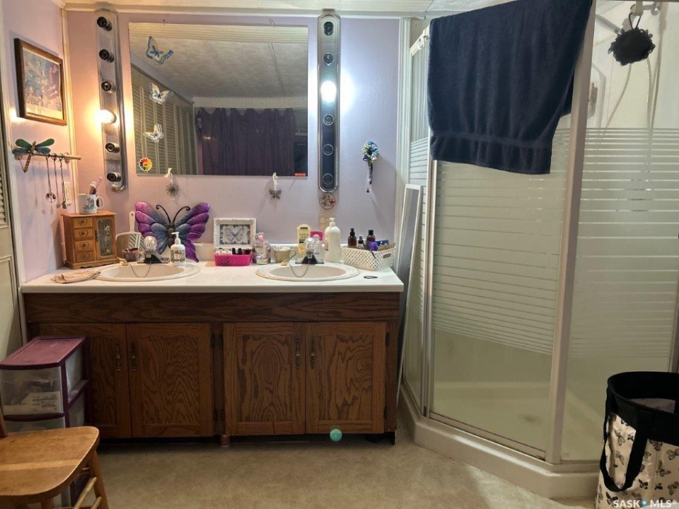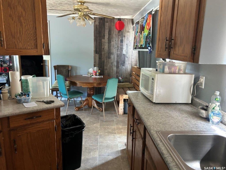 1588 sqft mobile home built in 1978 located on a 8125 sqft lot in Eatonia. Front entrance opens to a living room that opens to kitchen and dining room area. 2 bedrooms at one end of the mobile with a 4-piece bath, master bedroom has a 3-piece ensuite. Addition at the back of the mobile has a bedroom, games room and porch with storage. Features: 4 bedrooms, 2 bathrooms, good rental property with good renters. 16' x 20' deck, newer furnace, hot water tank is 1 year old and metal room. Shed is included. call to book your showing today!