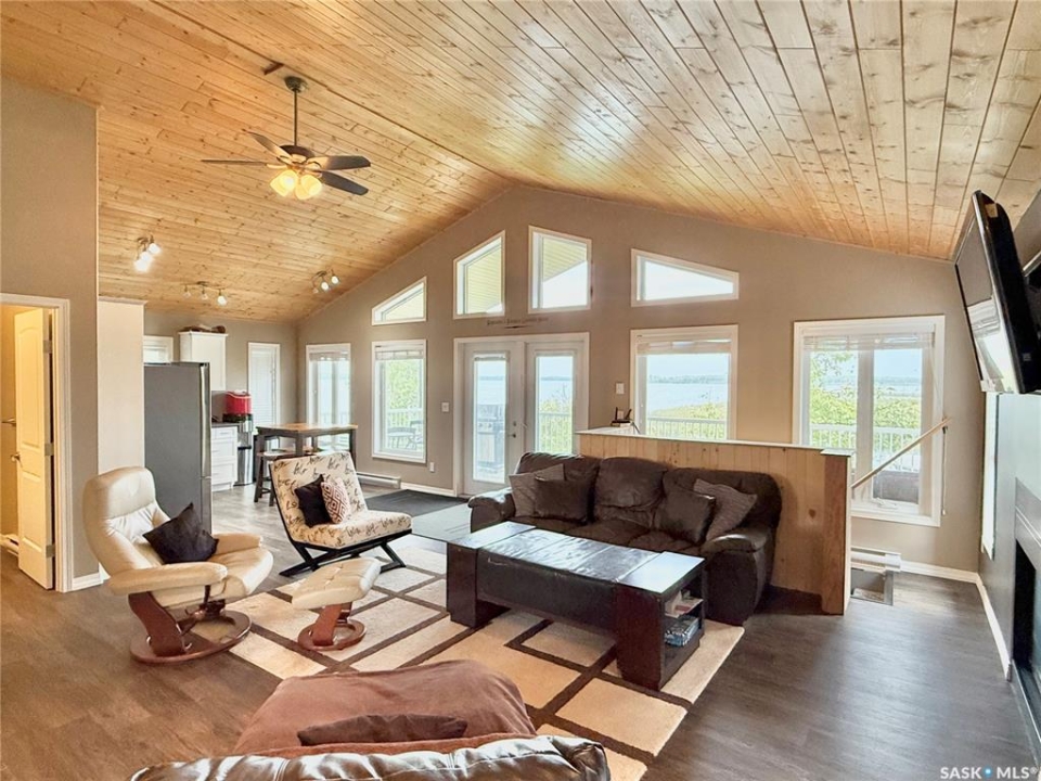 Built in 2014, this lovely 4-season lakefront cottage offers over 2,000 sq ft of living space with 6 bedrooms and 2 bathrooms, perfect for family gatherings or hosting guests. The main floor features vaulted pine ceilings, low-maintenance lino flooring, a natural gas fireplace, and an open kitchen with deck access and a natural gas BBQ. The spacious covered wrap-around deck and lower-level custom brick patio with fire pit area provide multiple spots to soak in the beautiful lake views while maintaining your privacy. The walkout basement includes 3 of the bedrooms (one unfinished), a 3pc bath/laundry, and a cozy electric fireplace. Enjoy year-round comfort with natural gas forced air heat plus electric baseboard backup. Extra items of note include a 1250-gallon fresh water tank, concrete septic holding tank, lake water intake for yard use, large shed with overhead door, and wheelchair accessibility. With a hard, sandy shoreline just steps away you can enjoy the lake to the fullest! Aspen Ridge Development is on the southwest side of Big Shell Lake—only 1 hour 20 minutes from Saskatoon—this move-in ready, furnished property is an ideal getaway for fishing, water sports, or simply relaxing at the lake. Set on a large lot - there is opportunity for you to build a garage as well. Enjoy Saskatoon Berry bushes and Chokecherries right in your front yard! Reach out for more information!