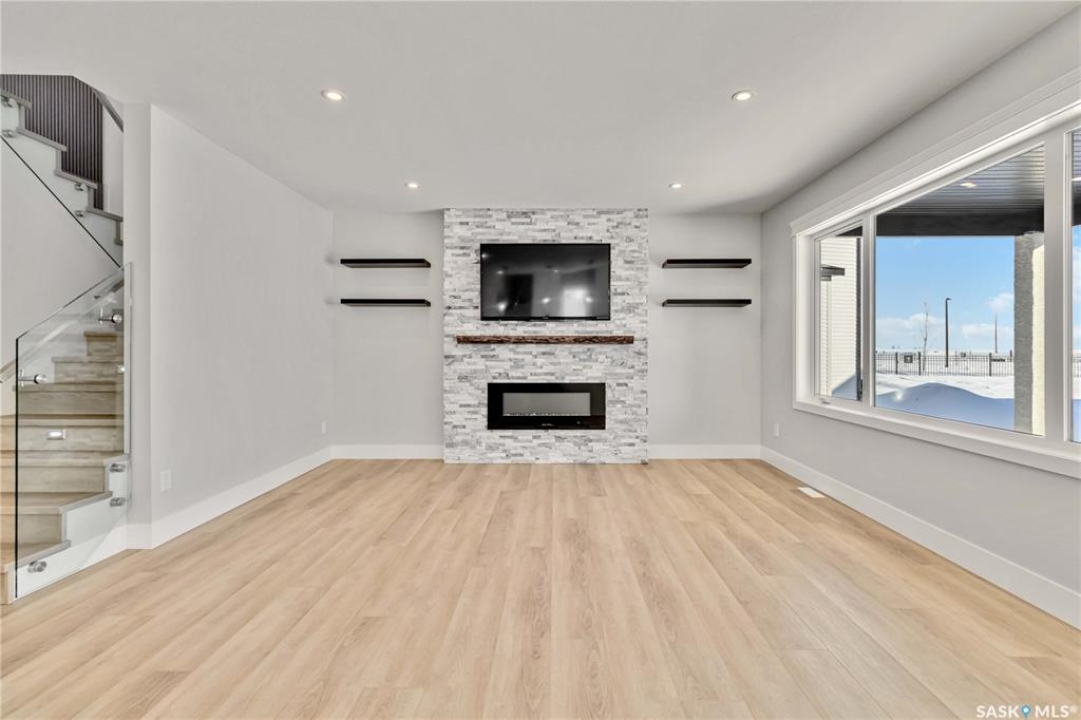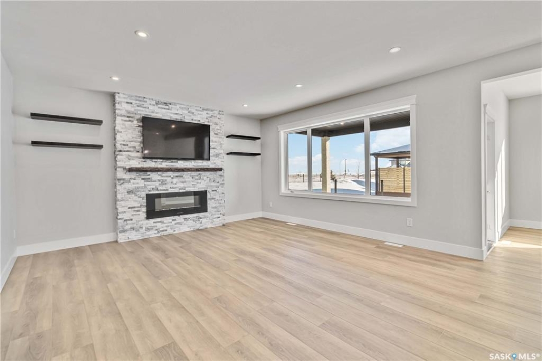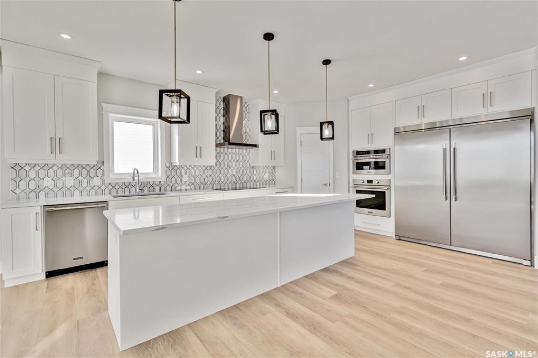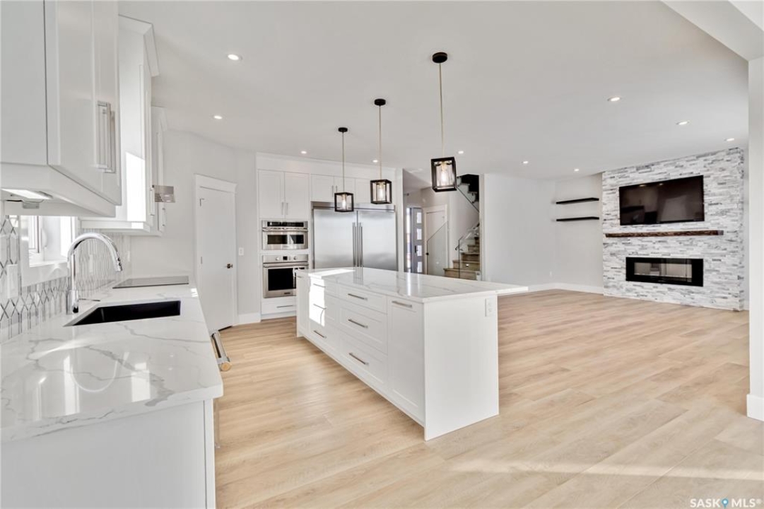 Large executive style fully developed home with views of park in Aspen Ridge. Walking up to this home you will notice the triple driveway and front landscaping to be included. Amazing bright and open two storey entrance greets you as you enter the home. Beautiful vinyl plank flooring throughout the open concept kitchen, living room with fireplace and dining room. Dream kitchen with plenty of cabinets, quartz countertops, built-in wall oven and microwave, range hood fan, and large side by side fridge / freezer. All kitchen appliances are included. The dining room leads to the deck! Open staircase leads to the second floor which includes 3 bedrooms, 4 piece bathroom, laundry room, and large bonus room. The vinyl plank continues through all bedrooms and bonus room here as well. Primary bedrooms feature a gorgeous en suite, with dual sinks, soaker tub and walk in tiled shower. Dream closet with plenty of built in shelving and storage. Fully developed basement, large family room, 4th bedroom, 4 piece bathroom and bar! This home comes complete with a 4 car attached garage and central air! Ready for immediate possession!