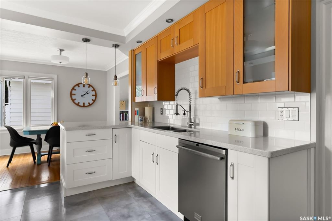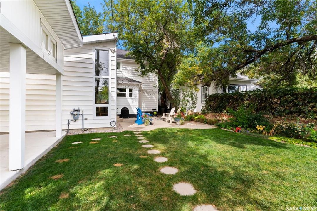 If you love the Crescents neighbourhood, this is the house for you! It is close to Wascana Park and the new pool complex, parks along Wascana creek, schools, shopping and many other amenities. This home is completely move-in ready with 3 good sized bedrooms and a bathroom with heated floors upstairs, a guest bathroom on the main and a modern kitchen with gas range, quartz & butcher block countertops, soft-close drawers & doors and stainless steel appliances. The 1976 addition at the back of the home features a large living space, vaulted ceiling, gas fireplace and expansive windows. A well-designed carport with extensive storage complements the mature, landscaped, fully-fenced backyard. Other value-added features include: new sewer line and mainline back-flow valve under the house (2024), new furnace (2023), new washer & dryer (2023), newer windows, sump pump, aluminum soffits, eaves with gutter guards. Wonderful family home in a fantastic location!
