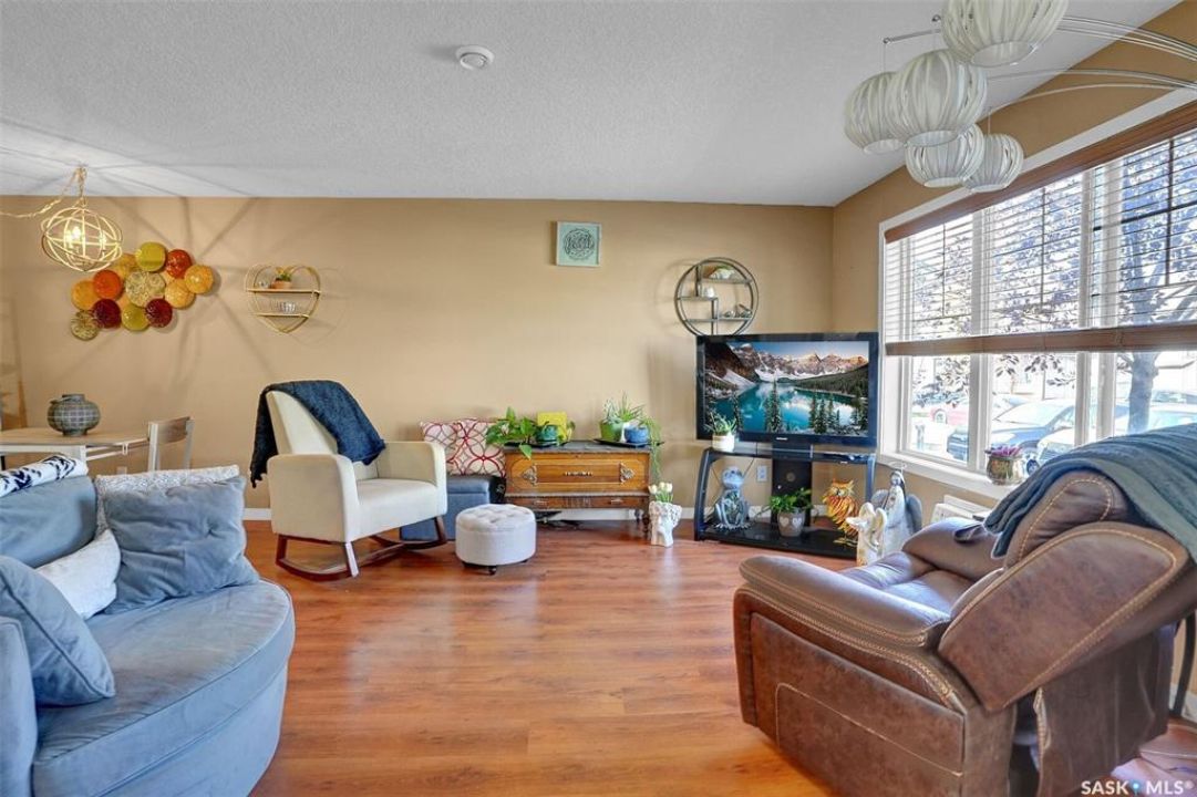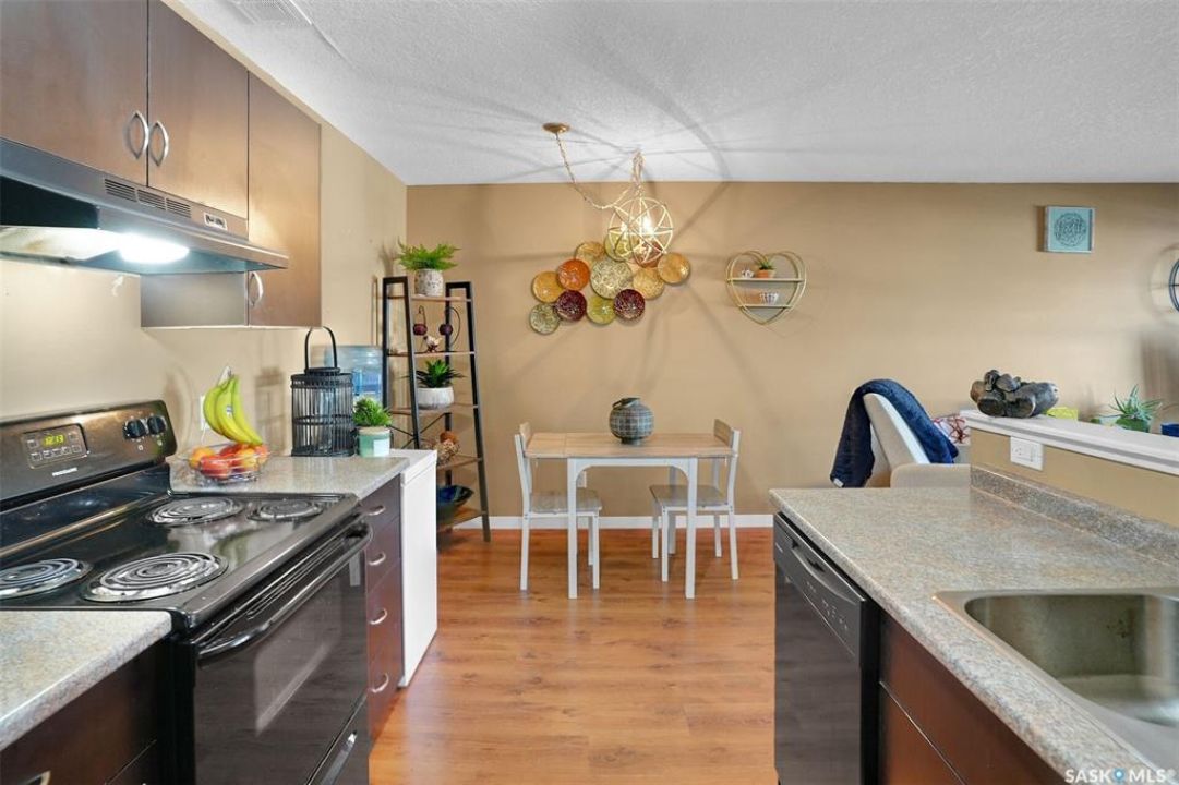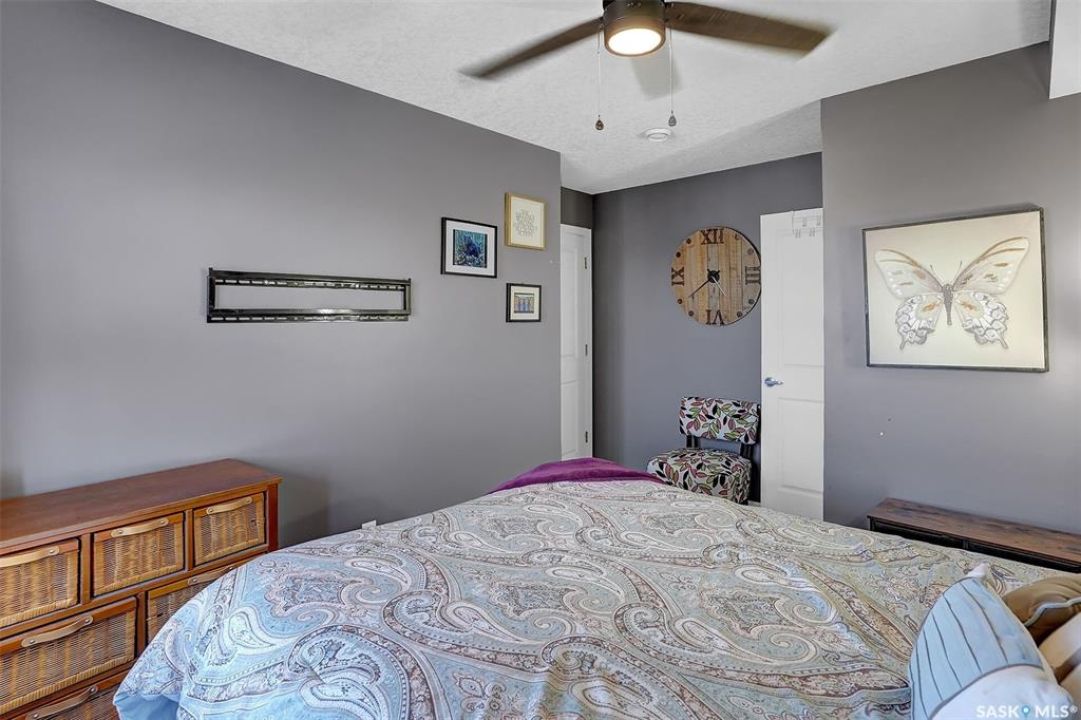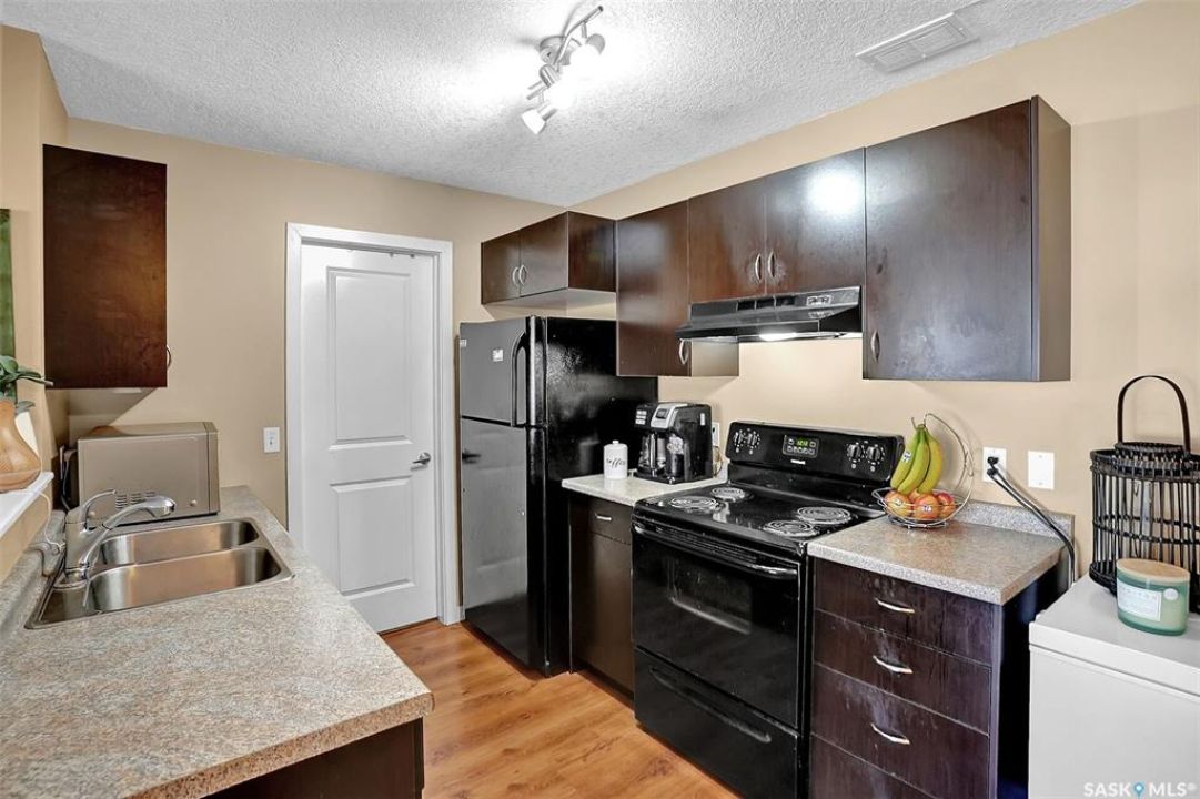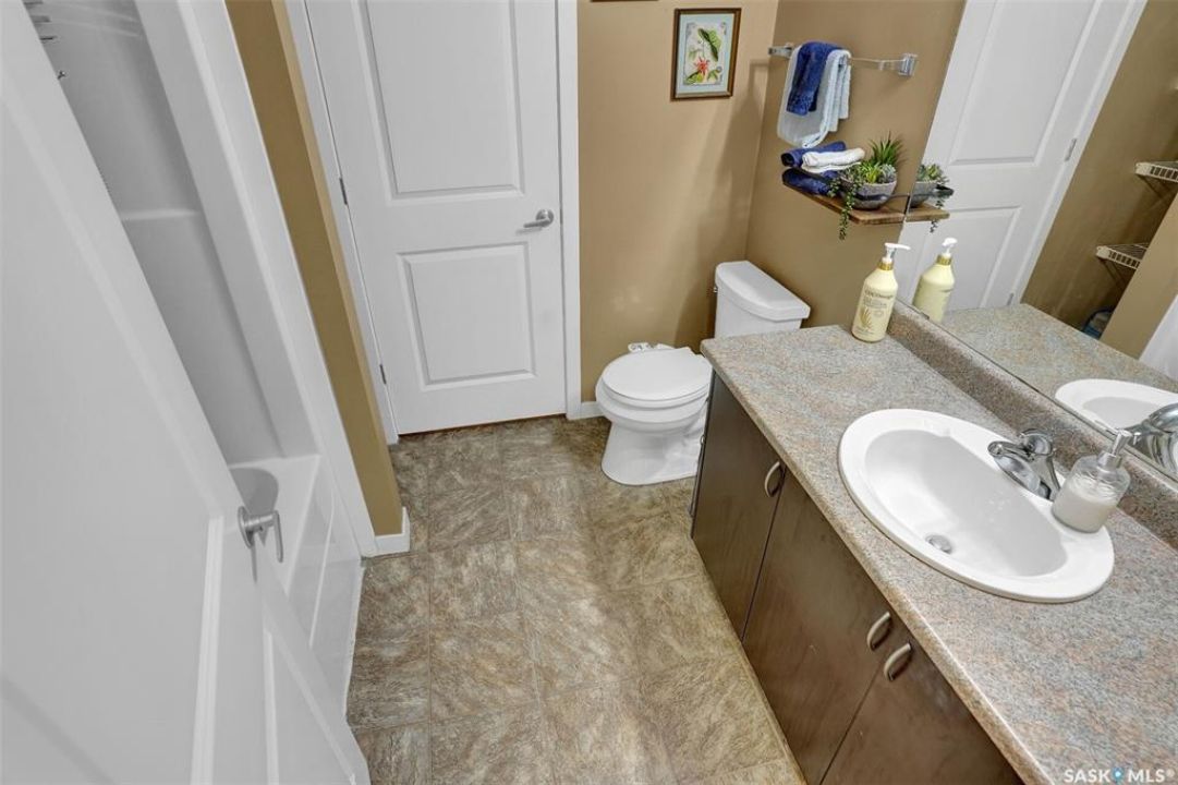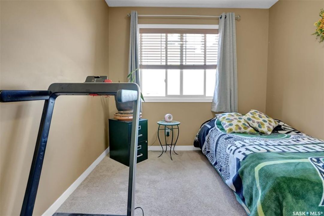 Welcome to this 904 sq ft two-storey condo located in Regina's sought-after Harbour Landing neighbourhood. This home offers both convenience and functionality with one electrified parking stall right in front of the unit, plus a single detached garage directly across for additional parking or storage. The main level features an open-concept layout with a bright living room highlighted by a large window for natural light, a dining area, and a well-appointed kitchen with a spacious pantry/storage area. Upstairs you'll find two generously sized bedrooms, a 4-piece bathroom, and convenient laundry tucked just off the bathroom. The primary bedroom includes a walk-in closet, while the bathroom is finished with built-in shelving for linens. This condo is a fantastic option for first-time buyers, young professionals, those looking to downsize or anyone seeking a low-maintenance lifestyle in a great location, close to all amenities.