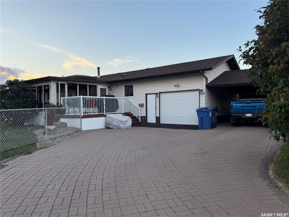 Welcome to 5 Quebec Drive in Melville, SK – a place that feels like home the moment you step in. This 1,221 sq ft bungalow has 3 bedrooms on the main floor and a fantastic south-facing 3-season sunroom where you'll want to spend all your mornings with coffee or evenings unwinding. The yard is fully fenced, has space for a garden, and there's even a deck that's perfect for BBQs, smokers, or just kicking back. Inside, you'll find a sunken living room, updated PVC windows, a bright kitchen with a handy pantry cupboard, and all the appliances you need – fridge, stove, built-in dishwasher, microwave range hood, plus a 3-year-old washer and dryer set. Main floor laundry makes life simple, and the primary bedroom comes with a convenient 2-piece bath that connects right through to the laundry area. The main bath is a full 4-piece. The fully finished basement is ready for entertaining or relaxing with a family room, cozy gas fireplace, a beverage nook, 3-piece bathroom with a shower, office space, and two bonus rooms – currently set up as a bedroom and an art studio – plus plenty of storage. You'll appreciate the attached single car garage (with a recycled rubber floor), extra carport, and paving stone driveway. Central air and central vac are already in place, making day-to-day living that much easier. And don't worry about the wallpaper project in one of the bedrooms – the Seller is already on it and will have it removed before you move in.