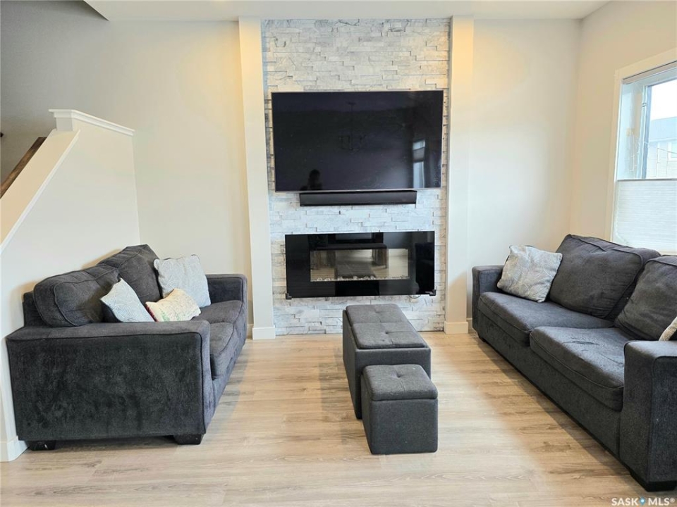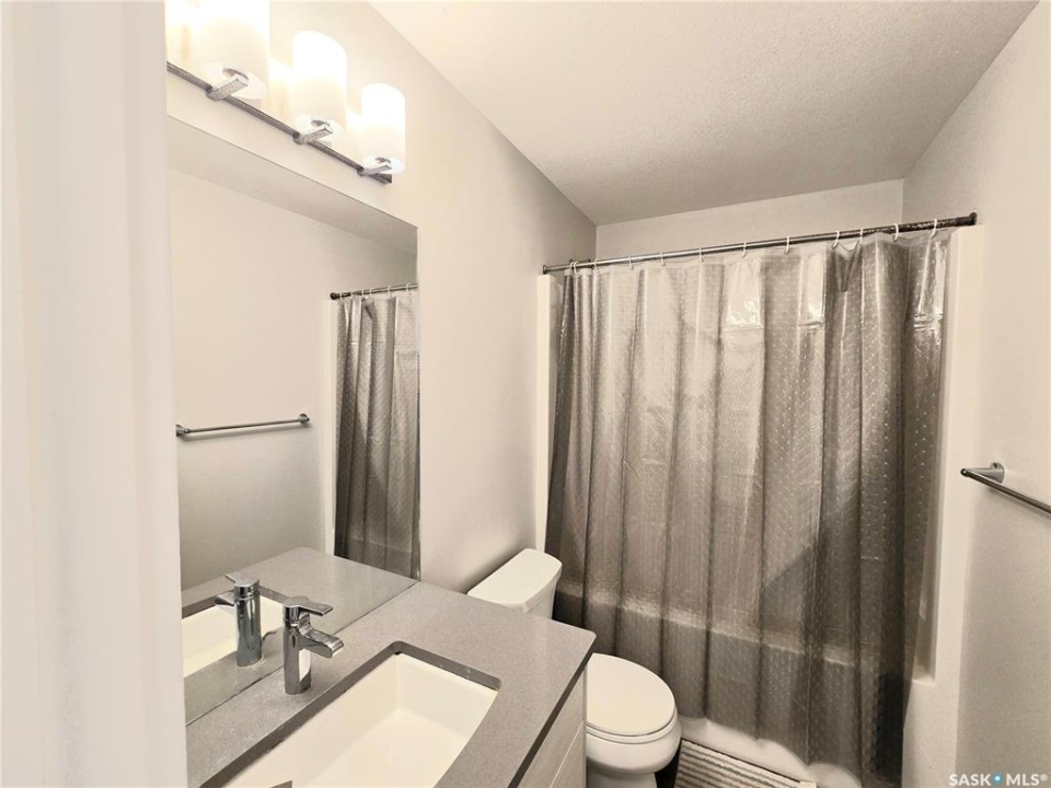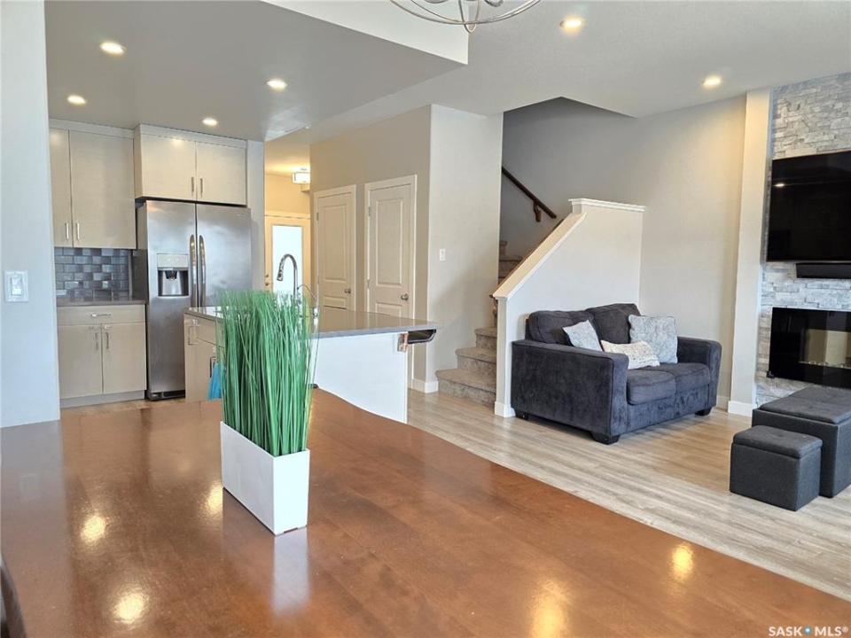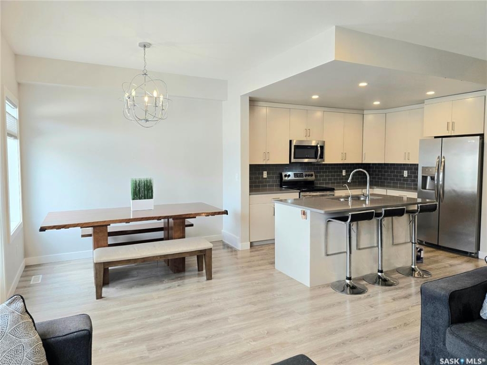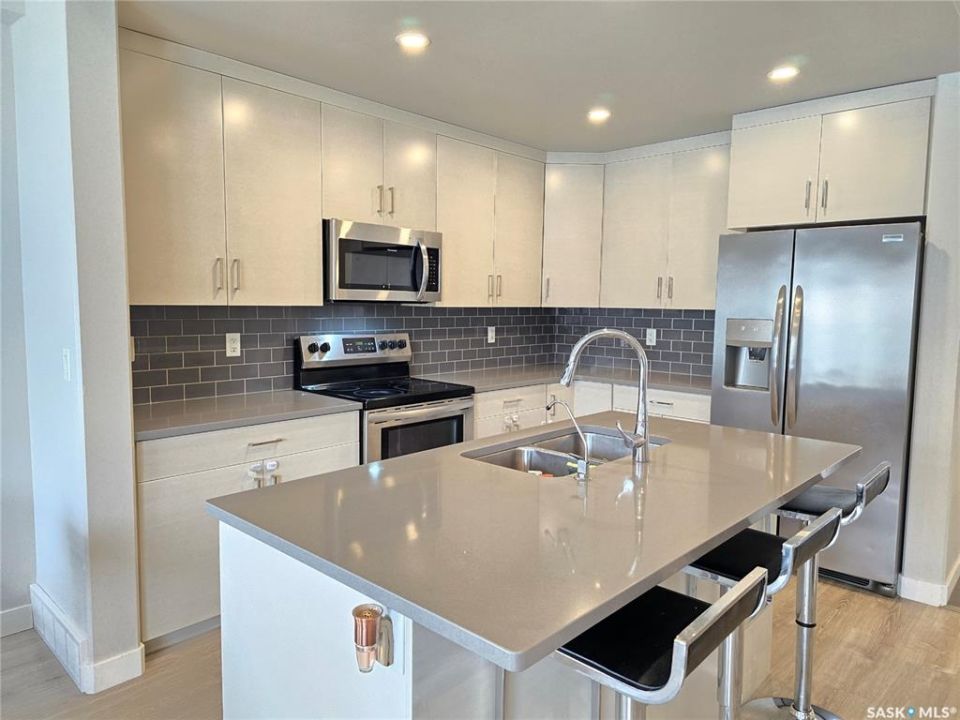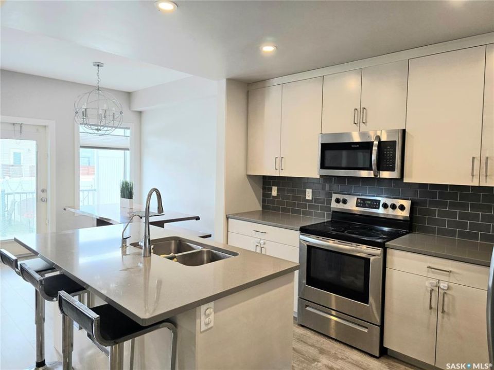 Brighton Townhome – Modern Living in Saskatoon's Newest Community (BRIGHTON) Welcome to this beautifully designed townhome located in the vibrant neighborhood of Brighton. Offering 1,388 sq. ft. of thoughtfully planned living space, this home features four bedrooms and four bathrooms with a spacious and open floor plan that blends style and functionality. The main floor showcases a bright and modern kitchen complete with quartz countertops, custom cabinetry, built-in dishwasher, OTR microwave, and a large sit-up island. The open-concept design flows seamlessly into the dining and living areas, with direct access to a private fenced backyard, landscaped and complete with a back deck for outdoor enjoyment. Upstairs, you will find three comfortable bedrooms, including a master retreat with a four-piece en-suite and walk-in closet. Second-floor laundry adds convenience to daily living. The fully finished basement provides additional space with a bedroom, a three-piece bathroom, and a versatile den suitable for guests, a home office, or family needs. The property also includes a single attached garage, a mix of modern exterior finishes, fully fenced south-backing yards, and landscaped grounds. Located within a short walk to Brighton's Core Park, festival sites, playgrounds, amphitheatre, and Market Square, you'll have easy access to coffee shops, dining, and shopping. This townhome offers the perfect balance of modern design, convenience, and location—an excellent opportunity for families, first-time buyers, or investors.