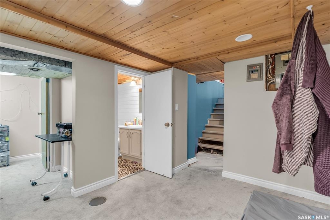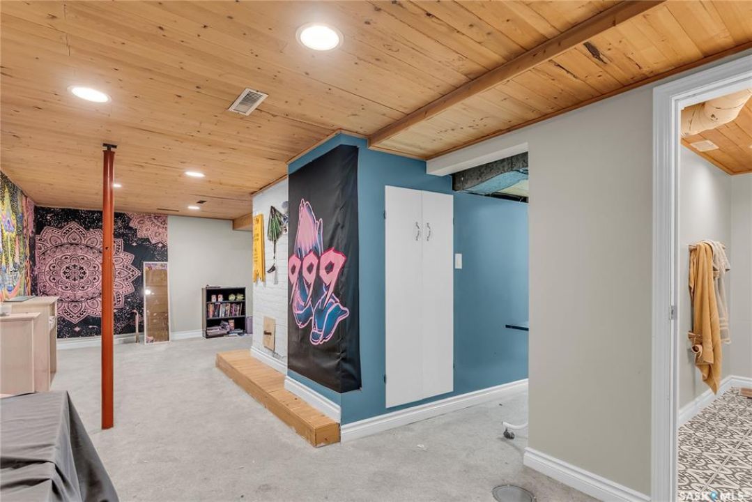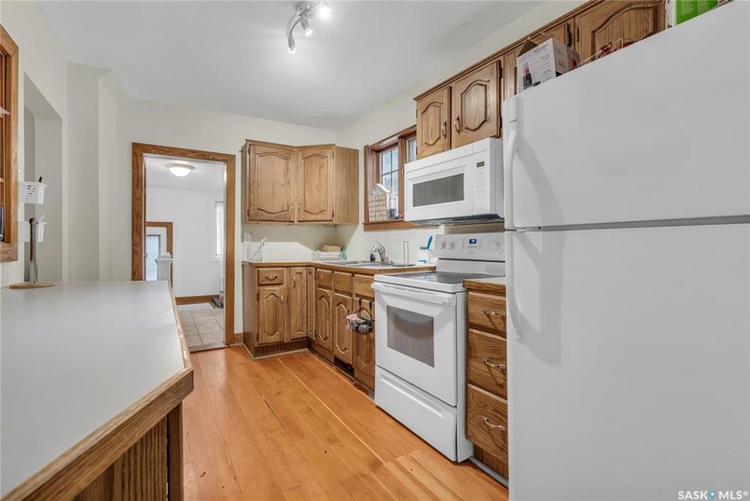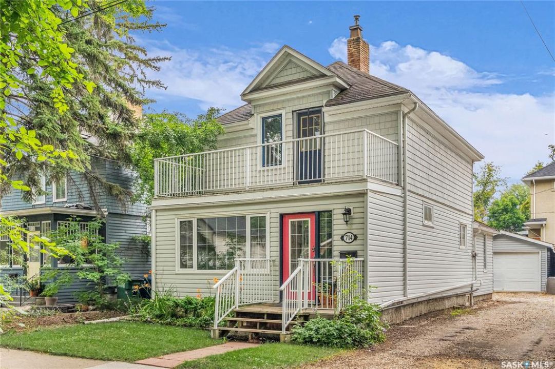 Welcome to 714 King St in desirable City Park! This charming 2-bedroom + den (could be used as a small bedroom) , 2-bath, 2-storey character home sits on a unique lot with a detached garage and a lovely backyard. The main floor features a bright kitchen, formal dining with deck access, spacious living room, and front sitting room. Upstairs offers a large primary, one additional bedroom & den, a clawfoot tub, and access to a fantastic front balcony. The basement includes a large family room, storage. With a front and rear mudroom, laundry, this home is both functional and full of character—perfectly located near City Hospital and downtown amenities.