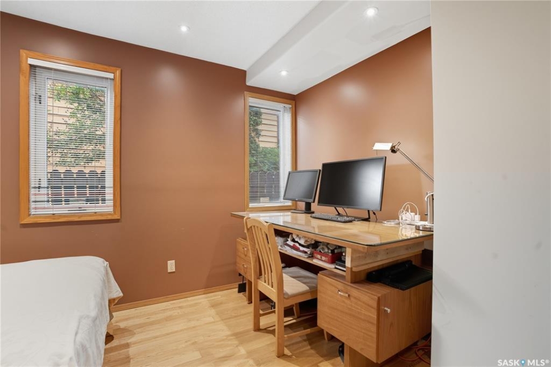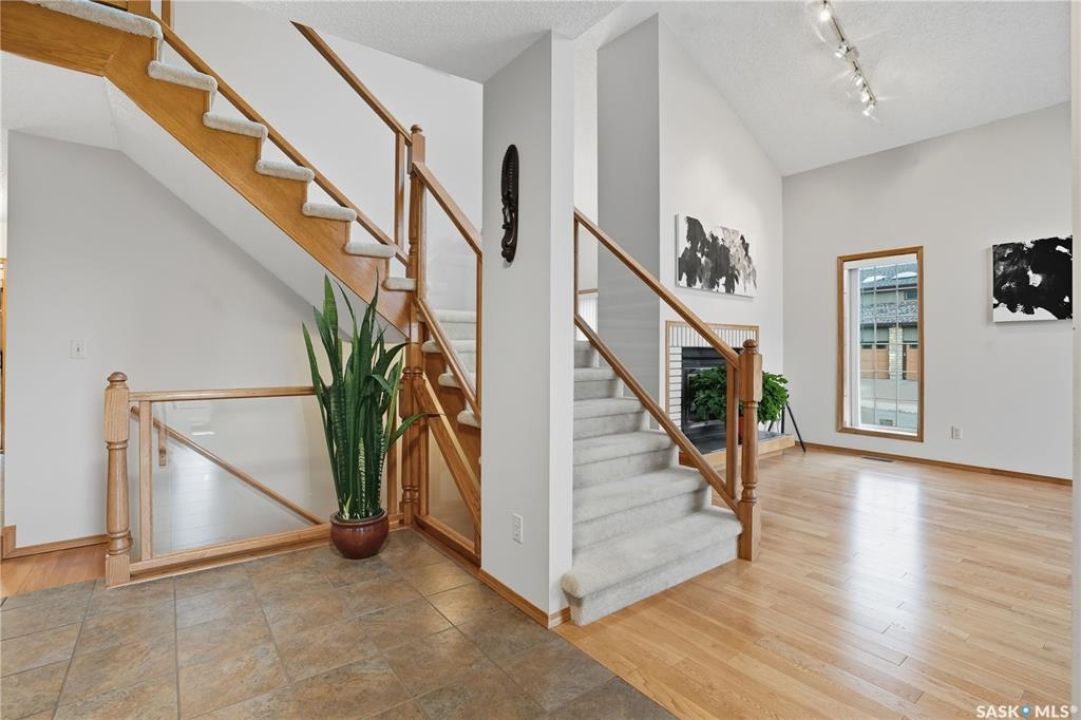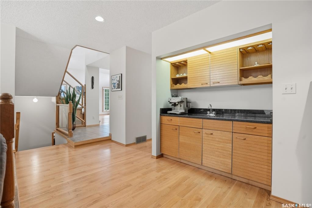Location, Location, Location! This stunning 2,360 sq. ft. custom-built 2-storey split offers an unbeatable location—just steps away from the lake, park, elementary schools, 8th Street shopping, and Lakewood Civic Center. Homes like this rarely come to market, and it's easy to see why the same proud owner has lovingly cared for it for over 20 years. From the moment you walk in, you'll notice the pride of ownership and exceptional attention to detail. The main floor showcases a welcoming living room with soaring cathedral ceilings, a spacious family room with a wood-burning fireplace, a formal dining room, and a beautiful oak European kitchen with granite countertops, built-in oven, and JennAir cooktop with integrated ventilation. An adjoining eating nook opens to the deck, perfect for indoor-outdoor living. A main floor den/office and a convenient 2-piece powder room complete the level. Upstairs, the primary suite is a true retreat, featuring a private deck, walk-in closet, and spa-like ensuite. Two oversized bedrooms share a 4-piece bath, with the added convenience of an upstairs laundry room. The fully developed basement offers even more space to enjoy, including a large great room, games room, an additional bedroom, and a unique separate Jacuzzi room with its own 3-piece bath—a rare and luxurious feature. This home has 3+1 bedrooms plus den, 4 bathrooms, and 3 fireplaces, blending comfort with elegance. Other highlights include hardwood and tile flooring throughout the main, PVC windows, 2x8 exterior walls for superior insulation, sump pump, central air, central vac, cedar shake roof, underground sprinklers in front and back, and an oversized 28x22 double attached garage. Recent upgrades add even more value, including granite countertops, a new deck (2021), and a brand-new high-efficiency furnace (2025). With its unbeatable location, extensive features, and thoughtful upgrades, this home is the perfect blend of timeless design and modern comfort.
