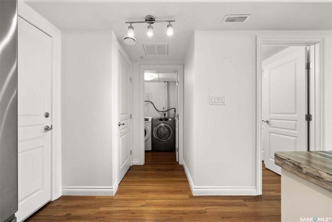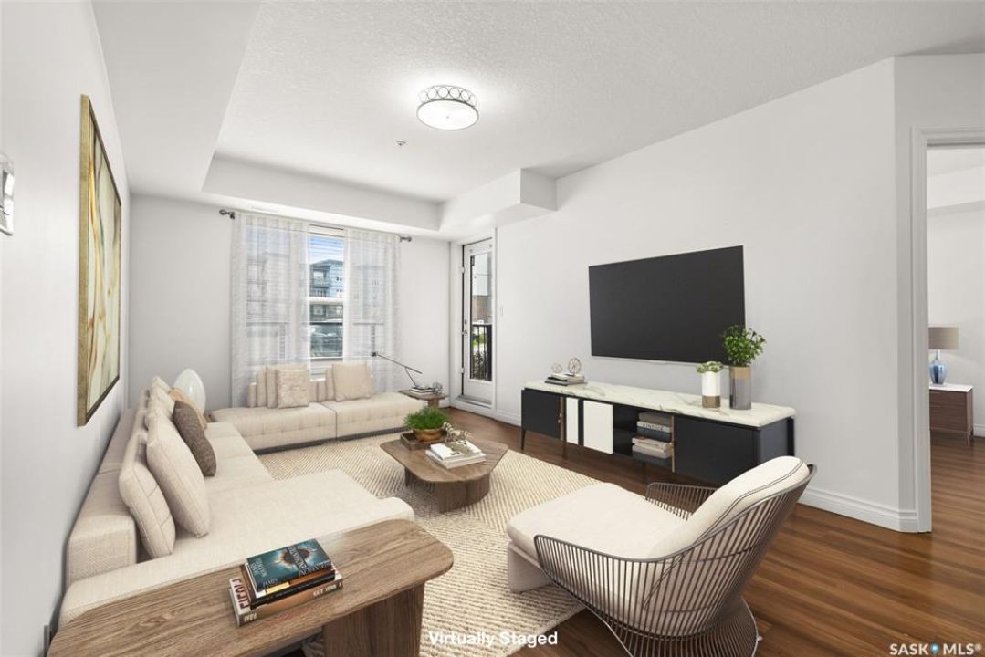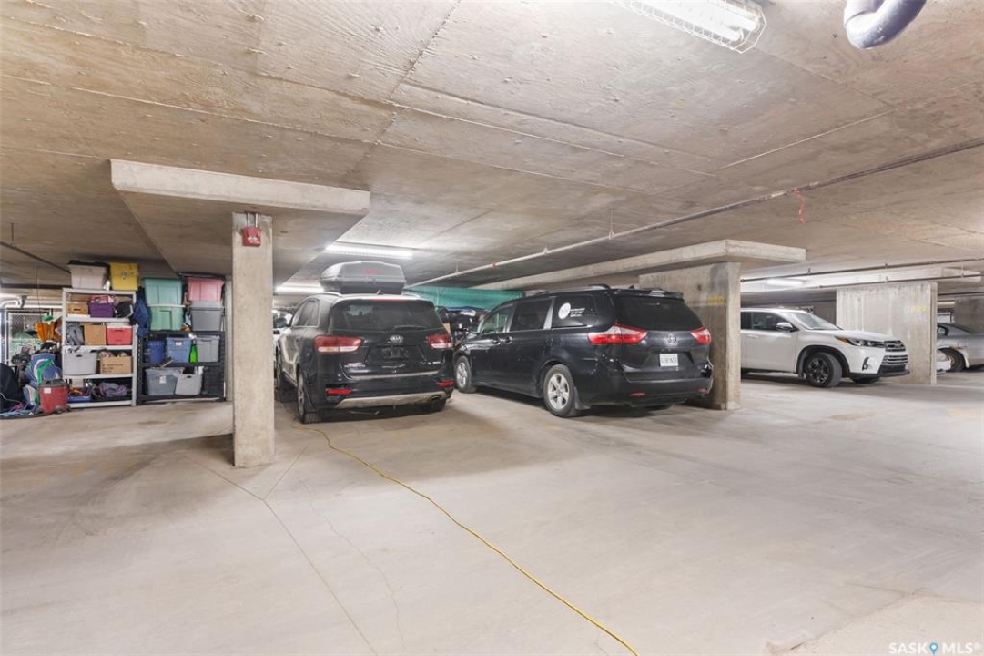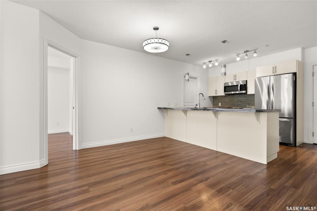 Welcome to Fontaine Bleu, where style meets convenience in the heart of Harbour Landing. This vibrant community brings a touch of Miami flair to Regina with amenities designed for modern living—dog wash station, car wash, bike storage, fitness centre, and a stylish amenities room for gatherings. Inside, this bright, open-concept condo is instantly inviting with paint so fresh it looks brand new. The kitchen is a showstopper with sleek stainless steel appliances, an island with seating, and a walk-in pantry large enough for your small appliances—and even a deep freeze. Whether you're hosting friends or enjoying a quiet evening in, the living and dining areas offer the perfect canvas to create your ideal space. The primary suite feels like a private retreat, featuring a walk-thru closet and a 4-piece ensuite with space for a makeup vanity. A second bedroom also boasts a walk-thru closet and private access to the main bathroom, making it perfect for guests or a home office. For added convenience, you'll find an in-suite laundry room. Luxury vinyl plank flooring runs throughout—stylish, durable, and pet-friendly. Step out to your private patio to soak up the summer sun or nurture a garden of potted blooms. This unit also includes TWO underground parking stalls (#219 & #220)—a rare and valuable find. With Harbour Landing's walking paths, parks, and the Grasslands shops and restaurants just steps away, you'll love the lifestyle as much as the home itself. Condo fees cover heat, water, sewer, building insurance, maintenance, lawn care, snow removal, and reserve fund contributions, so you can enjoy peace of mind and hassle-free living. Move-in ready, pet-friendly, and packed with extras—this Fontaine Bleu condo is the perfect blend of comfort, convenience, and community.