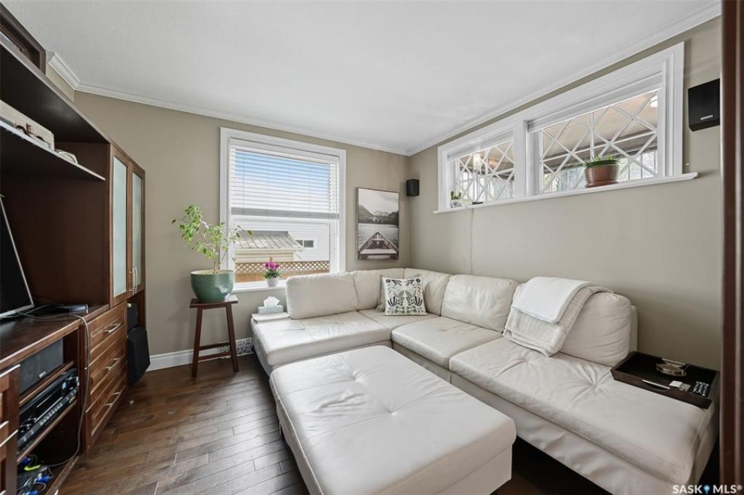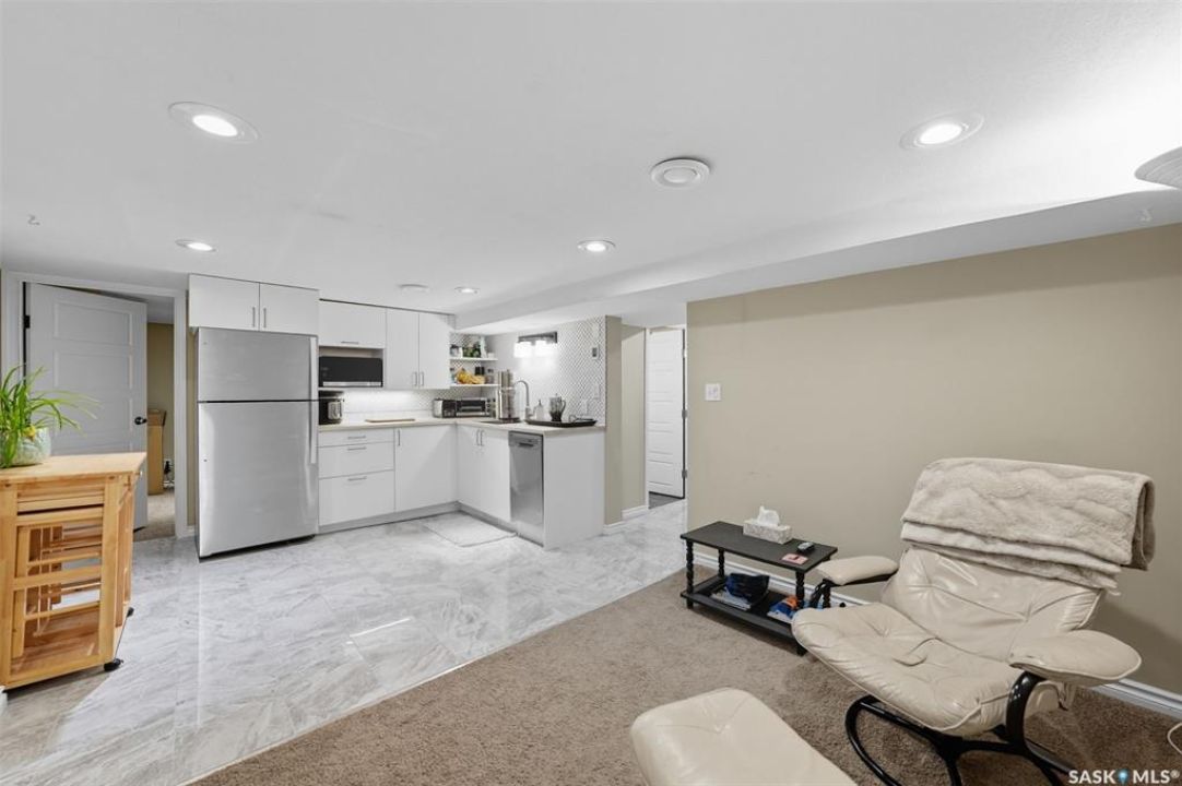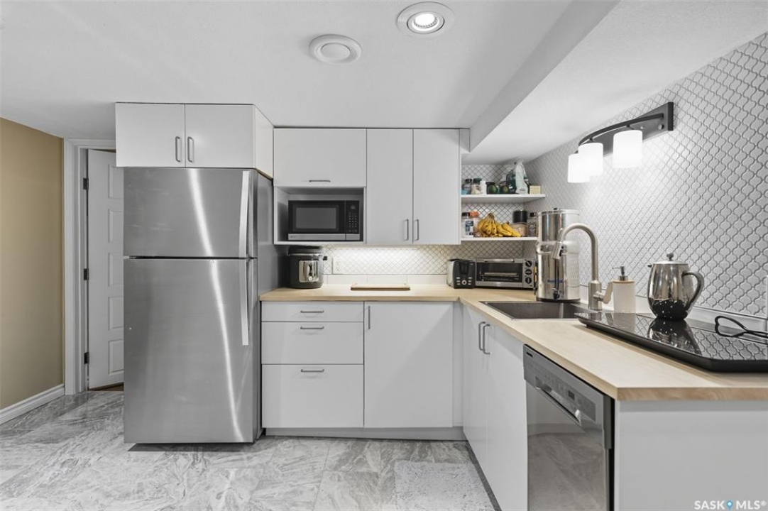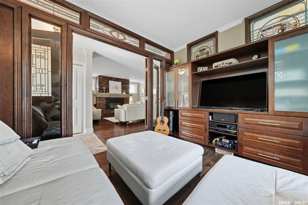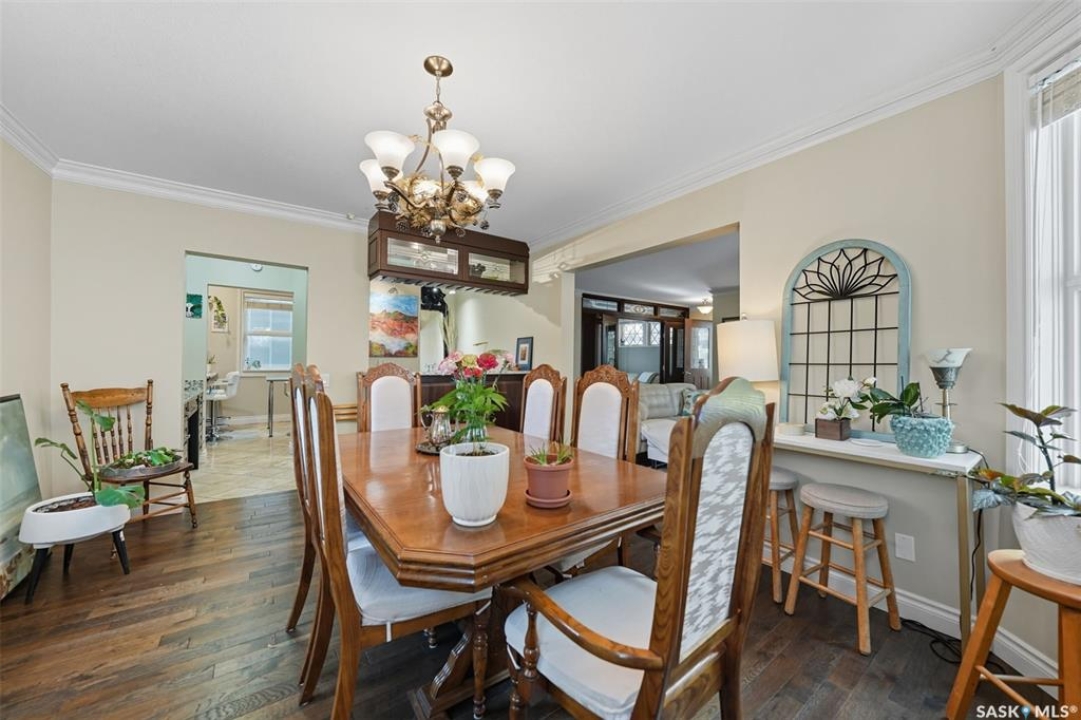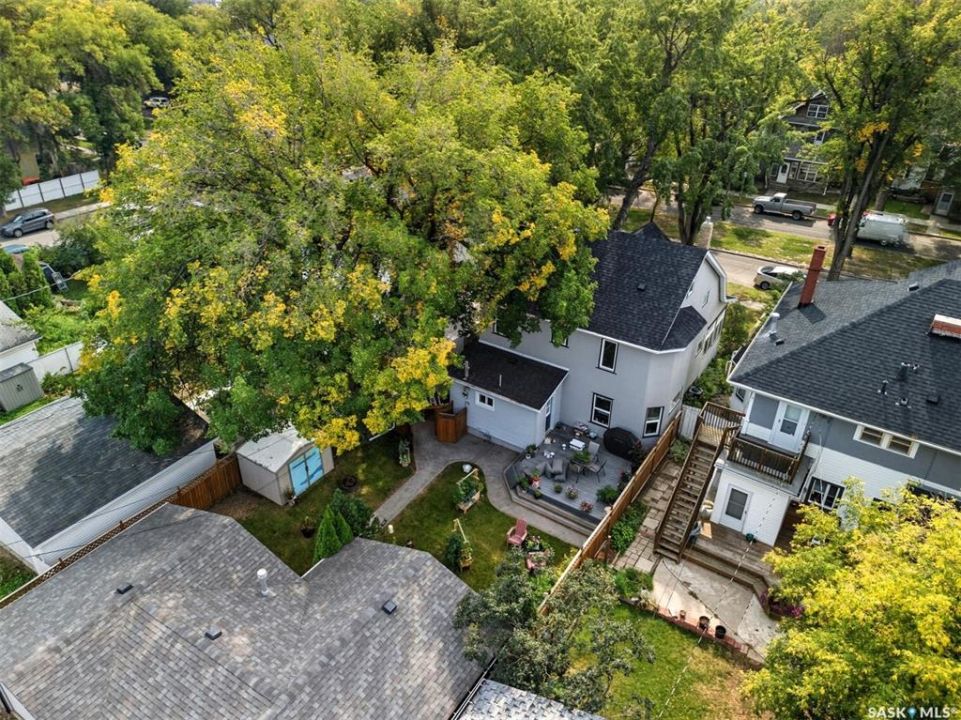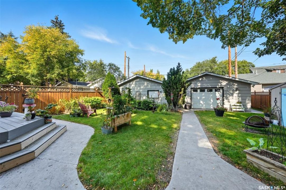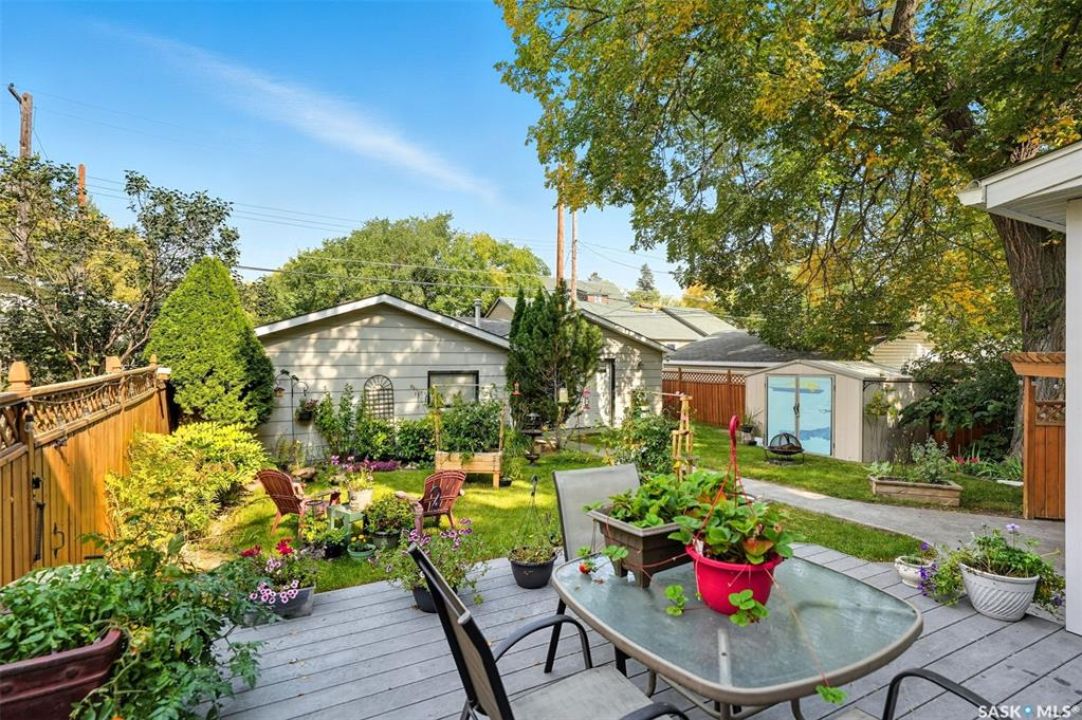 This beautifully maintained 2 storey character home offers 2,310 sq. ft. on three levels, blending timeless charm with modern upgrades in the heart of Caswell Hill. A welcoming front veranda (27' x 9') sets the stage before entering a den with glass French doors, stained-glass accents, and built-in shelving — perfect as a home office or TV space. The main floor features hardwood floors, a living room with gas fireplace and stone mantle, and a spacious formal dining room with a wet bar and custom desk area. The updated kitchen includes maple cabinetry, granite countertops, stainless steel farmhouse sink, pot filler, stone backsplash, in-floor heat, and appliances, with a built-in seating nook that provides a cozy spot for casual meals. Upstairs offers 3 bedrooms in total: two on the second level including a master with private veranda, plus a flexible third-level bedroom or studio. The second-floor bath features a jet tub and freestanding shower. The fully developed basement adds versatility with a bedroom, refreshed bath, and a new wet bar with cabinetry, sink, fridge, dishwasher, and heated porcelain tile flooring — ideal for entertaining or guest use, with a separate side entrance enhancing convenience. Outdoor spaces include a three-season sunroom, backyard deck (15'11” x 15'10”) with gas BBQ hookup, stamped concrete, perennial landscaping, and RV parking. A highlight of the property is the 42' x 30' heated detached garage, offering abundant space for vehicles, hobbies, or a year-round workshop. High-efficiency furnace, air conditioner, and water heater (2011). Complete with central vac, shed, and appliances included, this Caswell Hill gem is listed at $539,900 (MLS ).
